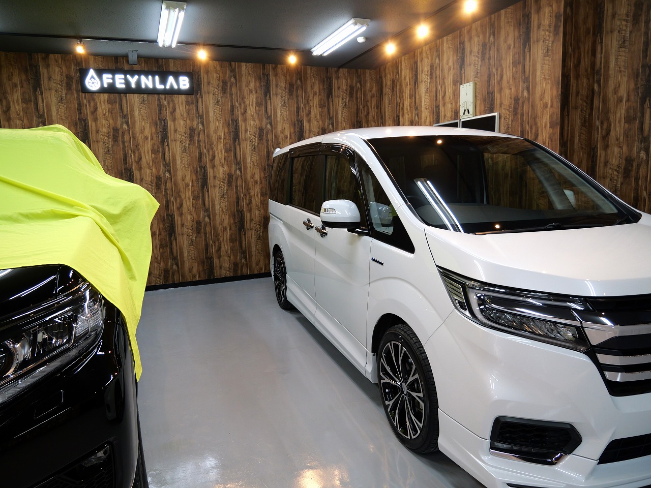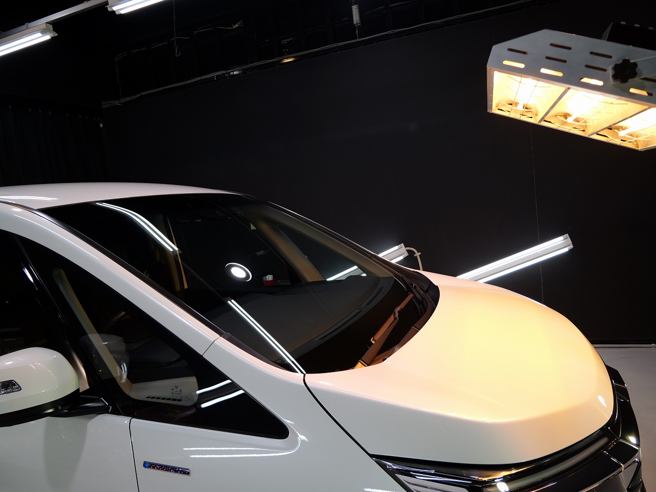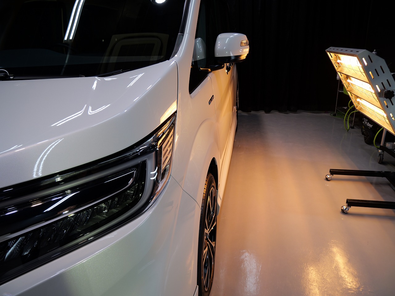 ホワイトパール。施工はボディにはクォーツガラスコーティング/ホイールコーティング/未塗装樹脂