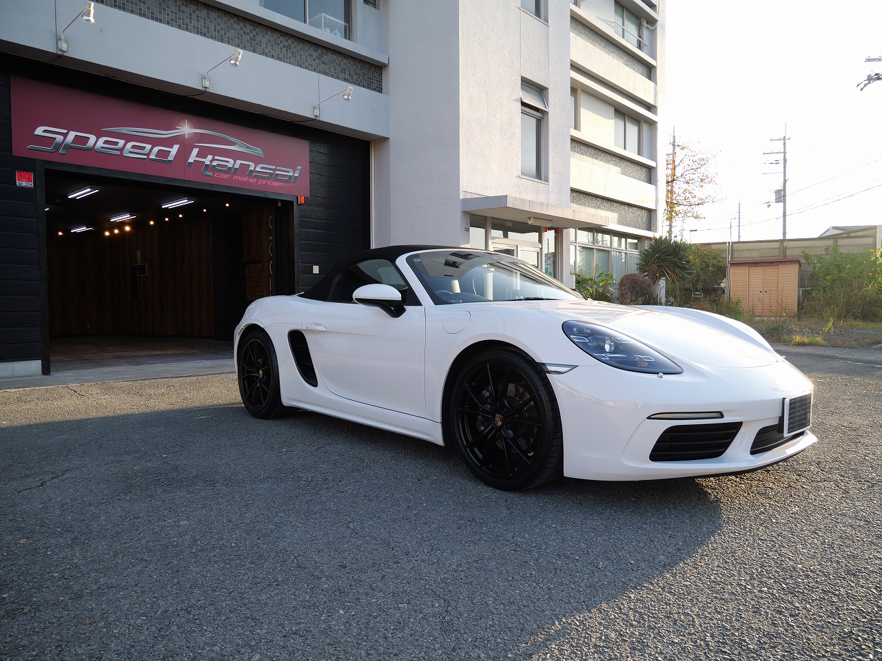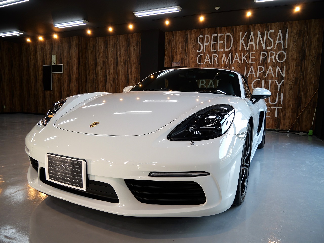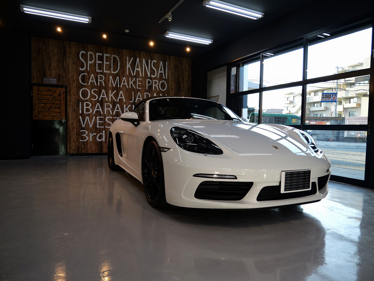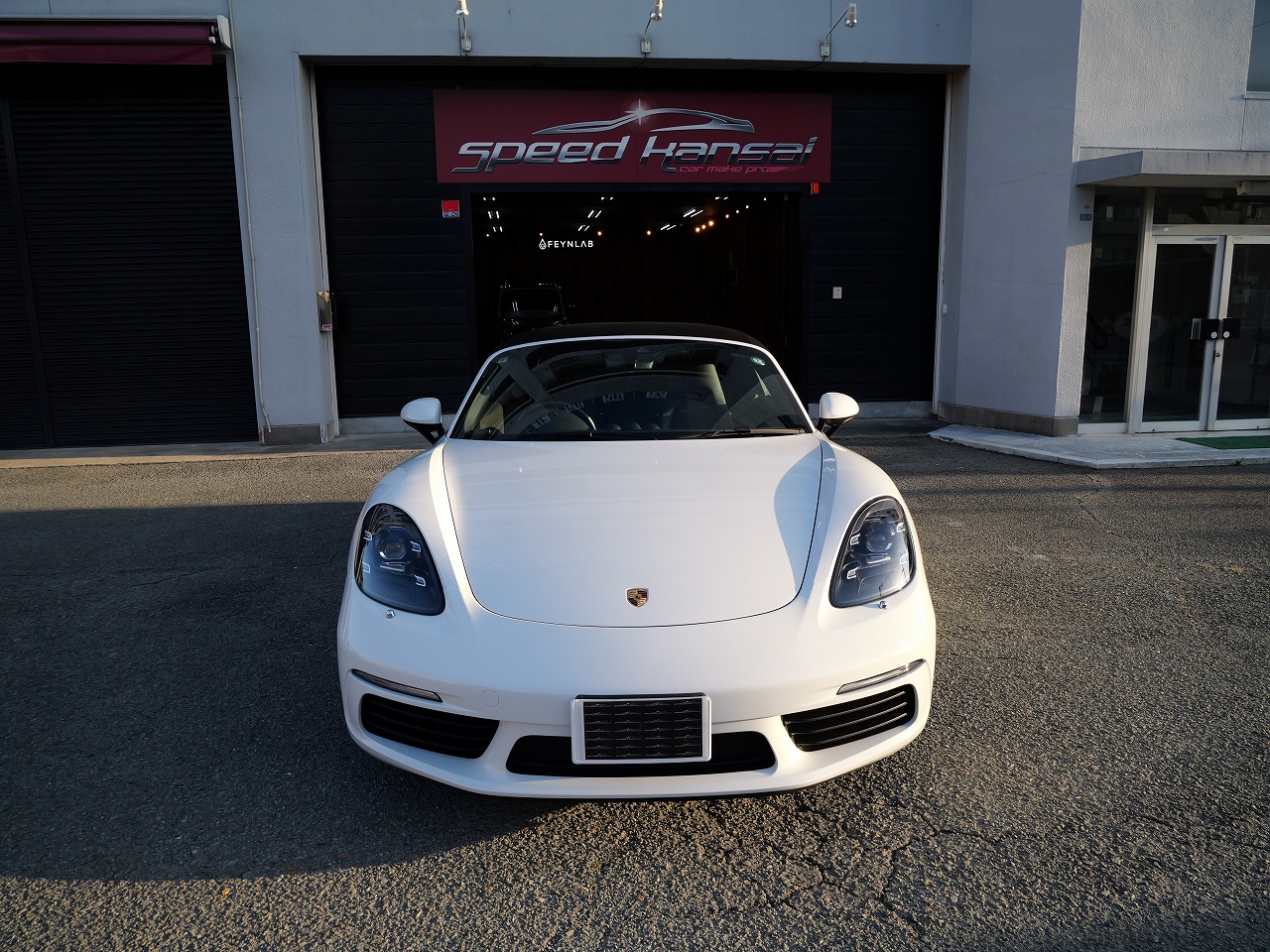大阪府摂津市よりポルシェ718ボクスターのご入庫です!ボディカラーはホワイトソリッド。施工は