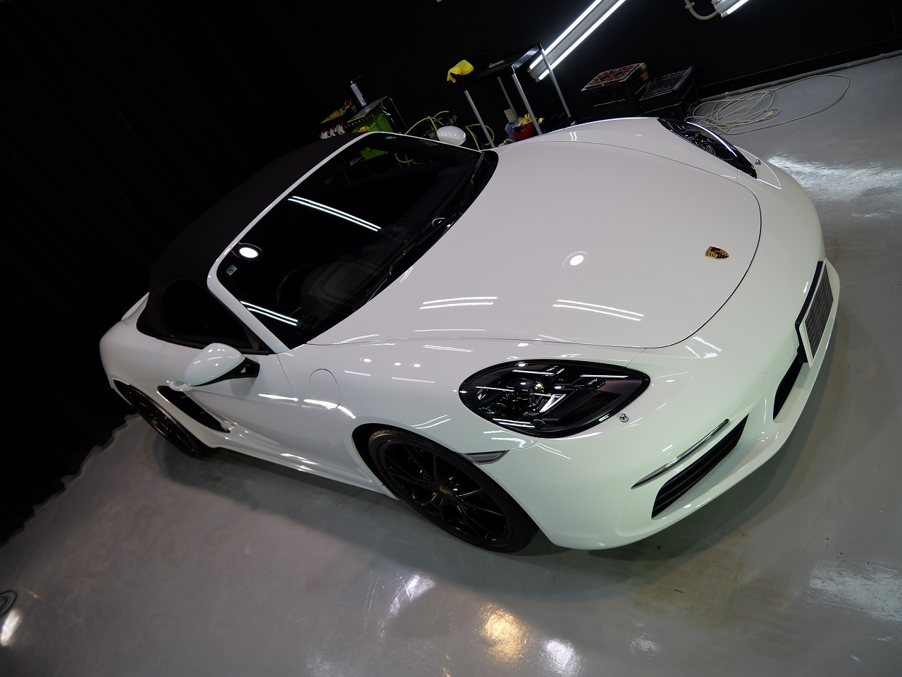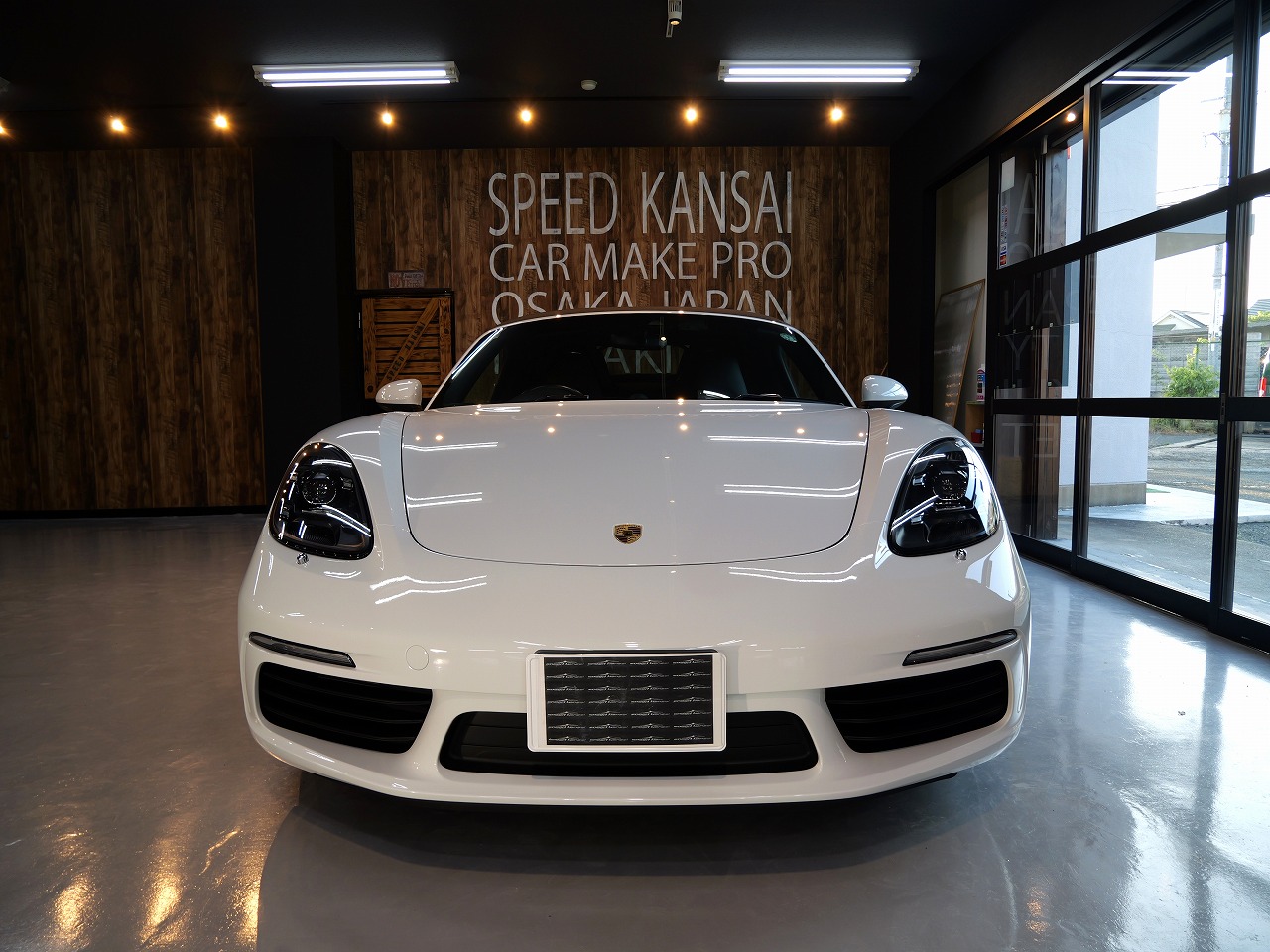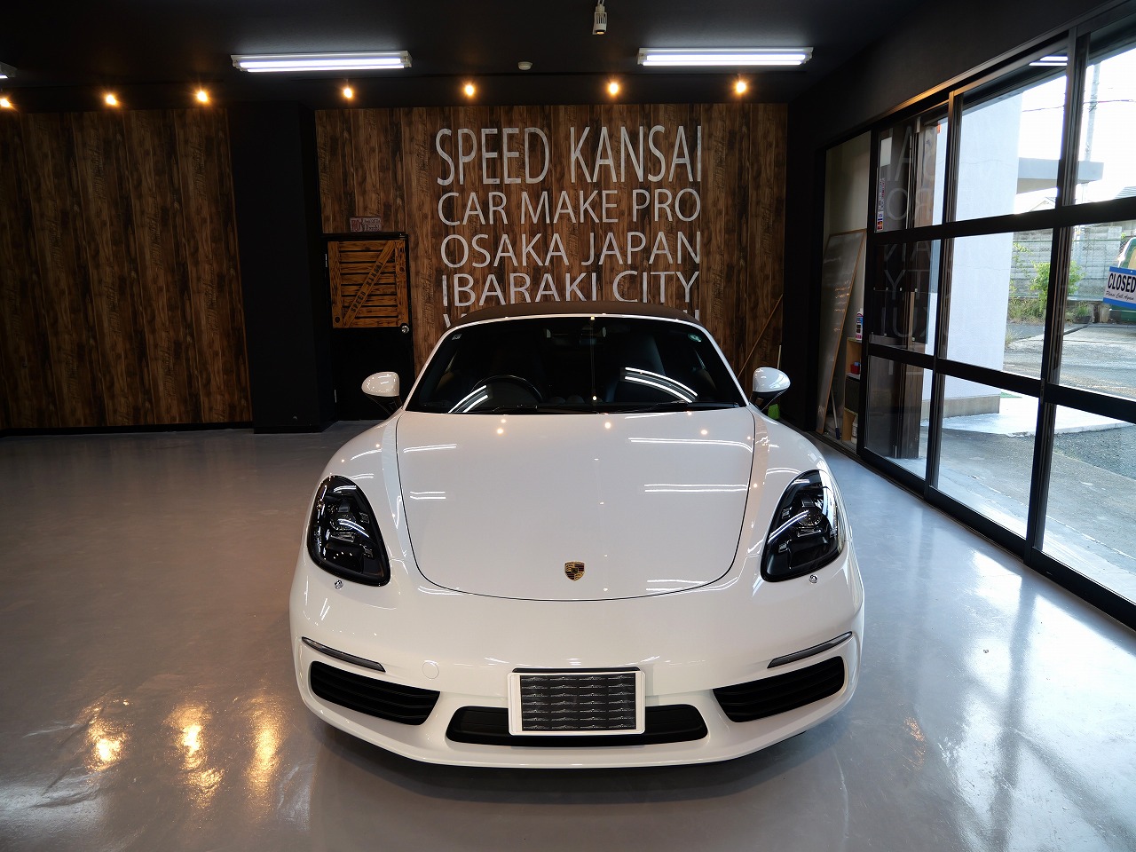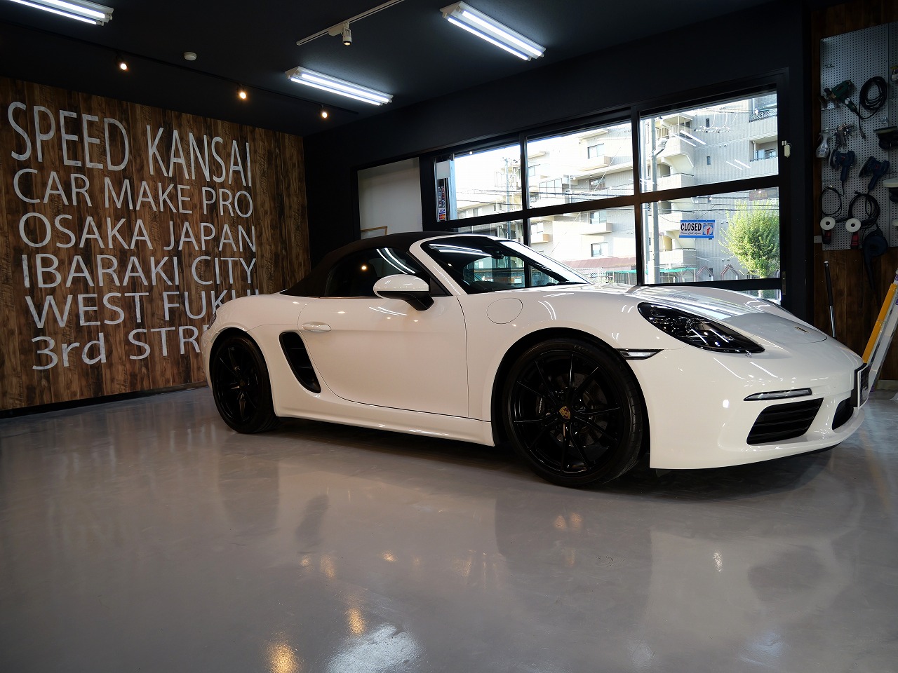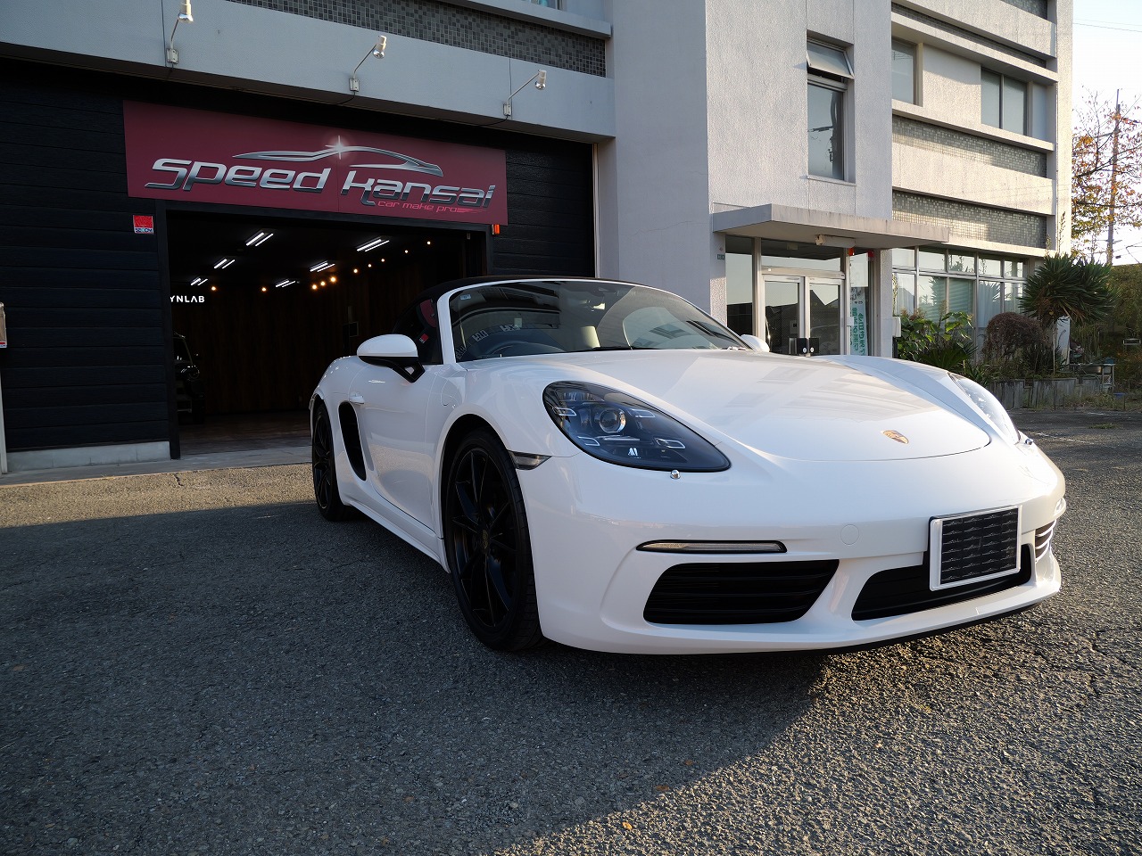 大阪府摂津市よりポルシェ718ボクスターのご入庫です!ボディカラーはホワイトソリッド。施工は