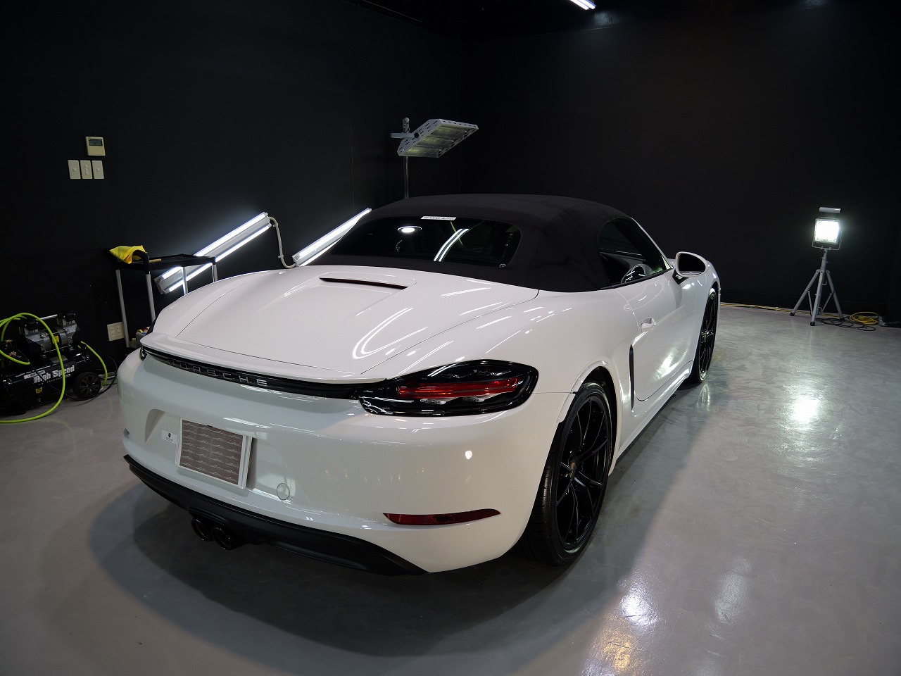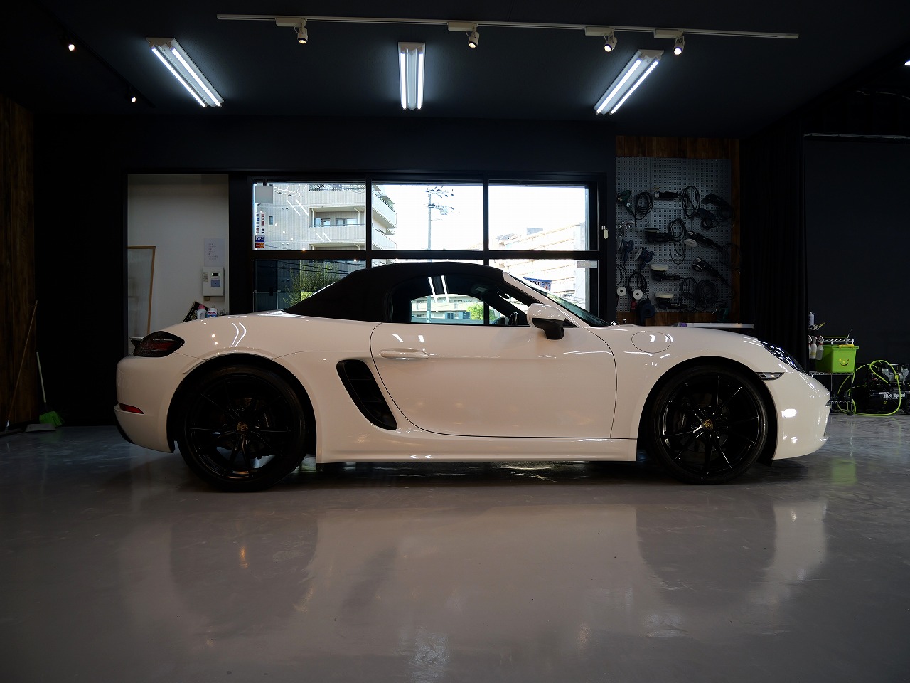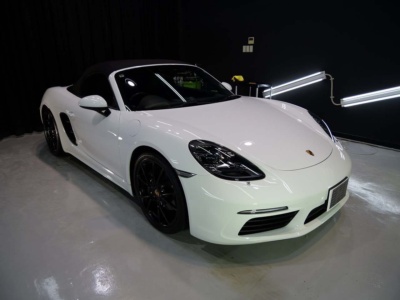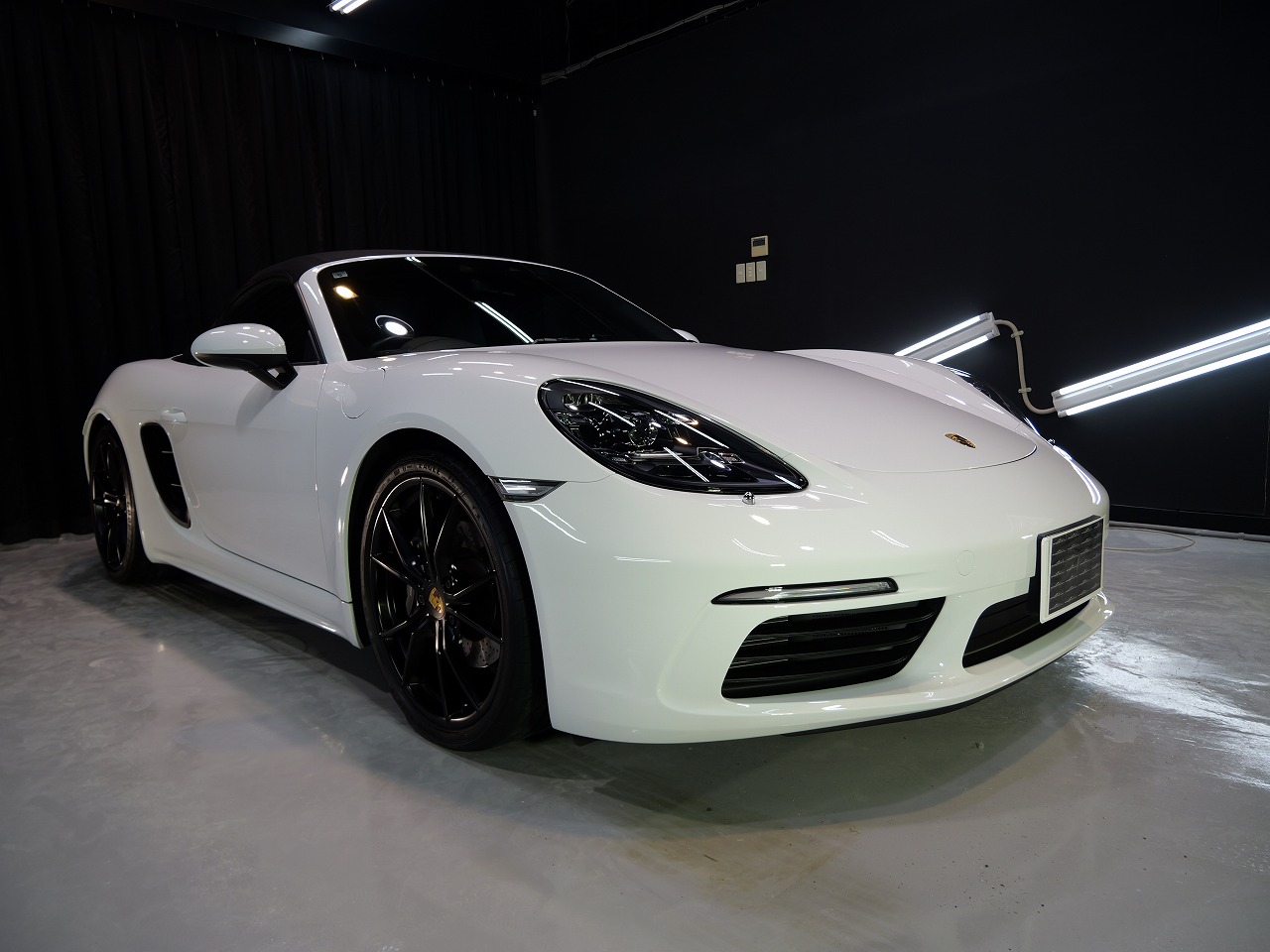 大阪府摂津市よりポルシェ718ボクスターのご入庫です!ボディカラーはホワイトソリッド。施工は