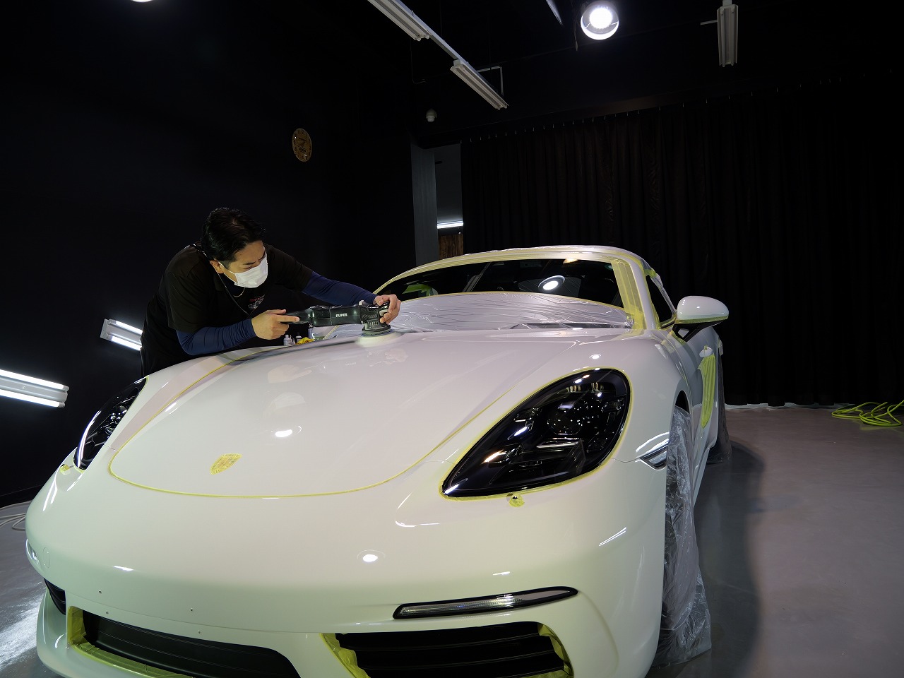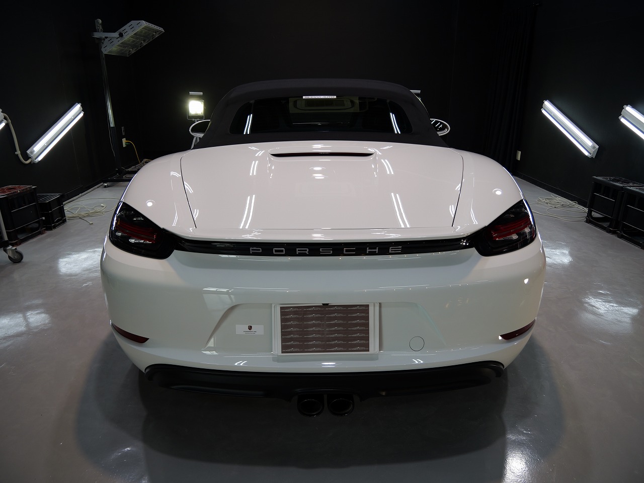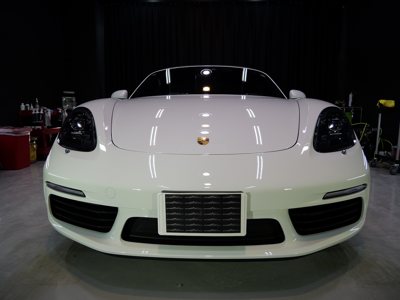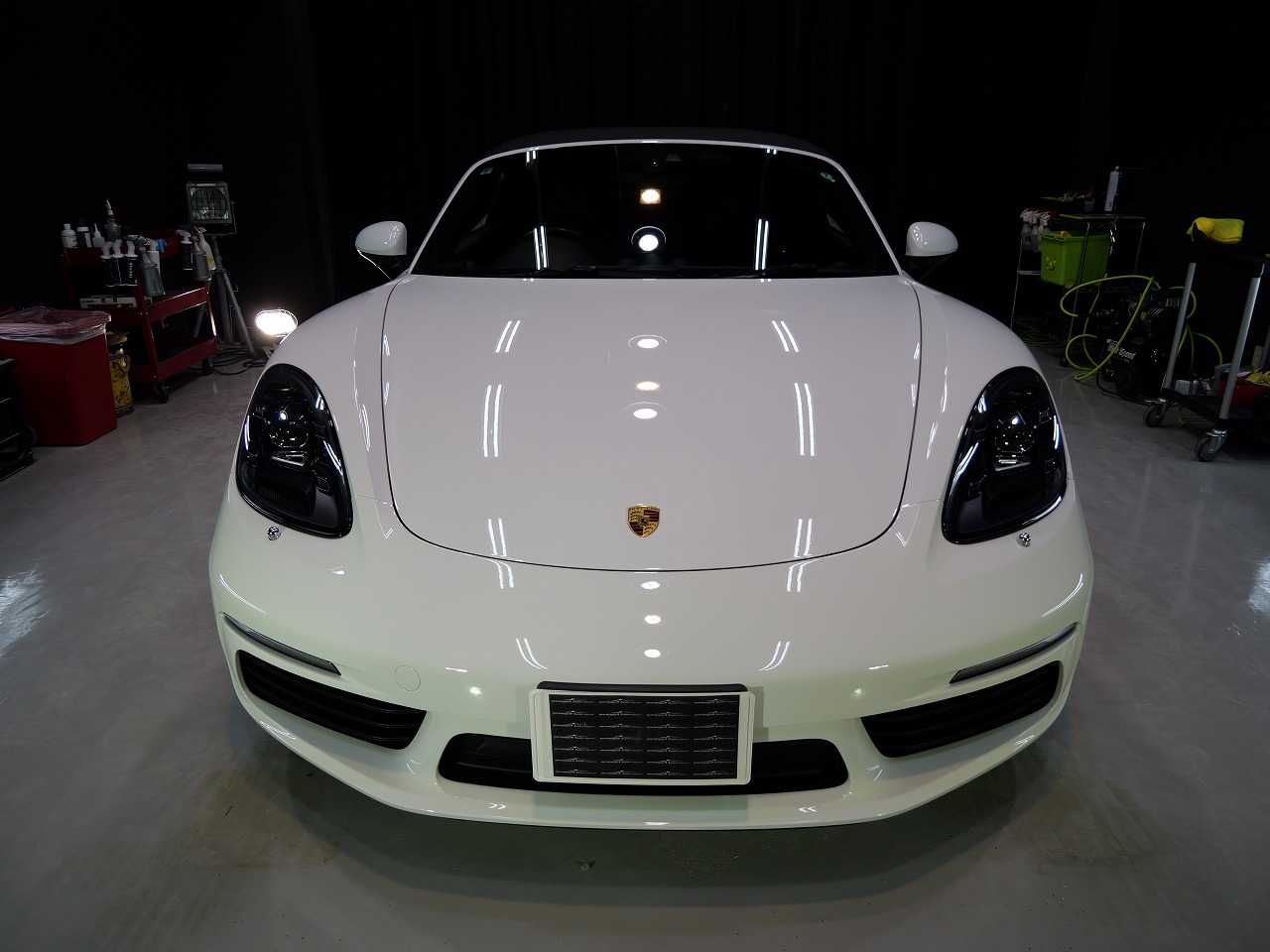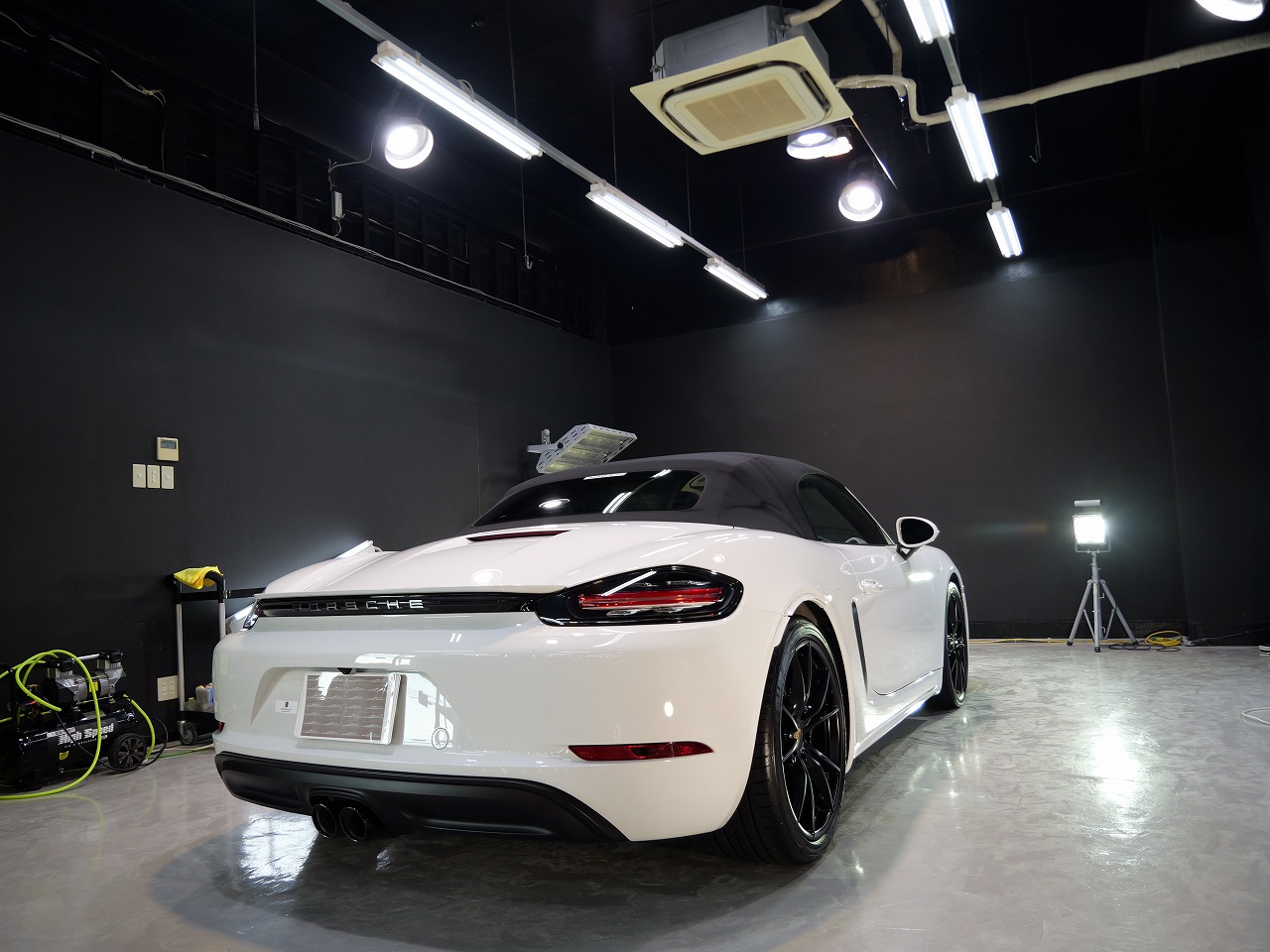 大阪府摂津市よりポルシェ718ボクスターのご入庫です!ボディカラーはホワイトソリッド。施工は