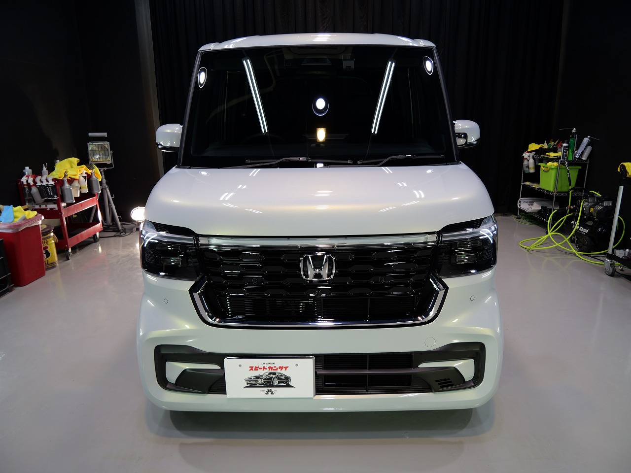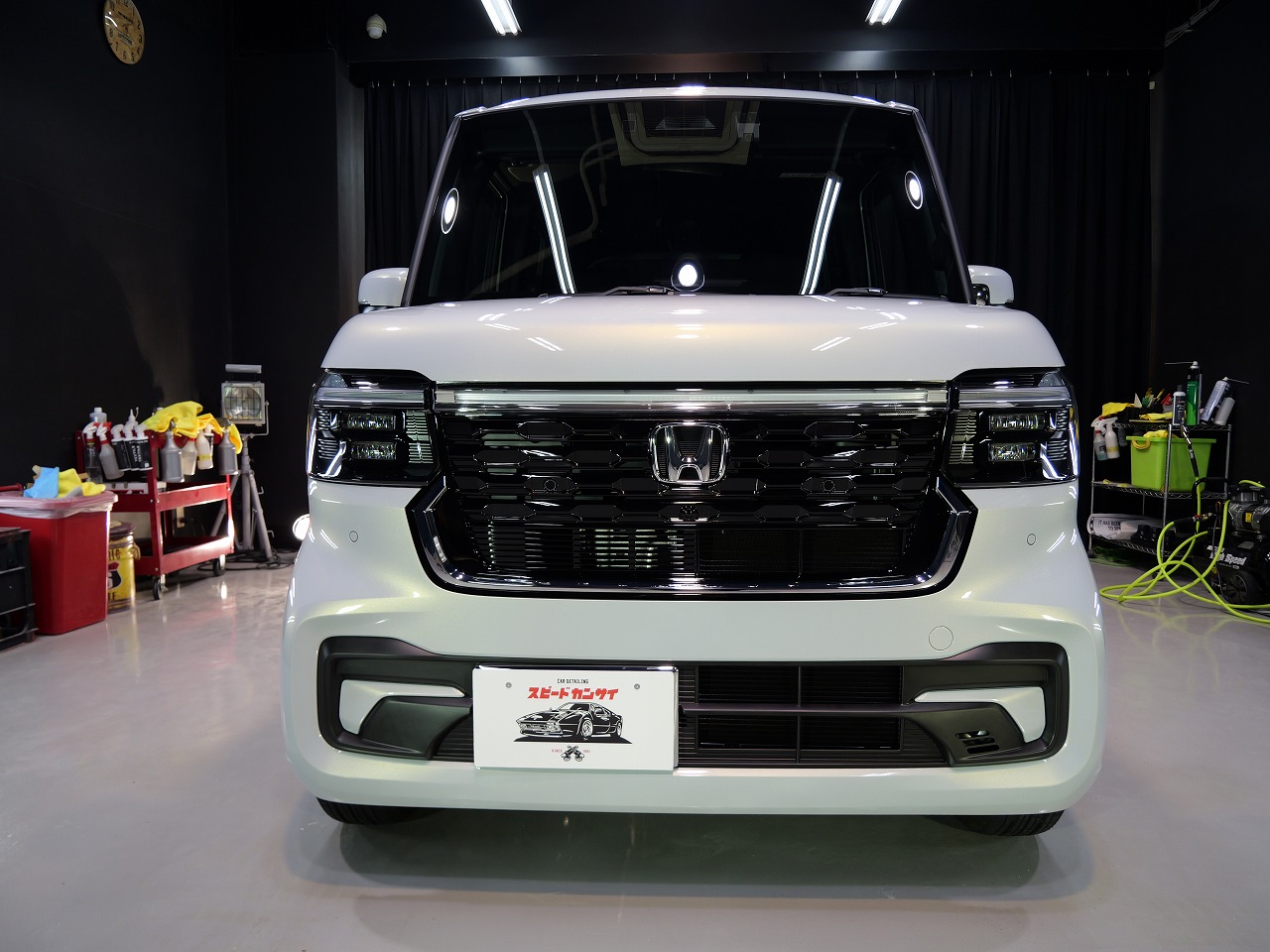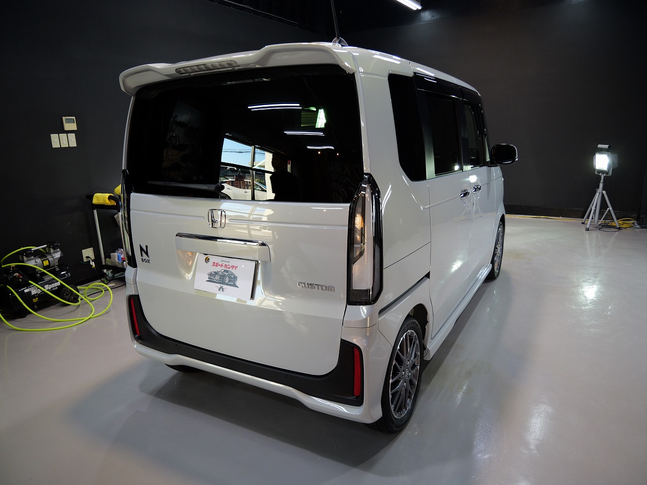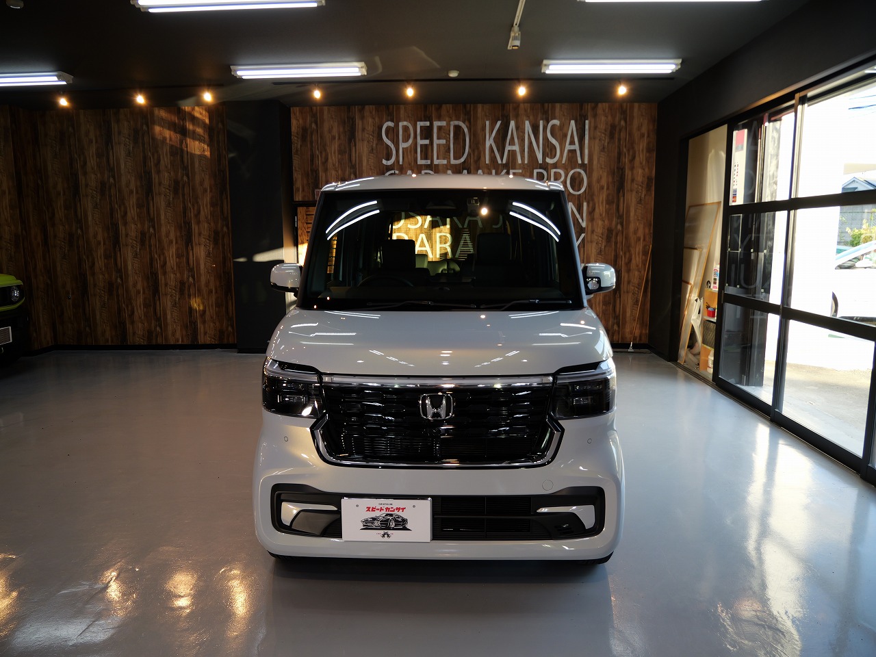 大阪府豊能郡よりホンダN-BOXカスタムのご入庫です!ボディカラーはプレミアムサンライト
