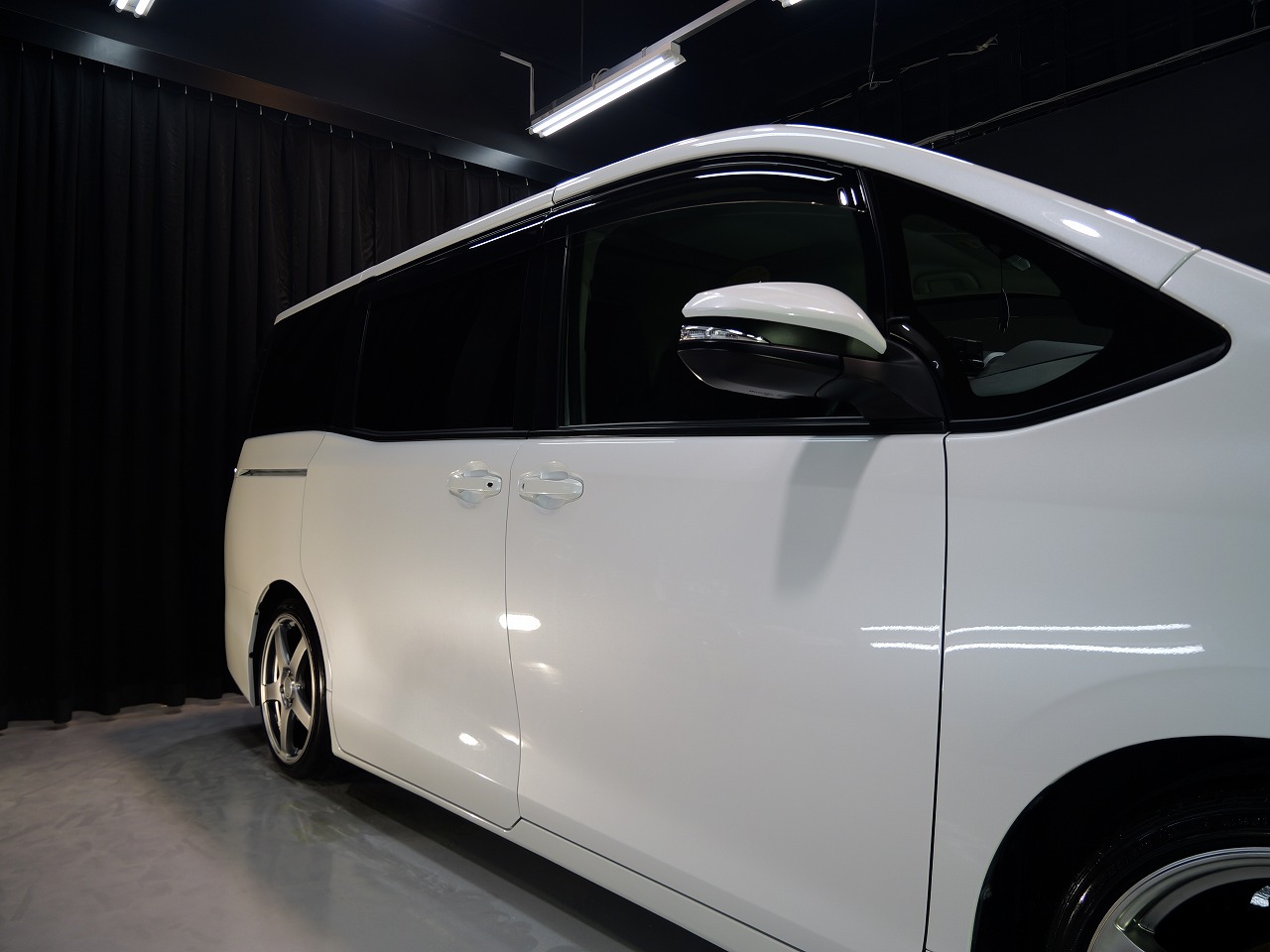 ホワイトパールクリスタルシャイン。施工はボディにはファインラボセラミックコーティング2層/