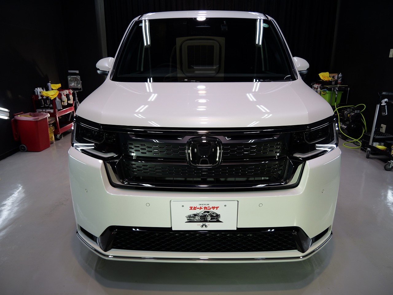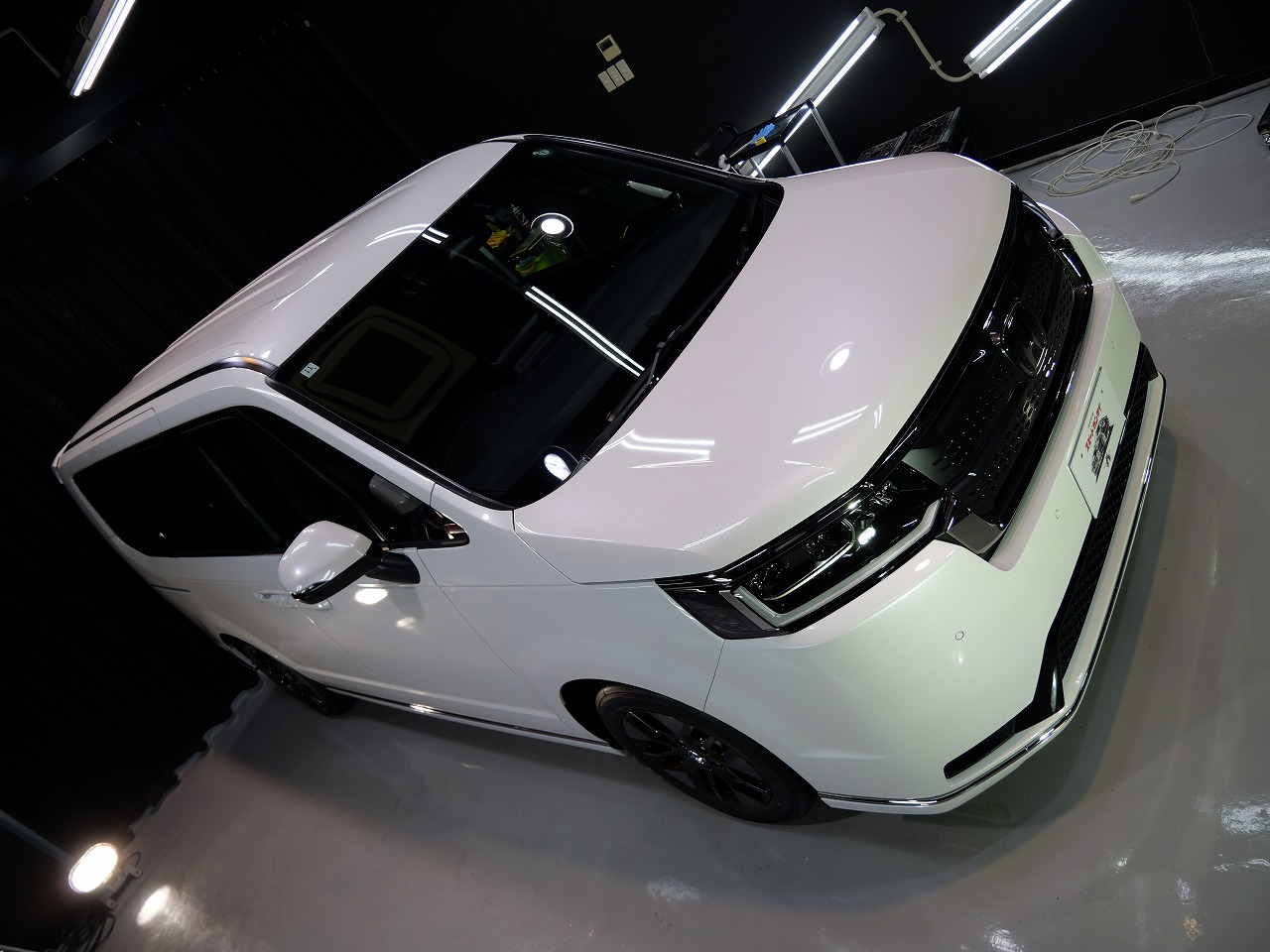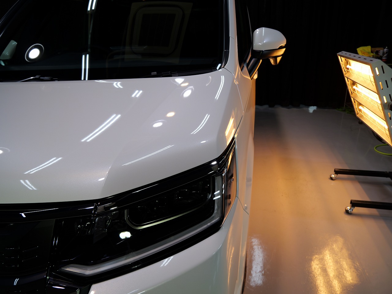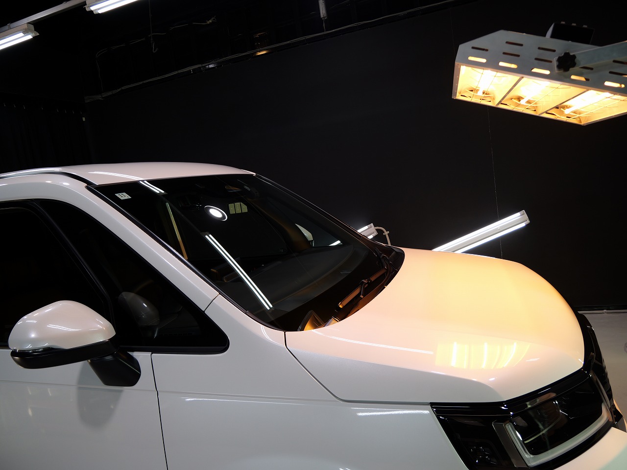 ホワイトパール。施工はボディにはクォーツガラスコーティング/フロントガラス撥水プラ