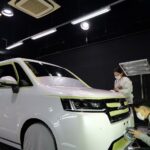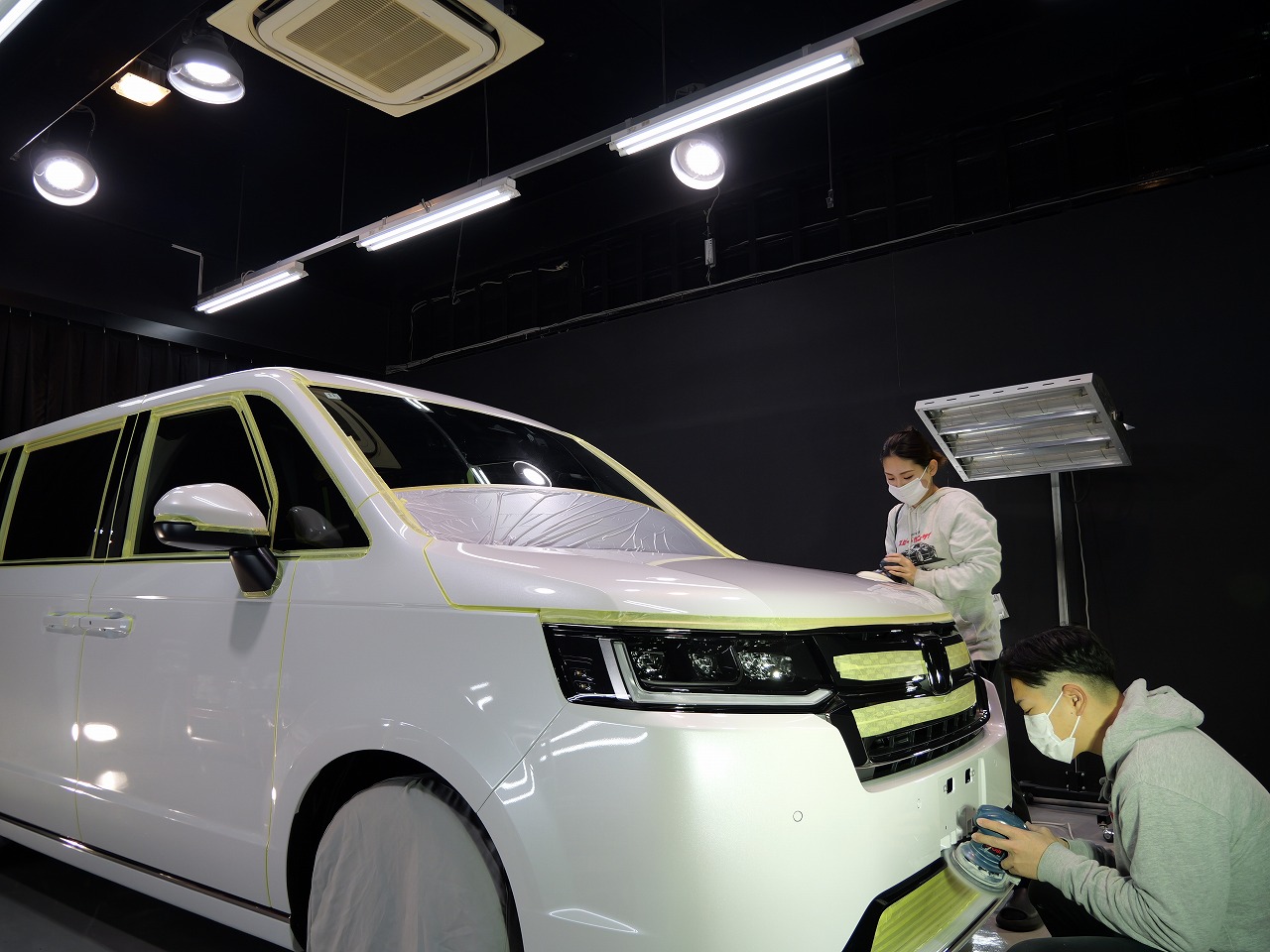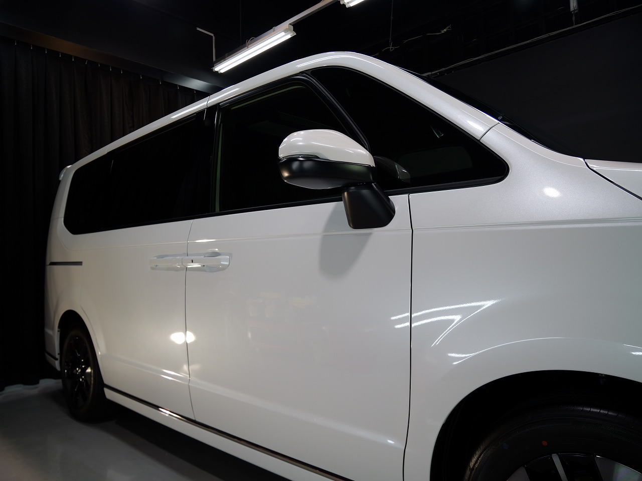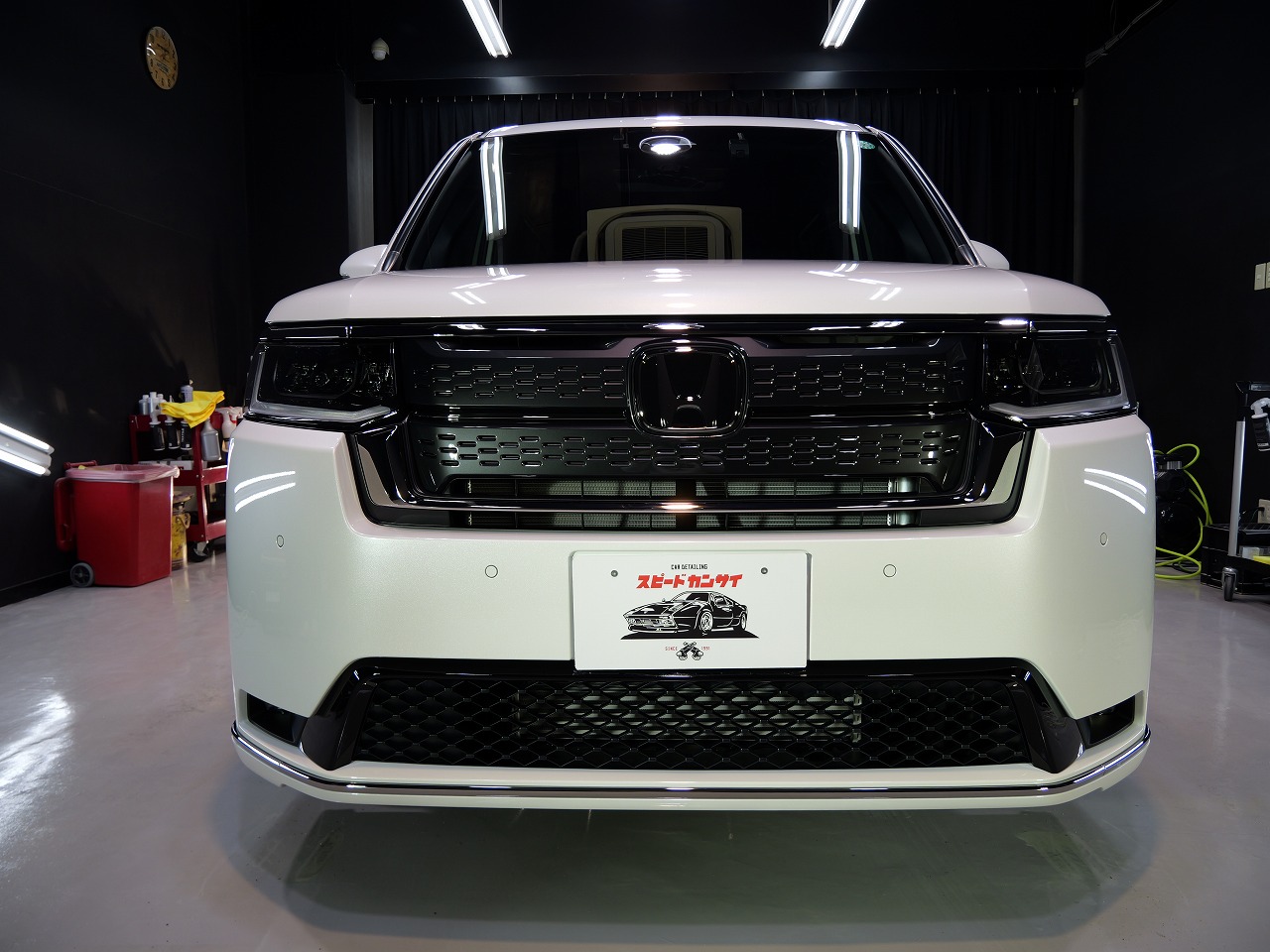 ホワイトパール。施工はボディにはクォーツガラスコーティング/フロントガラス撥水プラ