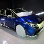 ロラフレアブルーパール/スーパーブラック2トーンです。施工はボディには当店のキャンペーン ファ