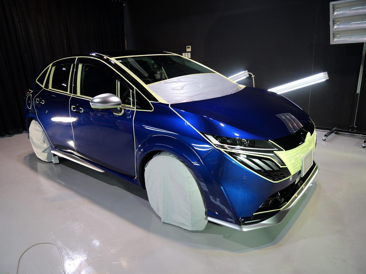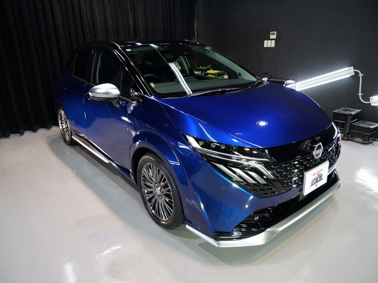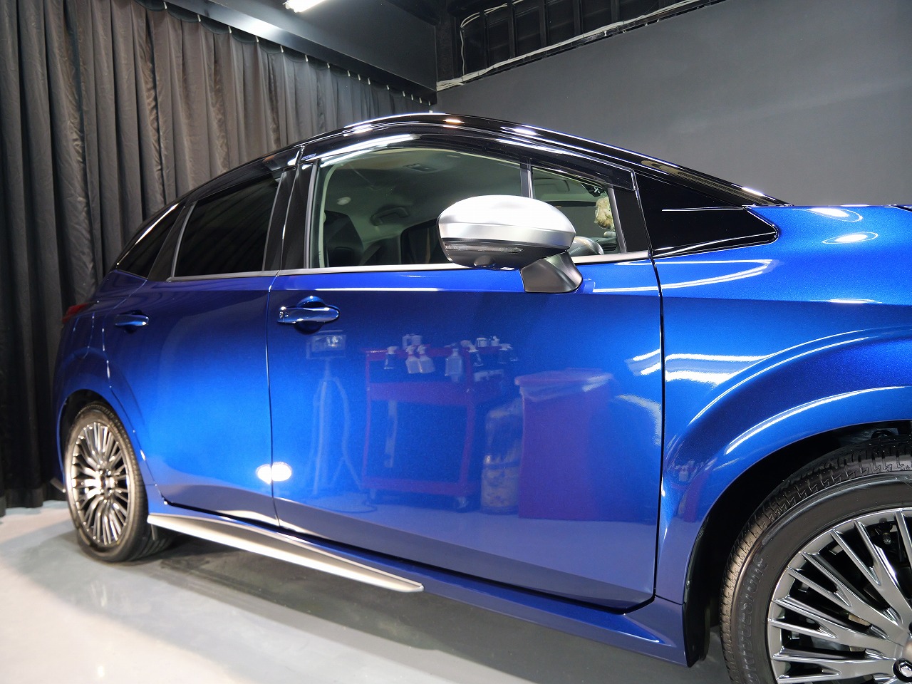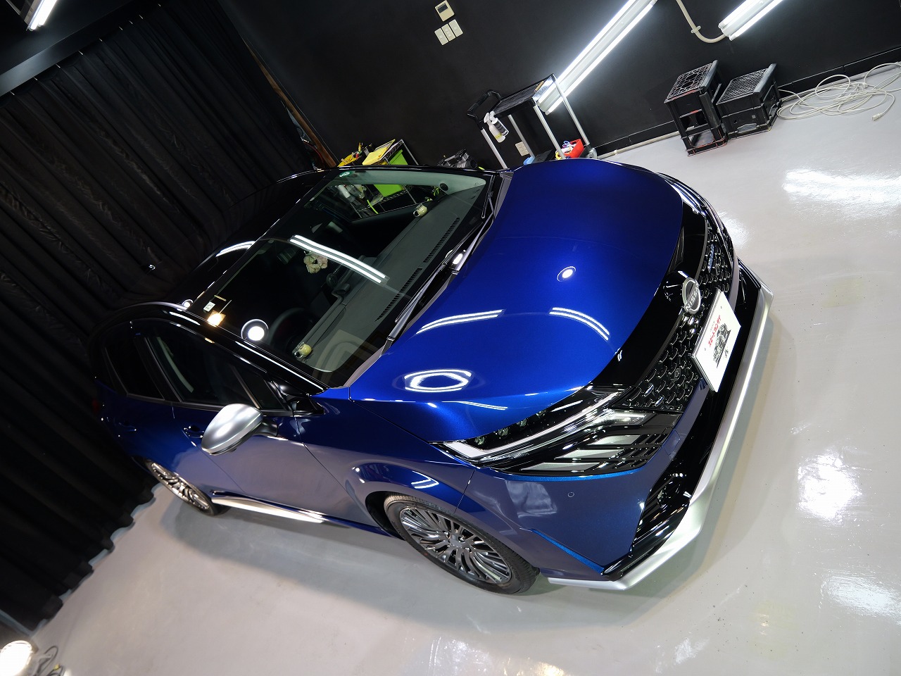 ロラフレアブルーパール/スーパーブラック2トーンです。施工はボディには当店のキャンペーン ファ