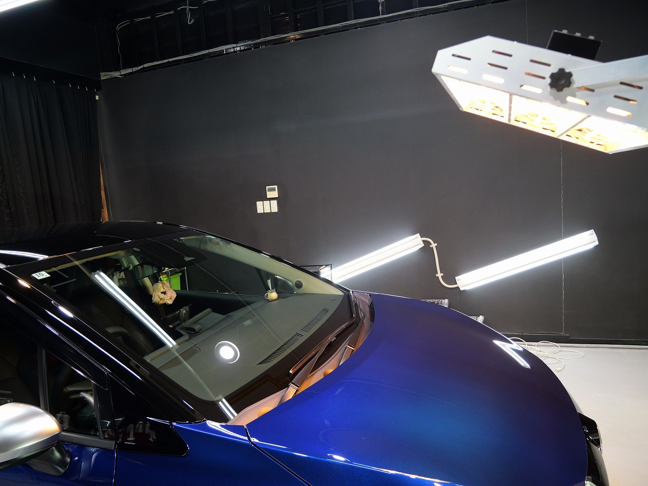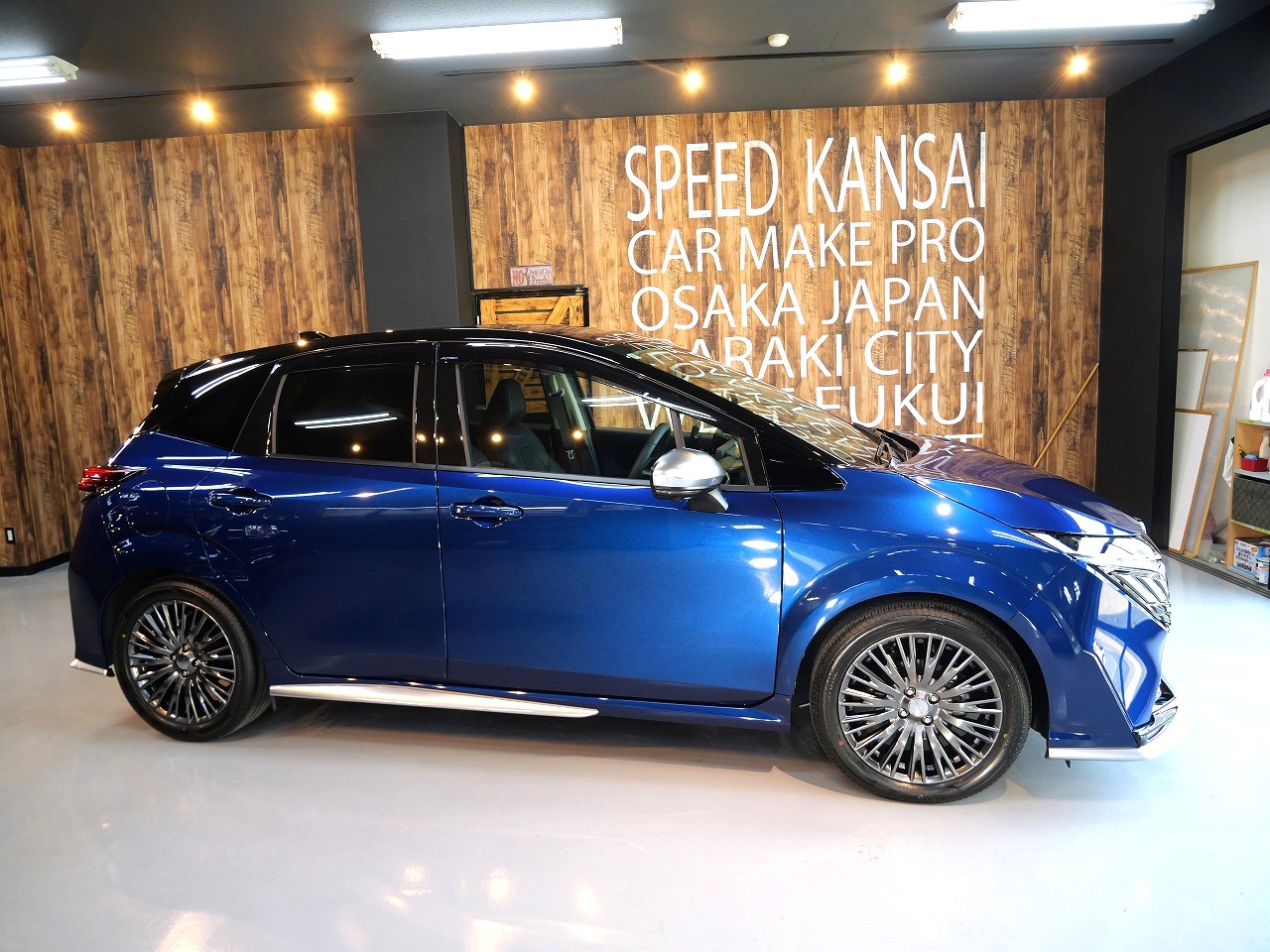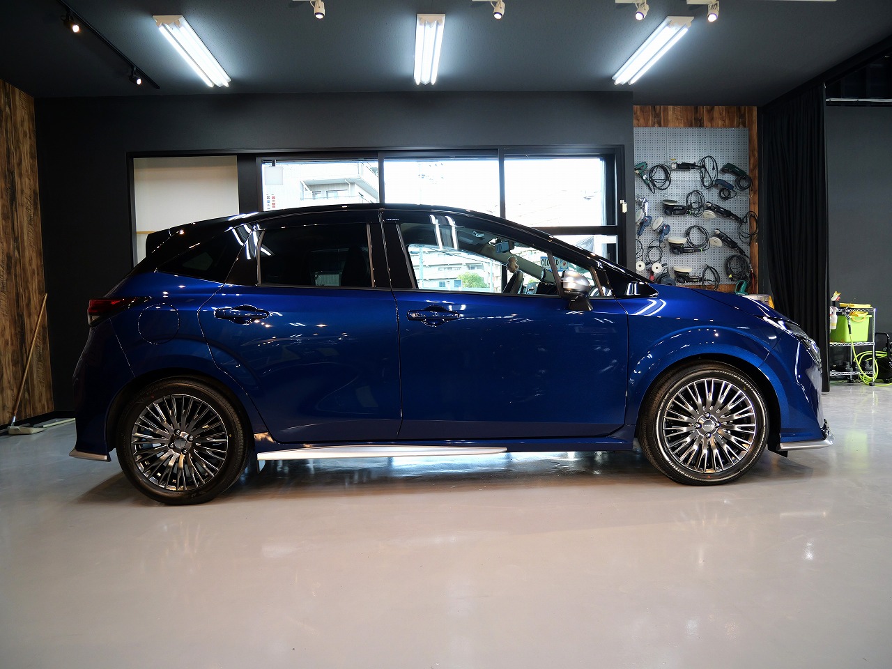 ロラフレアブルーパール/スーパーブラック2トーンです。施工はボディには当店のキャンペーン ファ