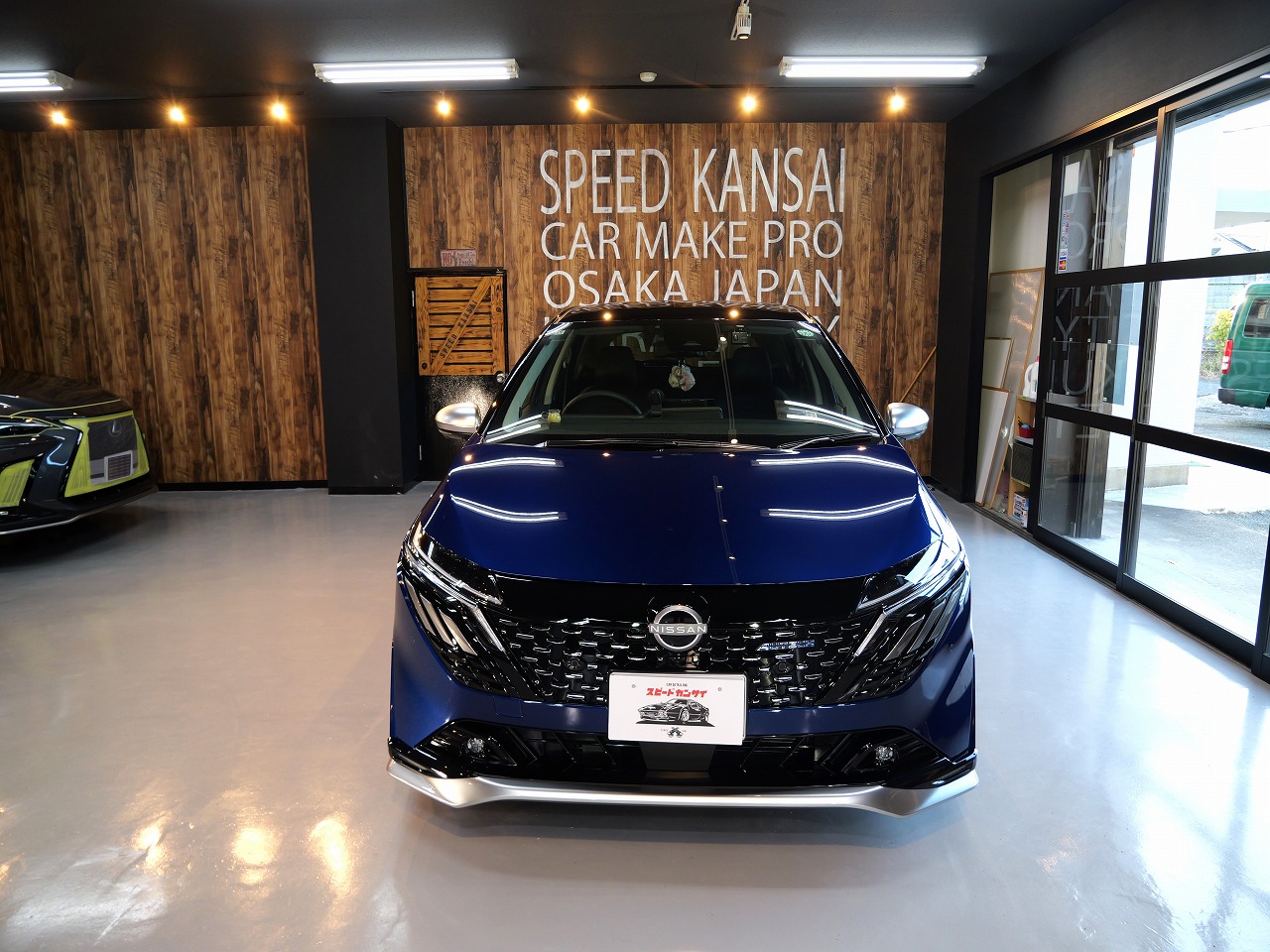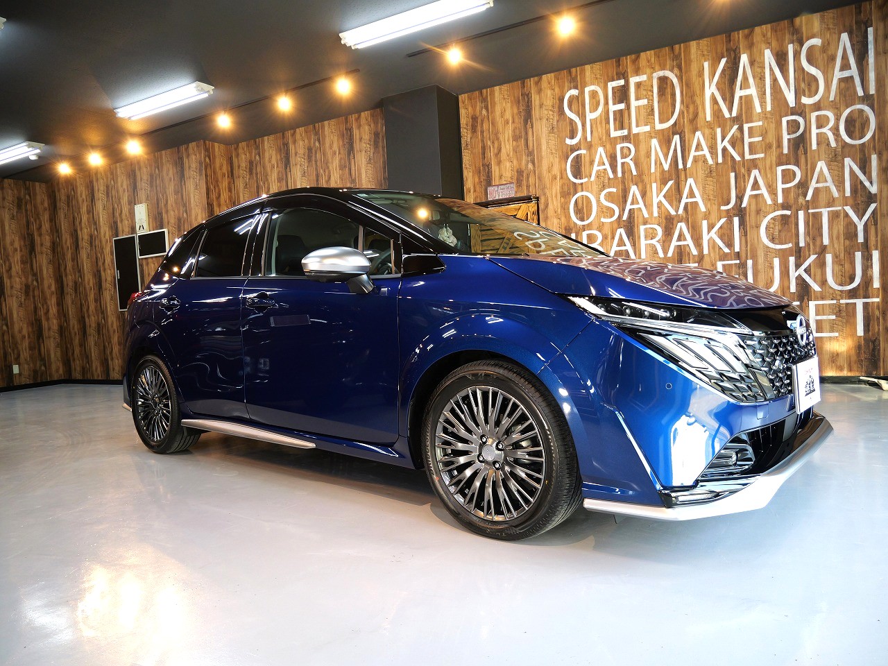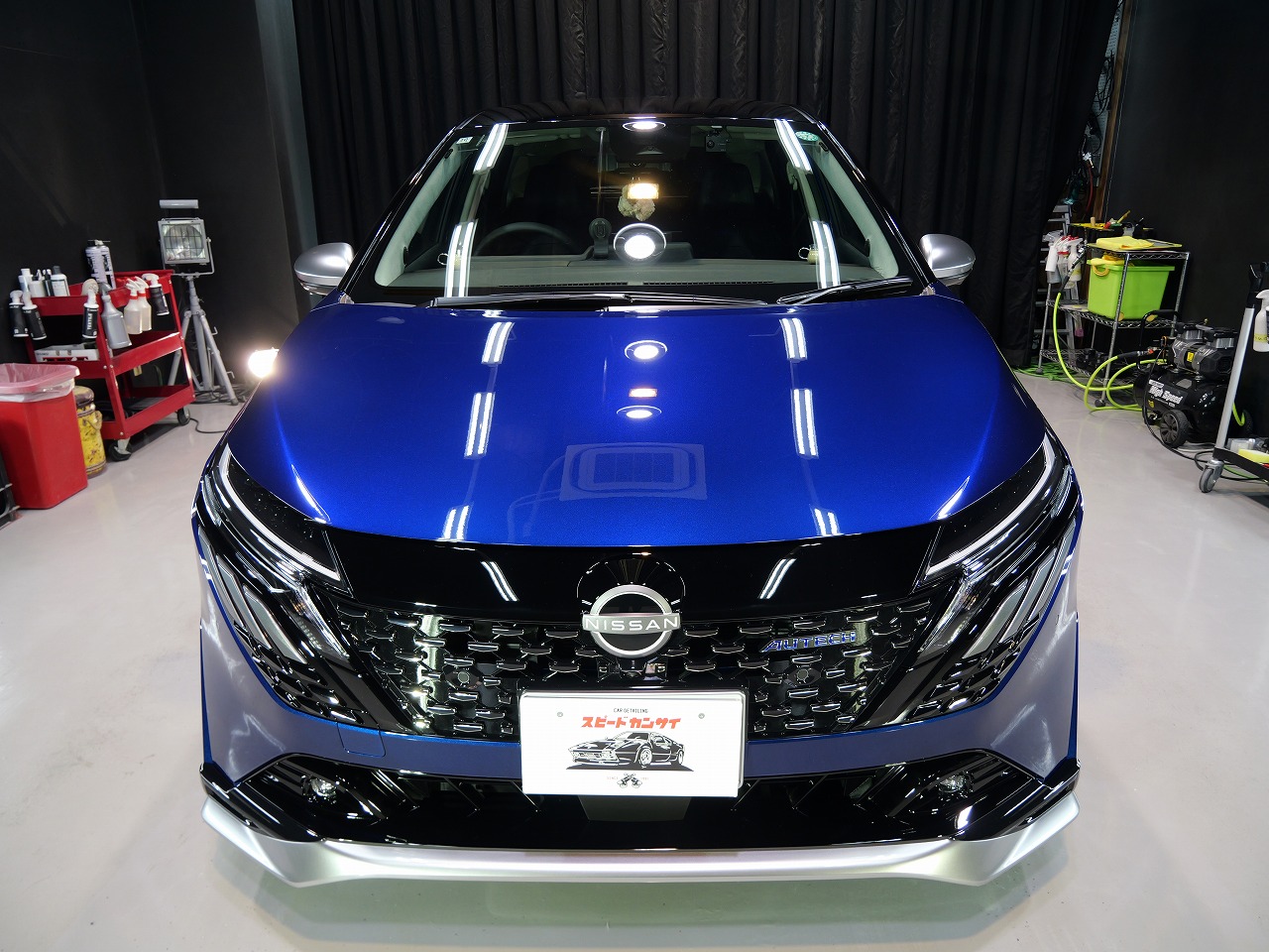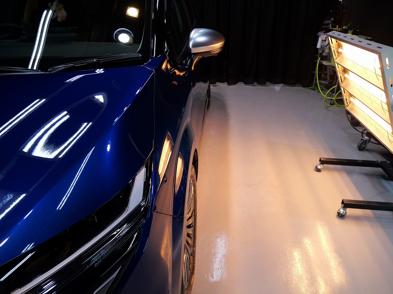 ロラフレアブルーパール/スーパーブラック2トーンです。施工はボディには当店のキャンペーン ファ