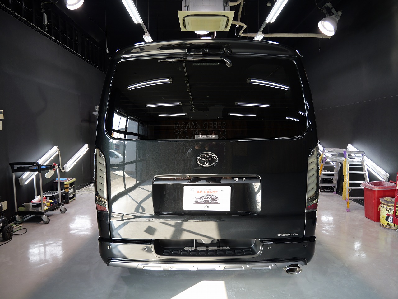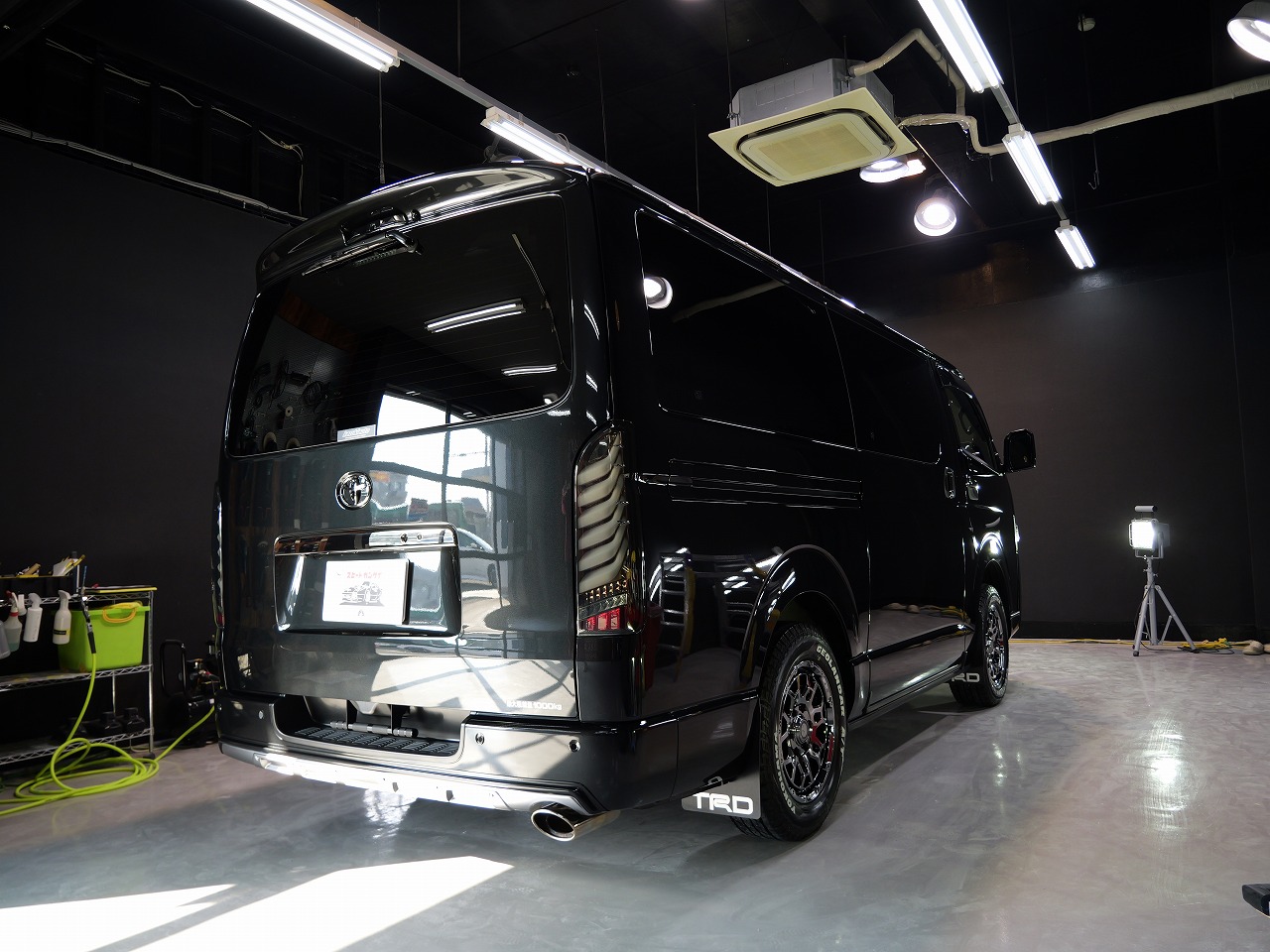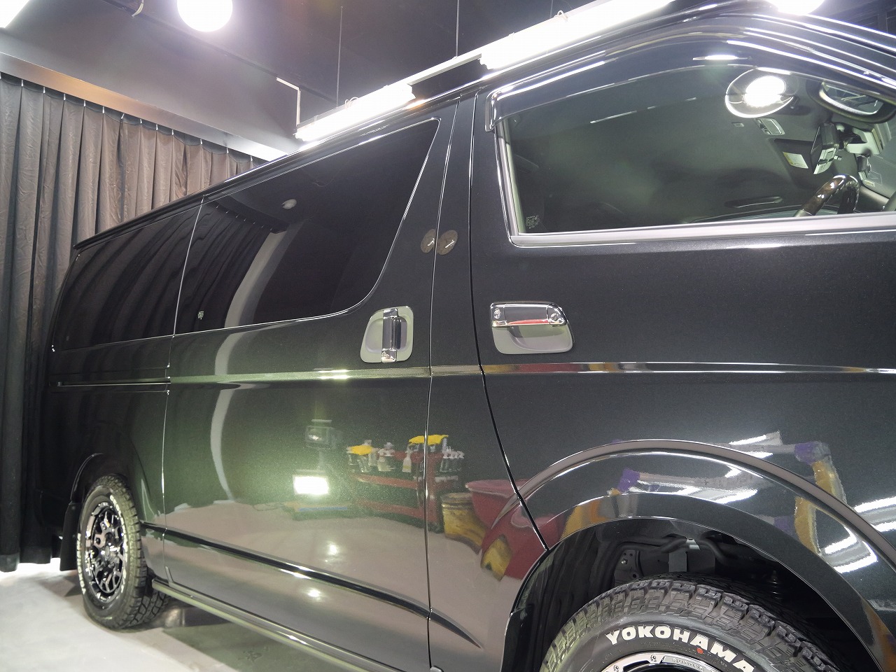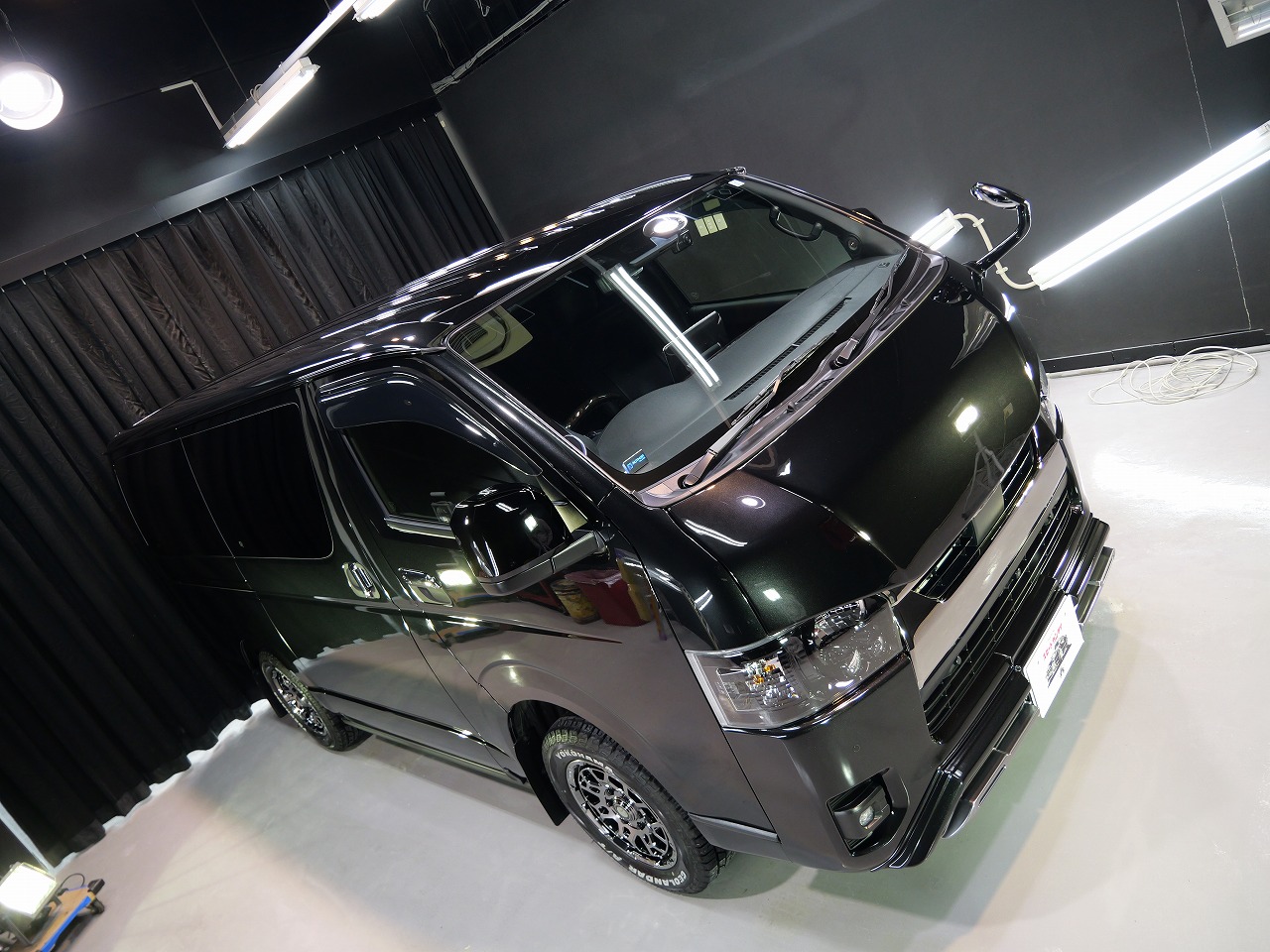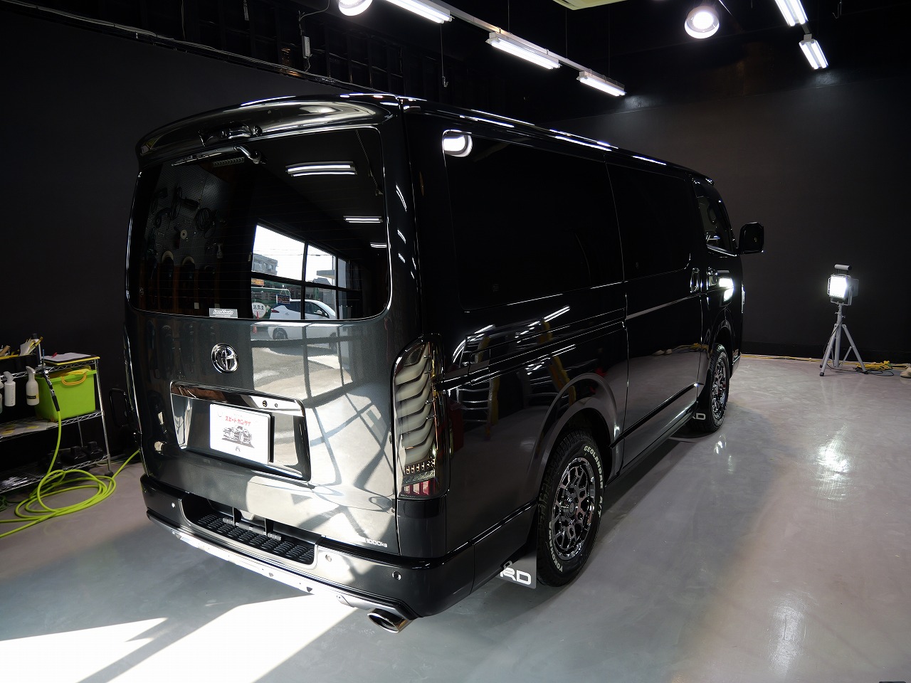 大阪府八尾市よりトヨタ ハイエースのご入庫です!ボディカラーはブラックマイカ。施工はボディ