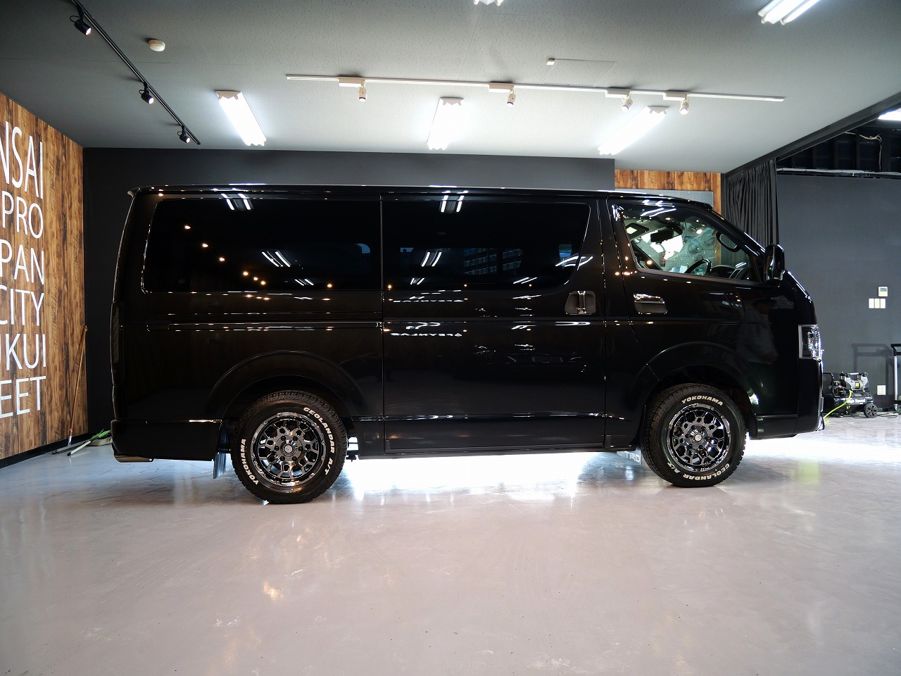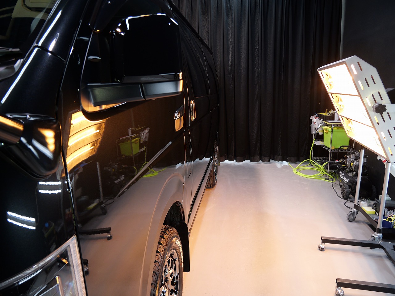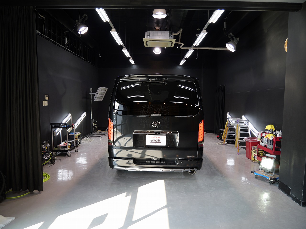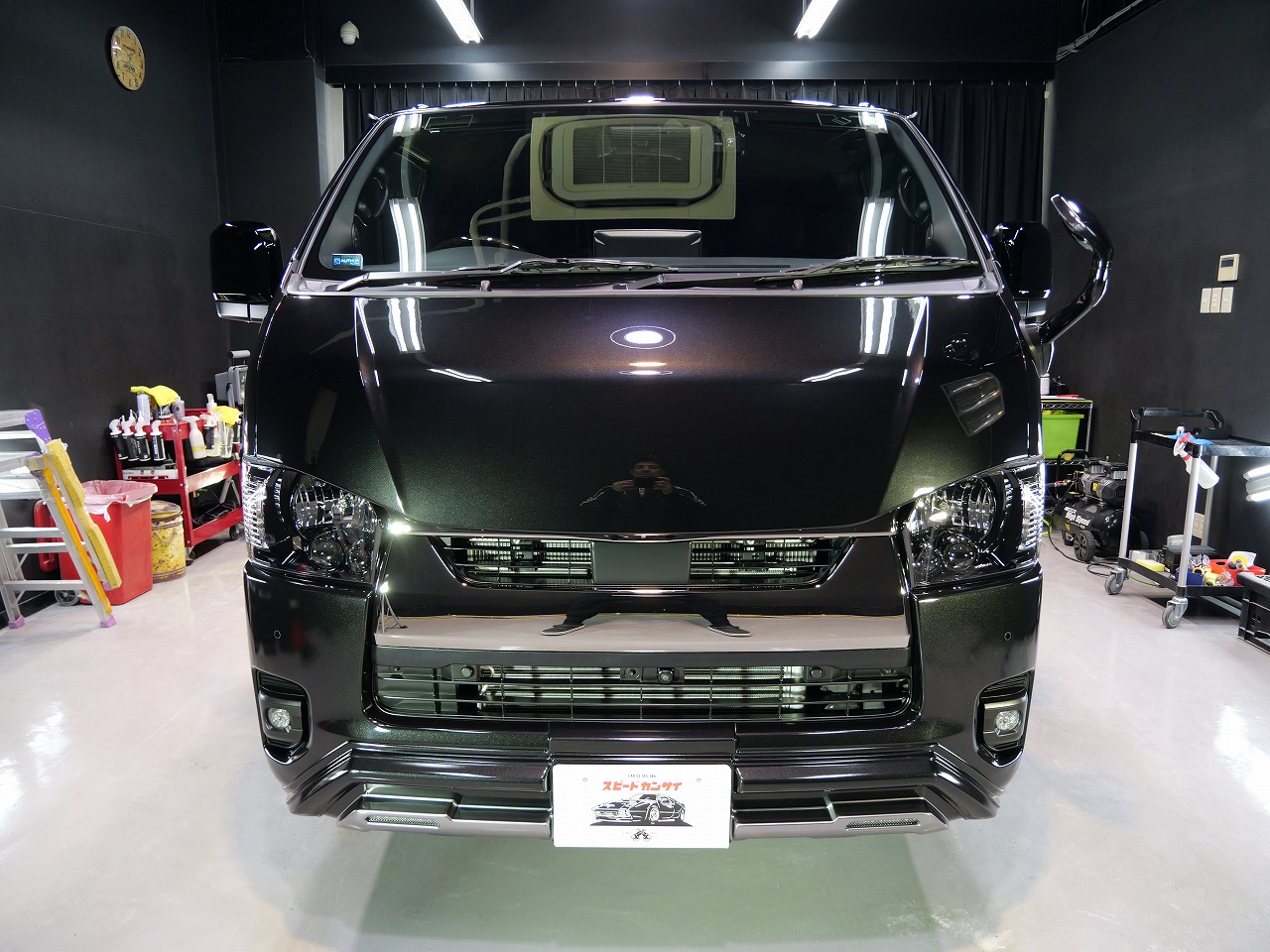 大阪府八尾市よりトヨタ ハイエースのご入庫です!ボディカラーはブラックマイカ。施工はボディ