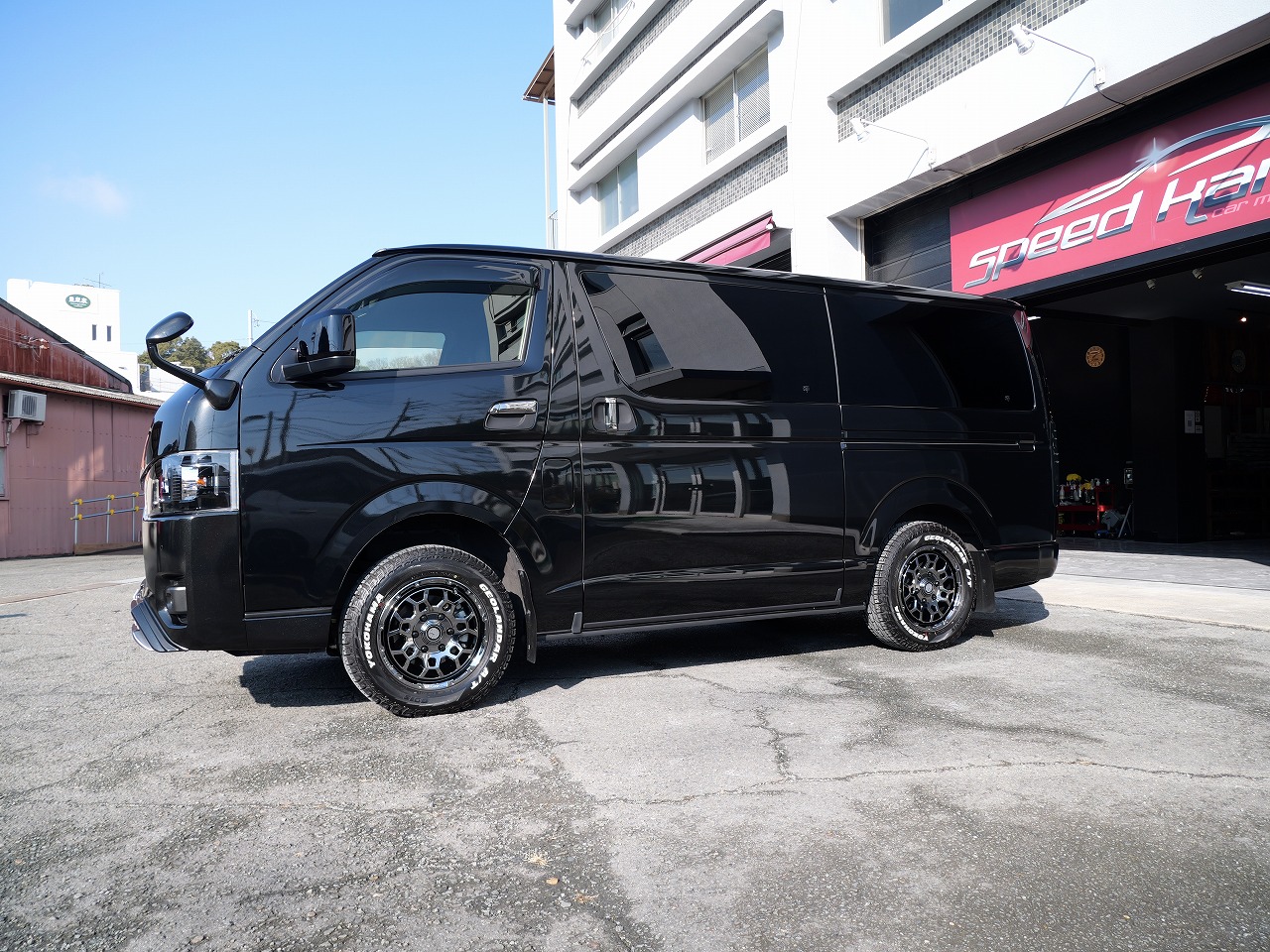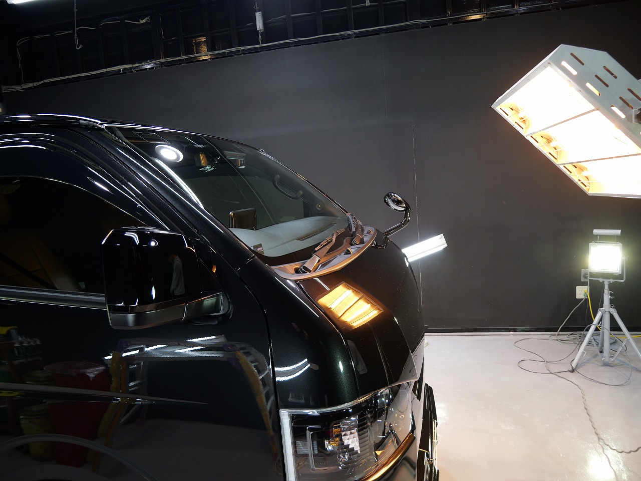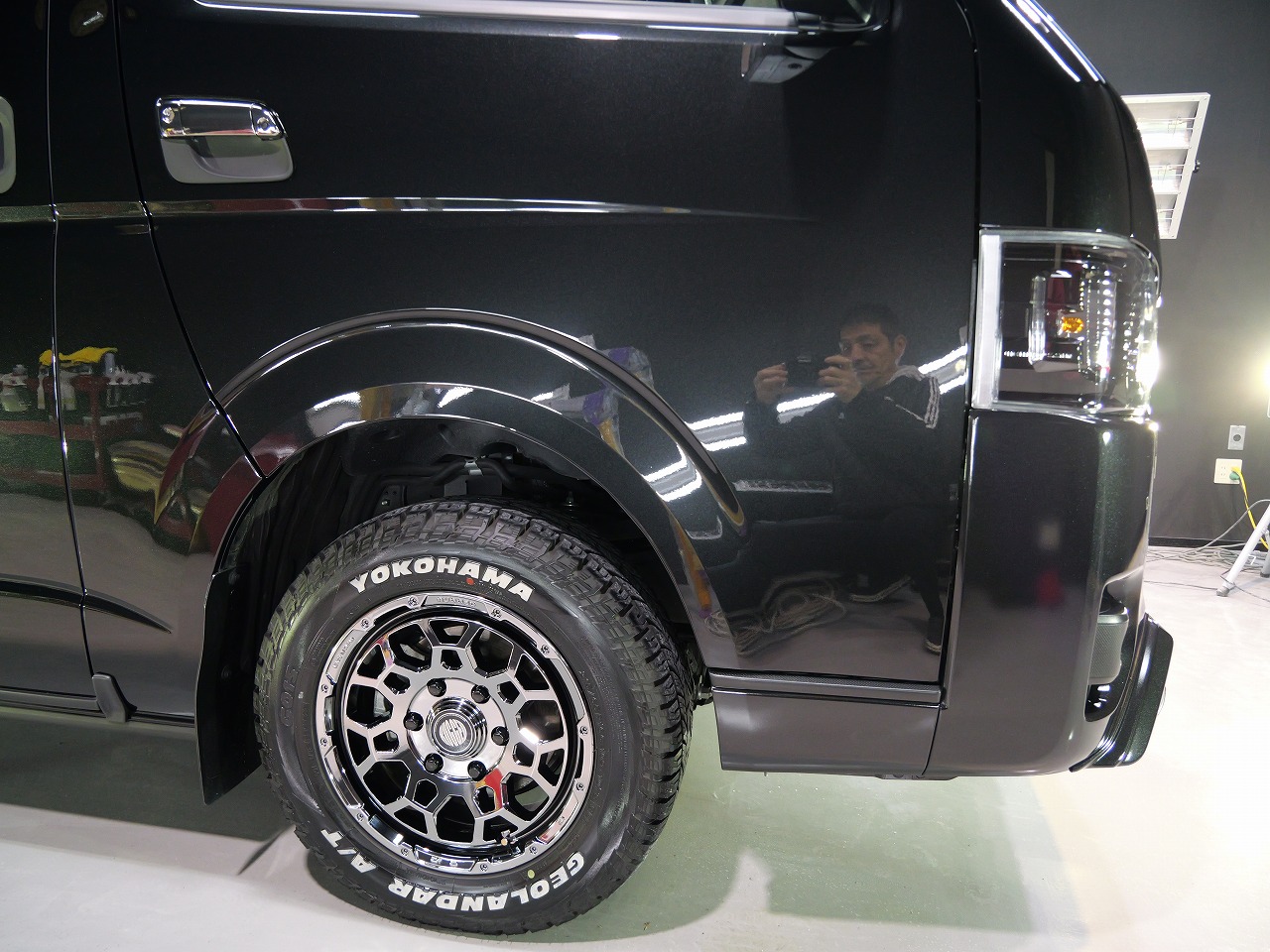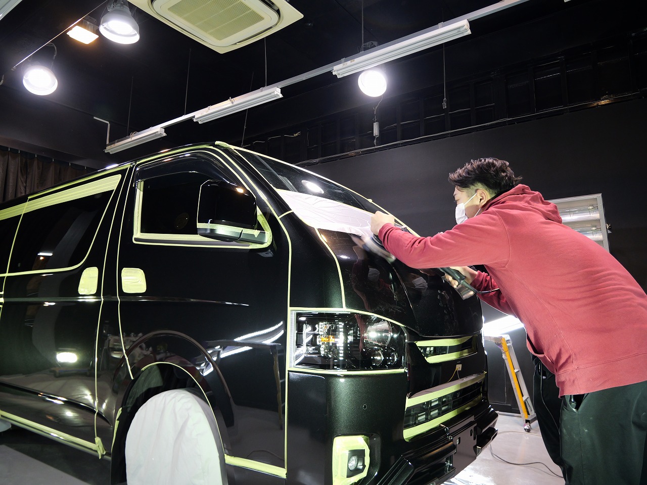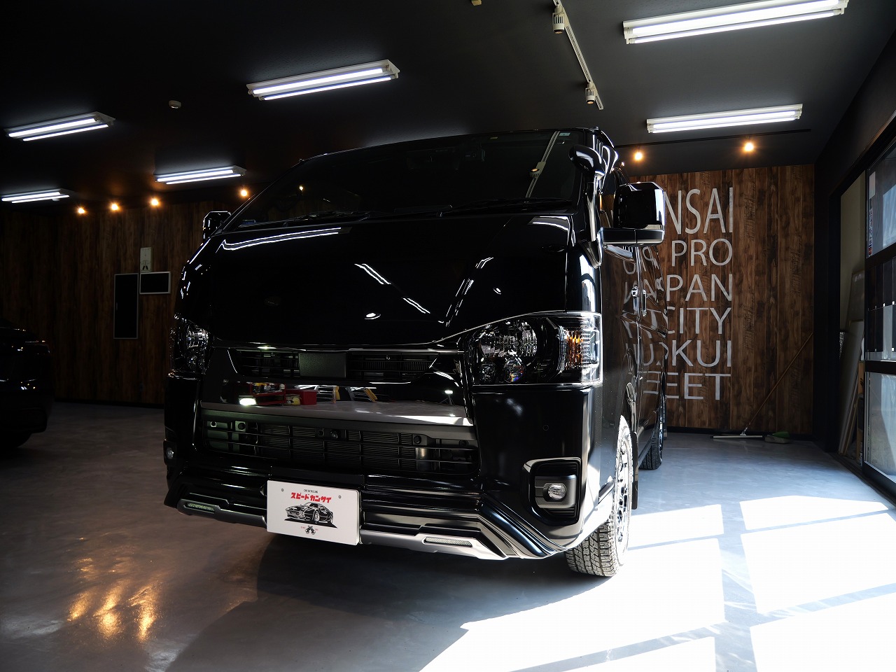 大阪府八尾市よりトヨタ ハイエースのご入庫です!ボディカラーはブラックマイカ。施工はボディ