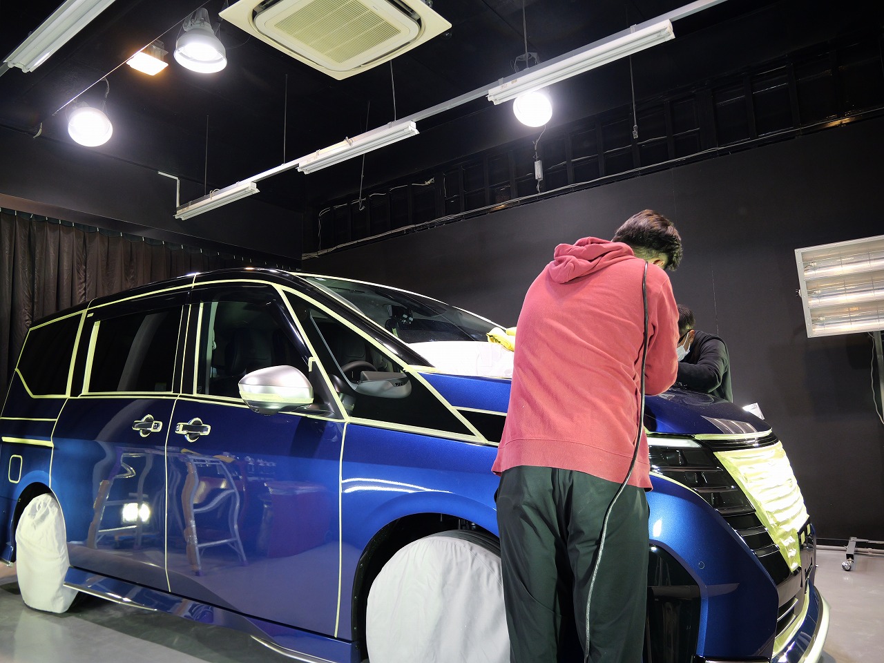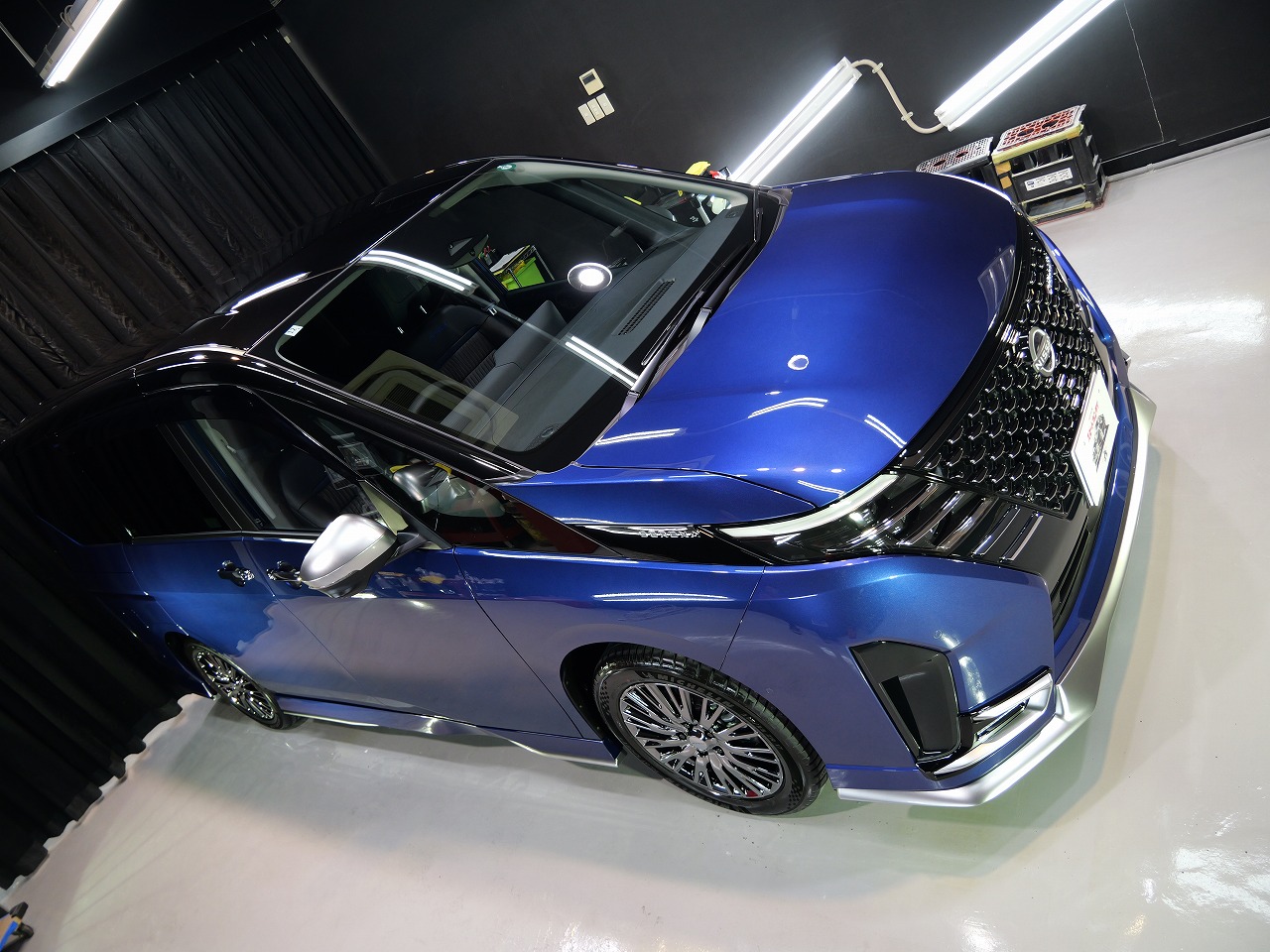 カスピアンブルーM/ルーフ ダイヤモンドブラックPです!施工はボディにはファインラボセラミック