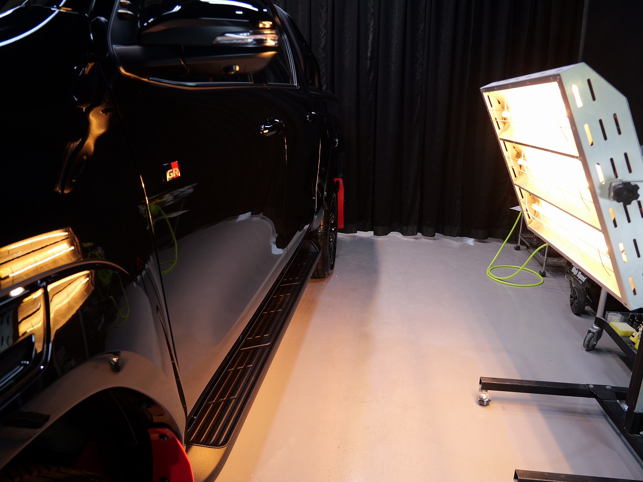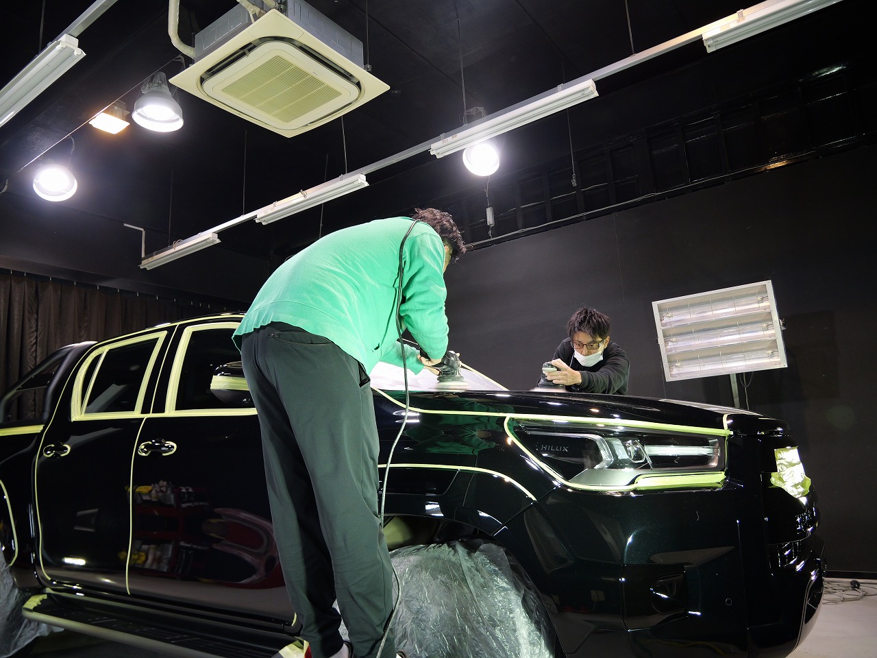 ボディカラーはアティチュードブラックマイカ。施工はボディにはファインラボセラミックコーテ