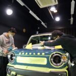 デニムブルーメタリック ガンメタリック2トーンです。施工はボディにはファインラボセラミックコ