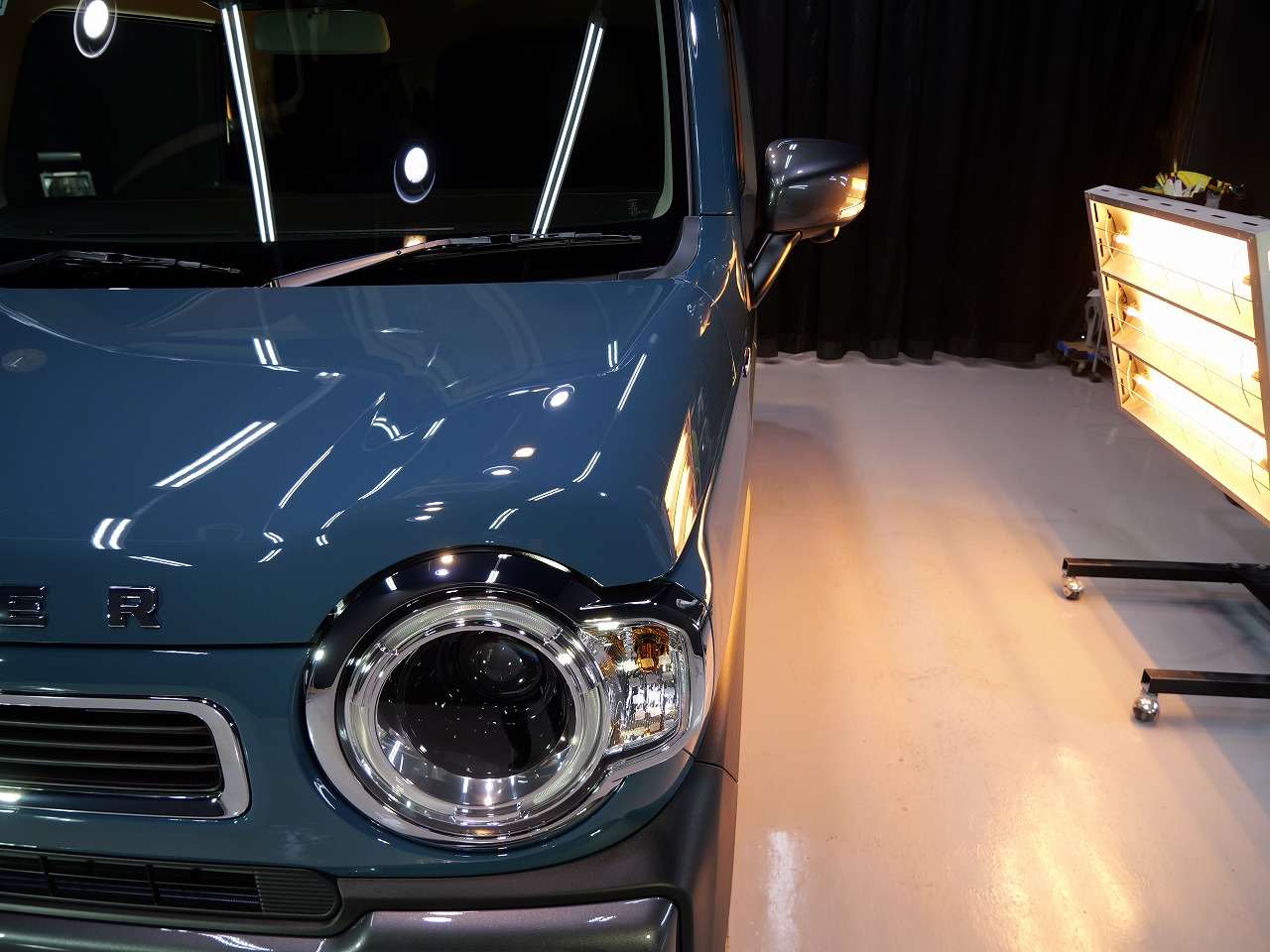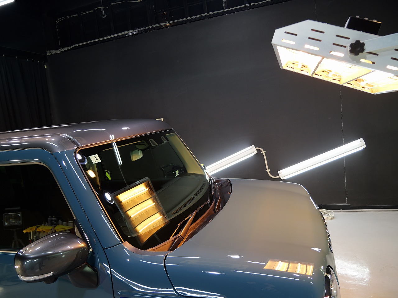 デニムブルーメタリック ガンメタリック2トーンです。施工はボディにはファインラボセラミックコ