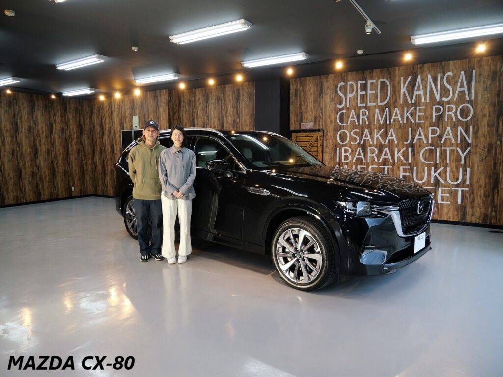 大阪府枚方市より新型マツダCX80のご入庫です!ボディカラーはジェットブラックマイカ。施工は