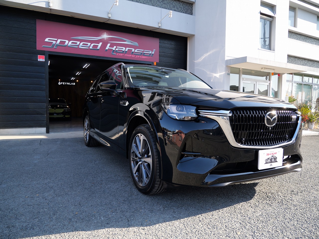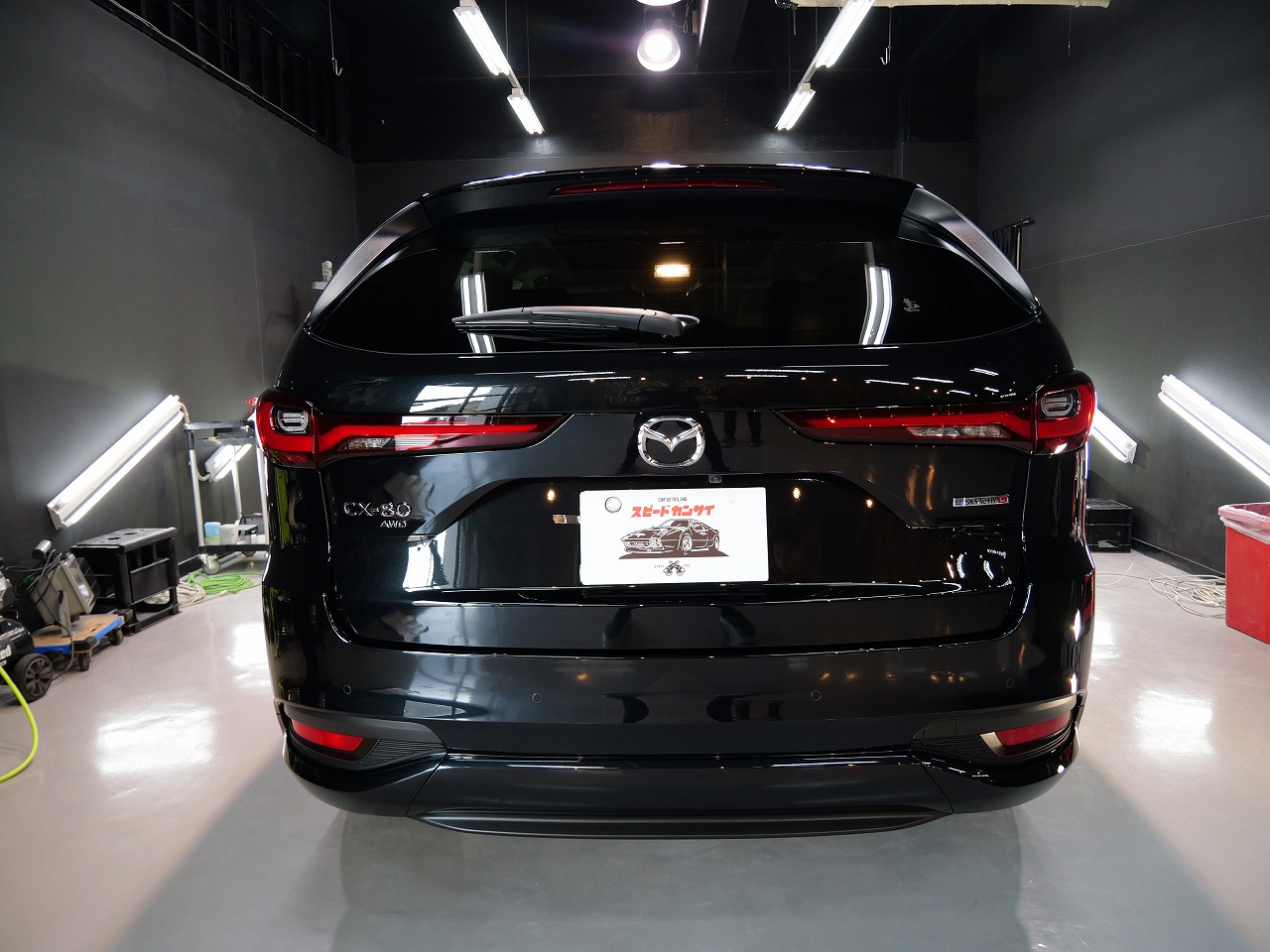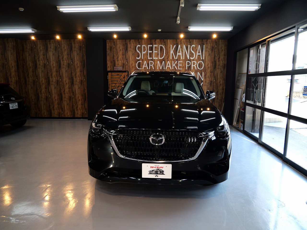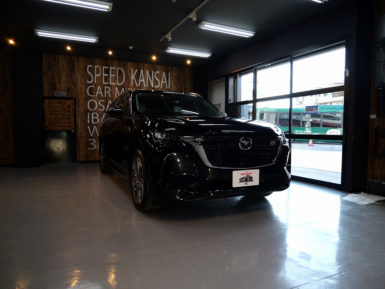 大阪府枚方市より新型マツダCX80のご入庫です!ボディカラーはジェットブラックマイカ。施工は
