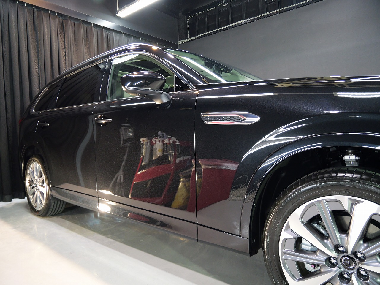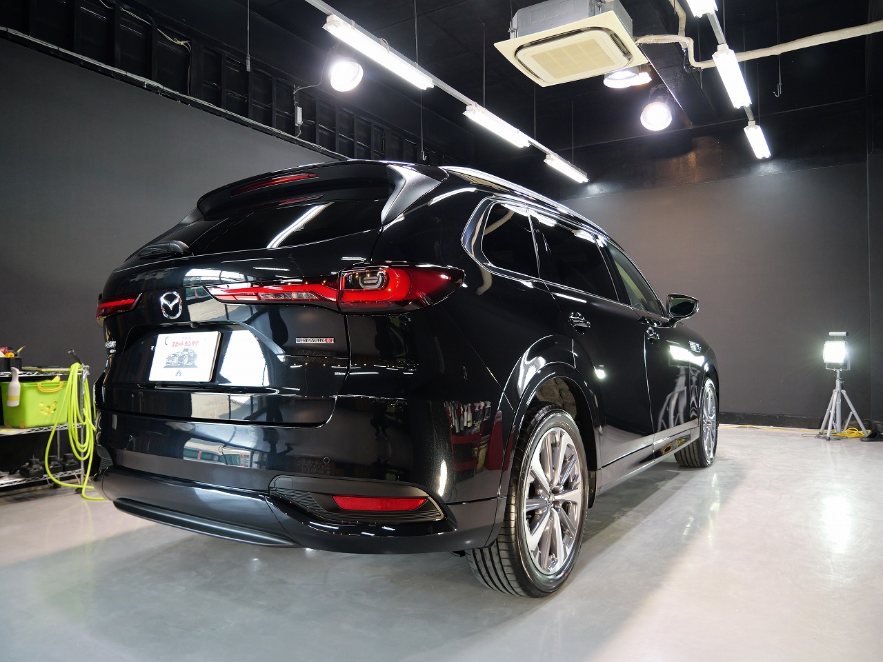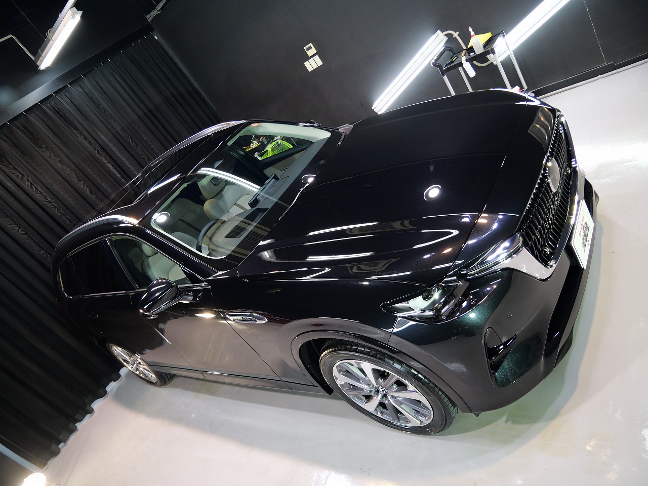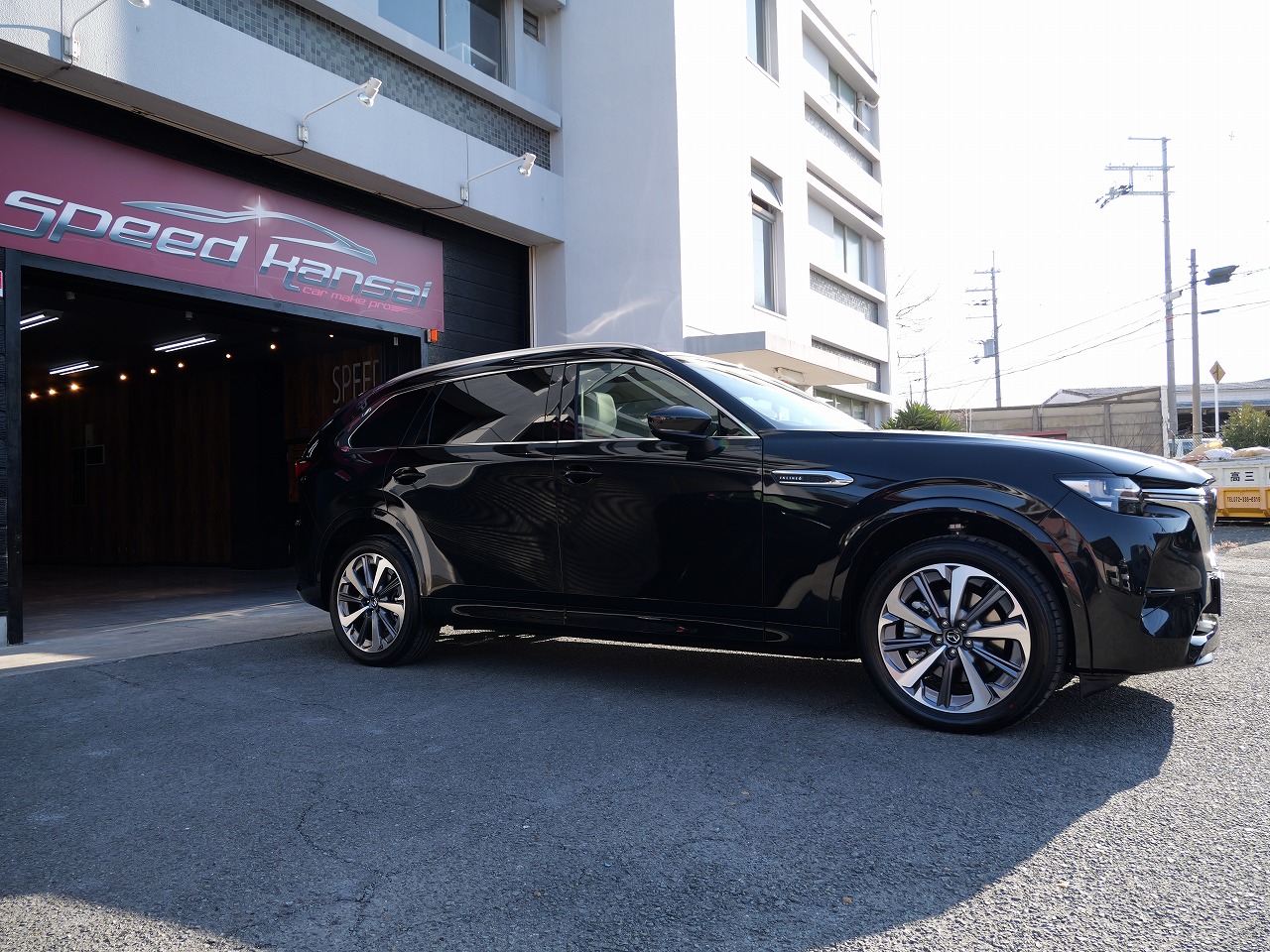 大阪府枚方市より新型マツダCX80のご入庫です!ボディカラーはジェットブラックマイカ。施工は