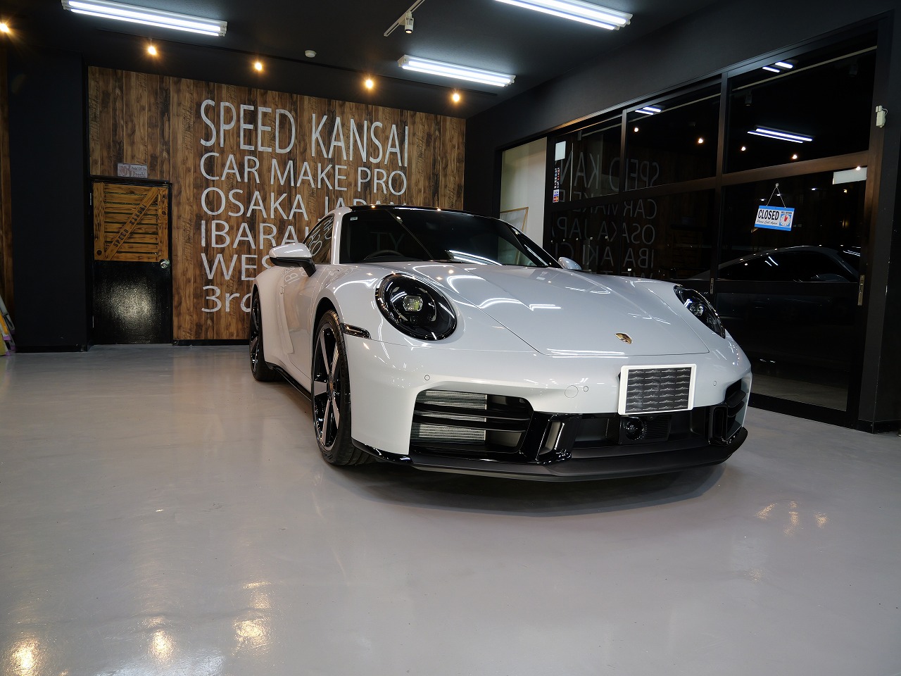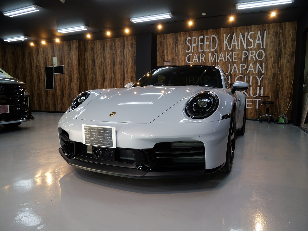 大阪府吹田市よりポルシェ911カレラのご入庫です!ボディカラーはアイスグレー。施工はボディには