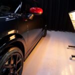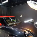 グレー&レッド。施工はボディにはファインラボセラミックコーティングウルトラ2層/ウィンドウフィ