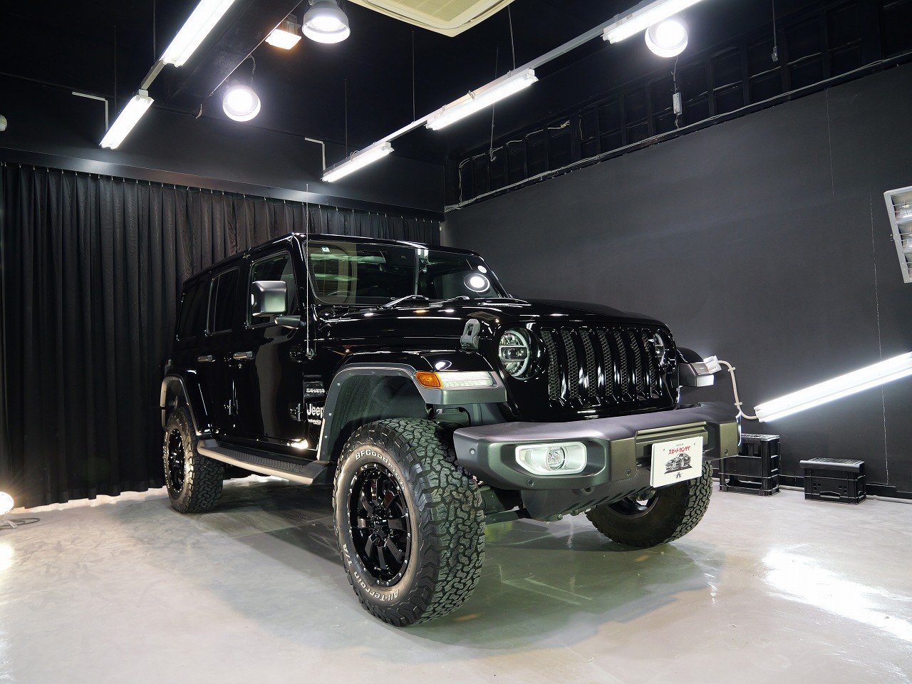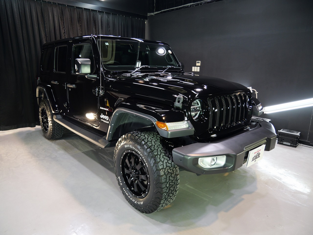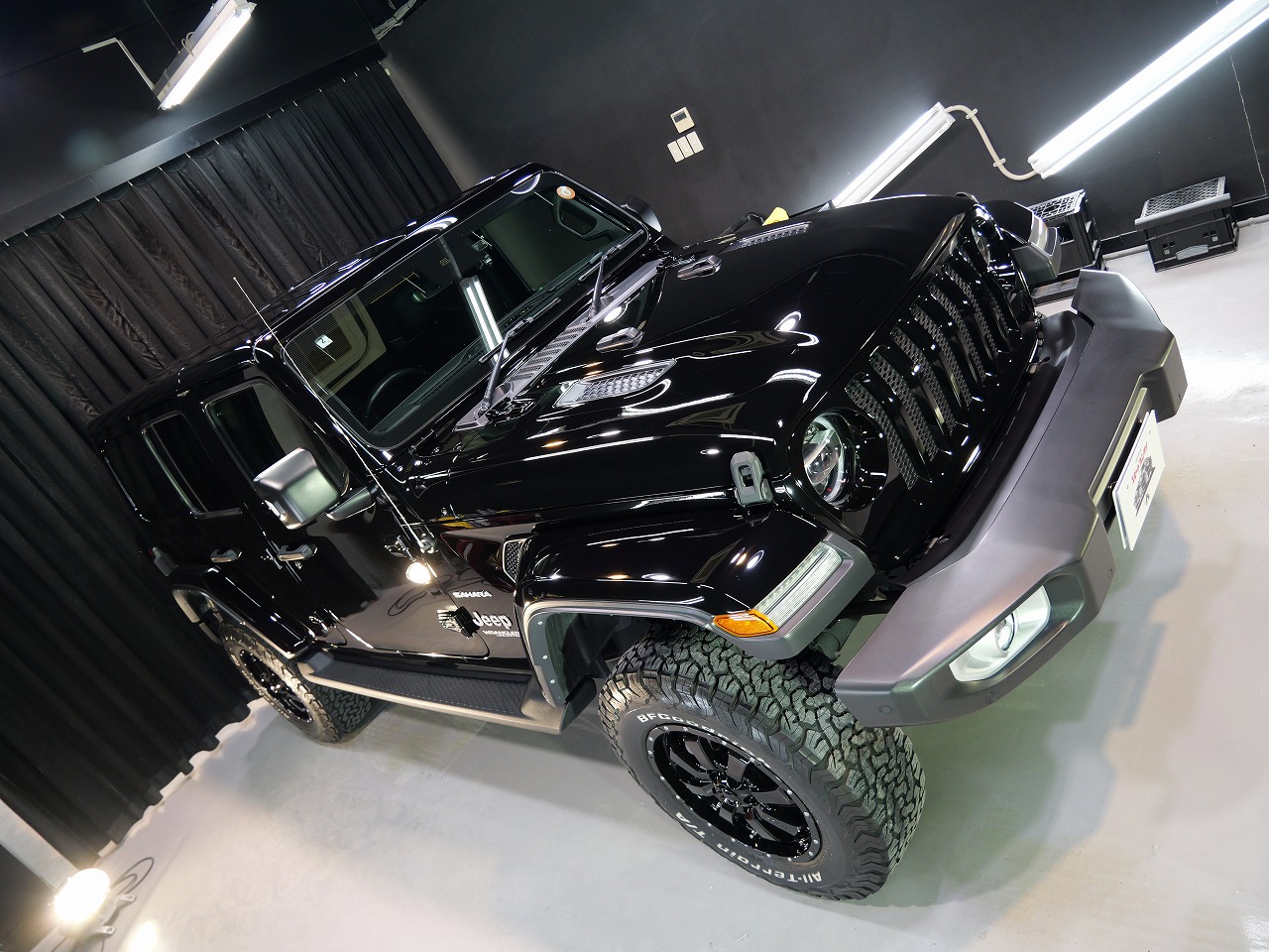 大阪府東大阪市よりジープラングラーのご入庫です!ボディカラーはブラックソリッド。施工はボディ