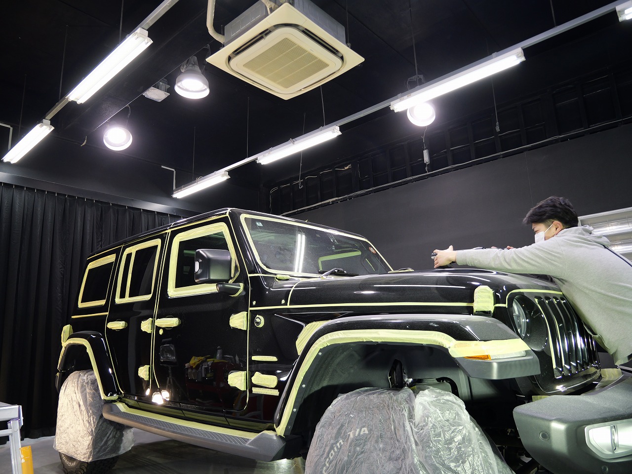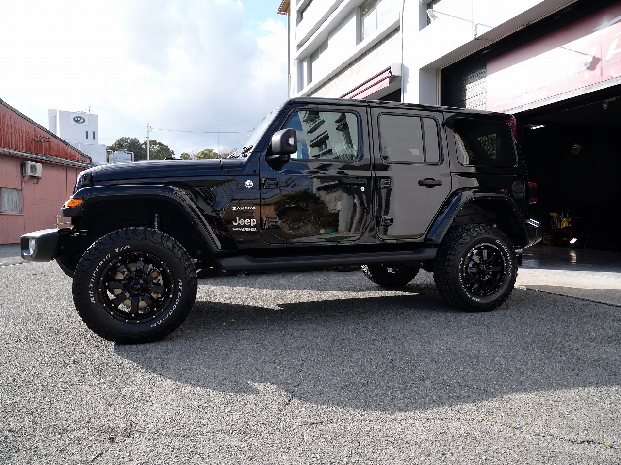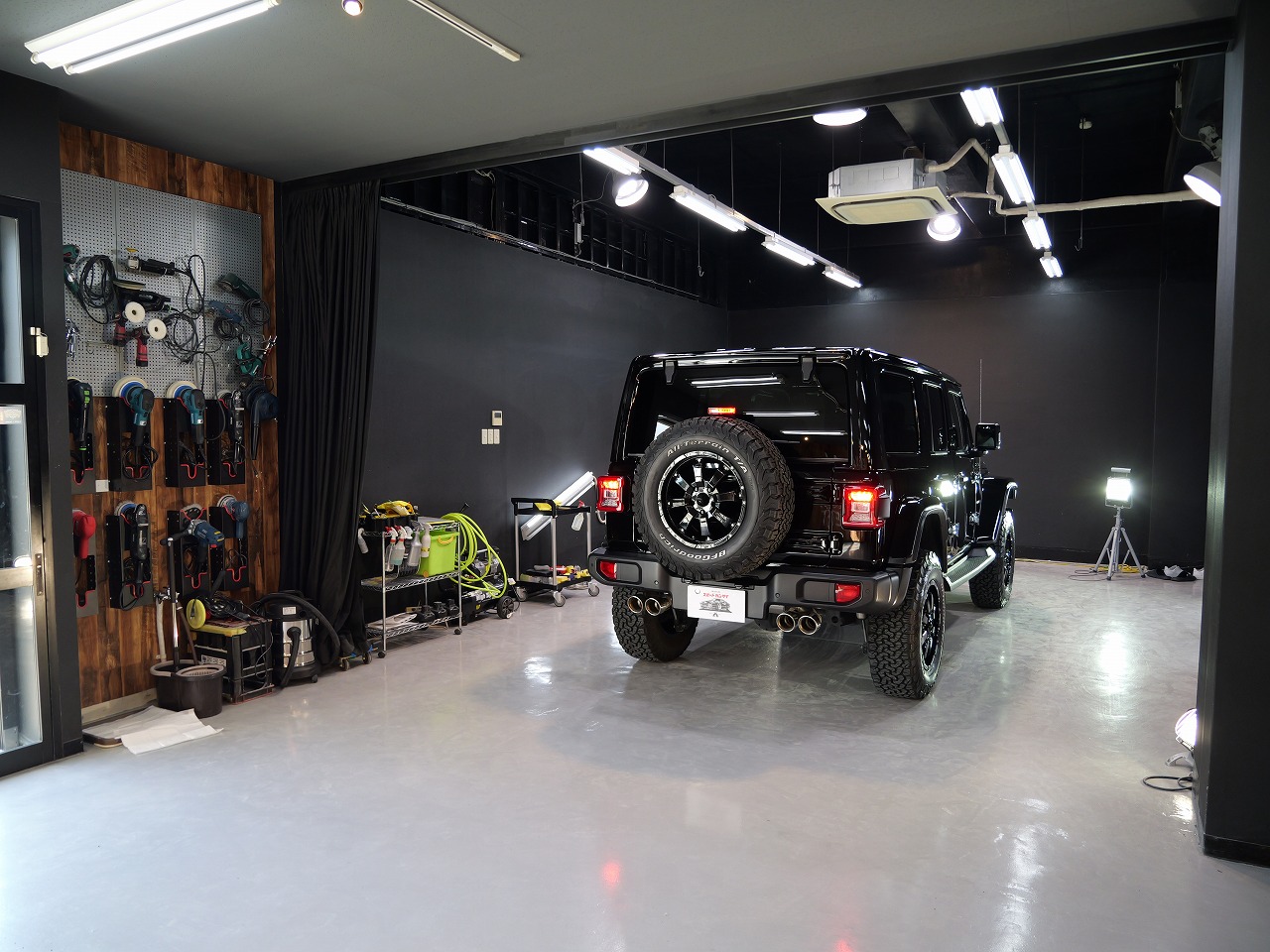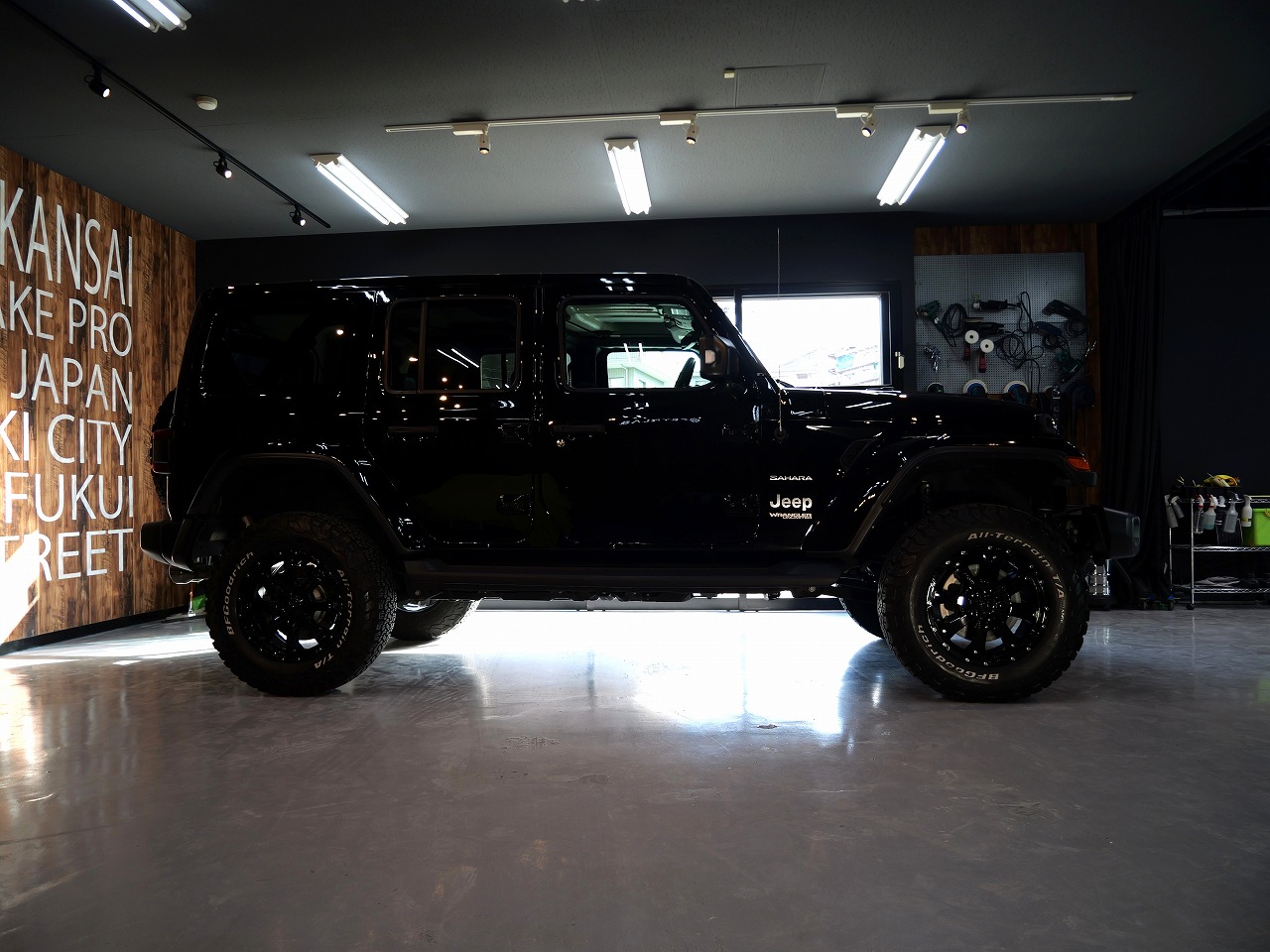 大阪府東大阪市よりジープラングラーのご入庫です!ボディカラーはブラックソリッド。施工はボディ