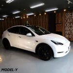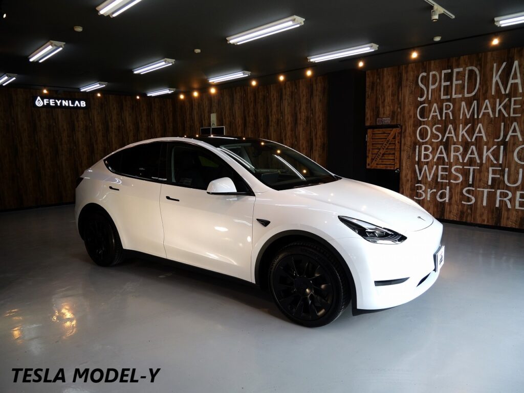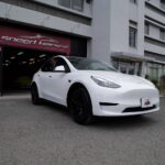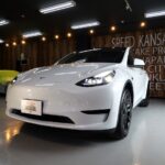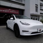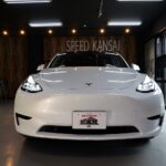 大阪府松原市よりテスラ モデルYのご入庫です!ボディカラーはパールホワイトマルチコート。施工は