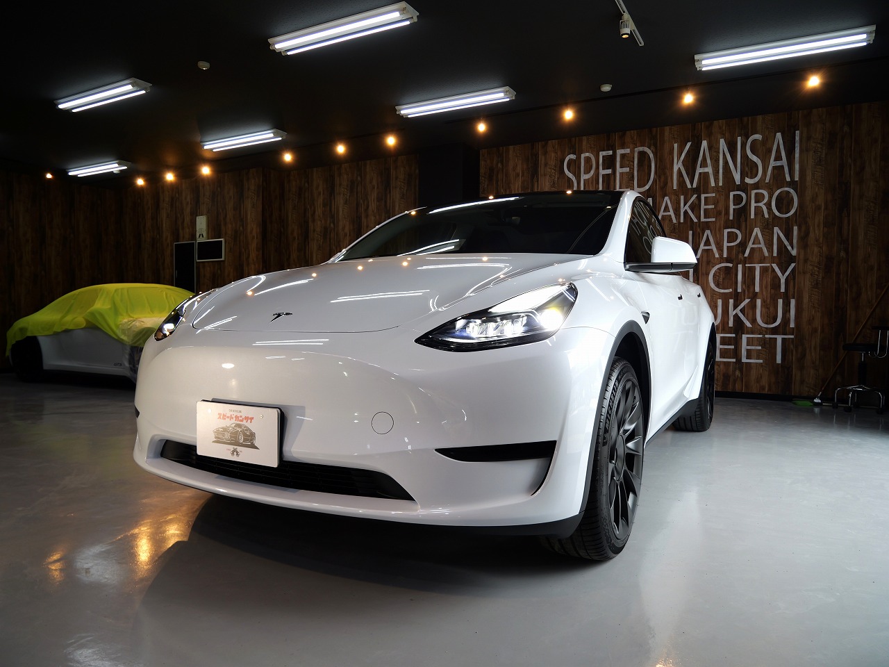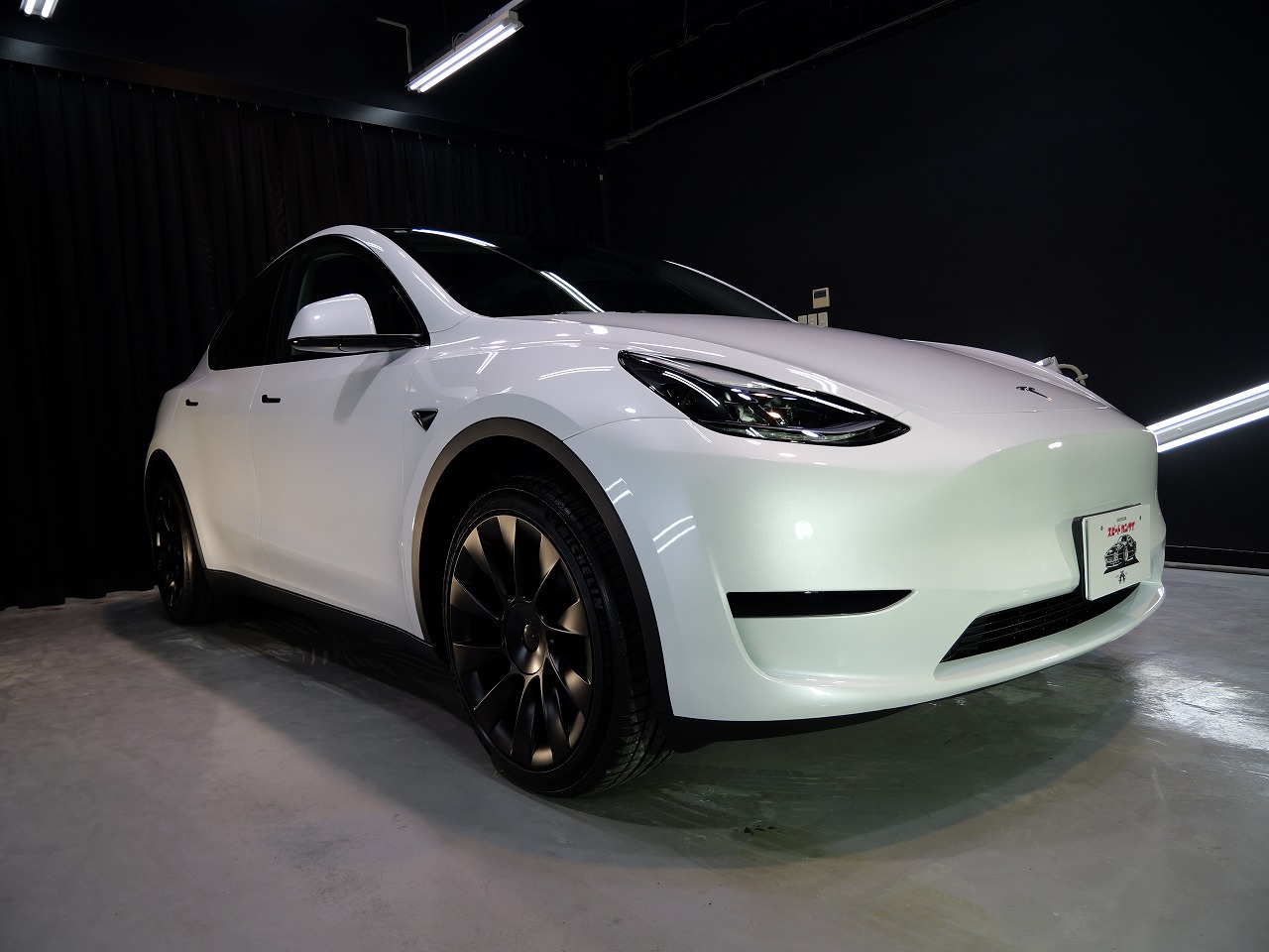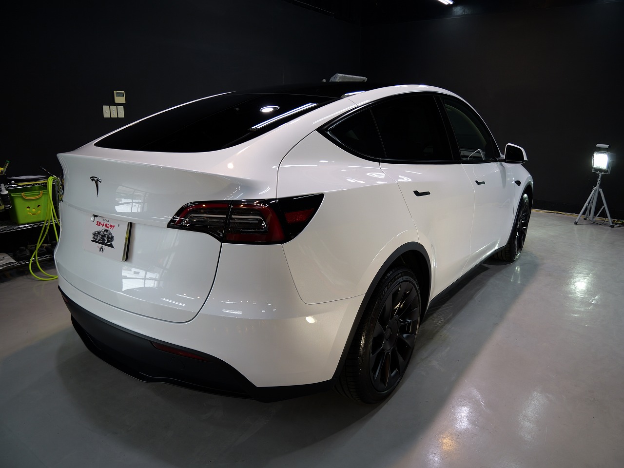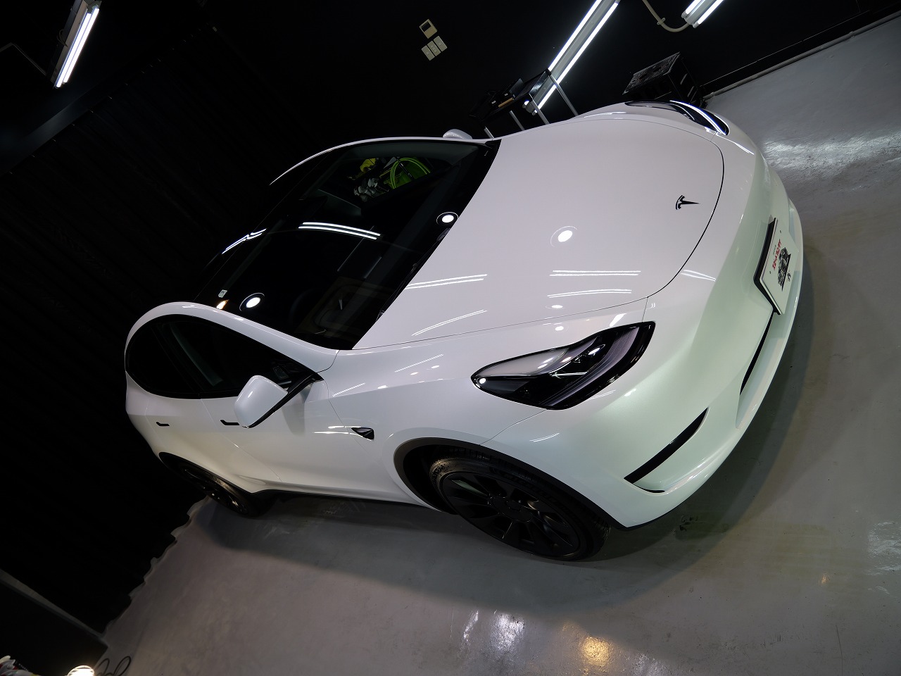 大阪府松原市よりテスラ モデルYのご入庫です!ボディカラーはパールホワイトマルチコート。施工は