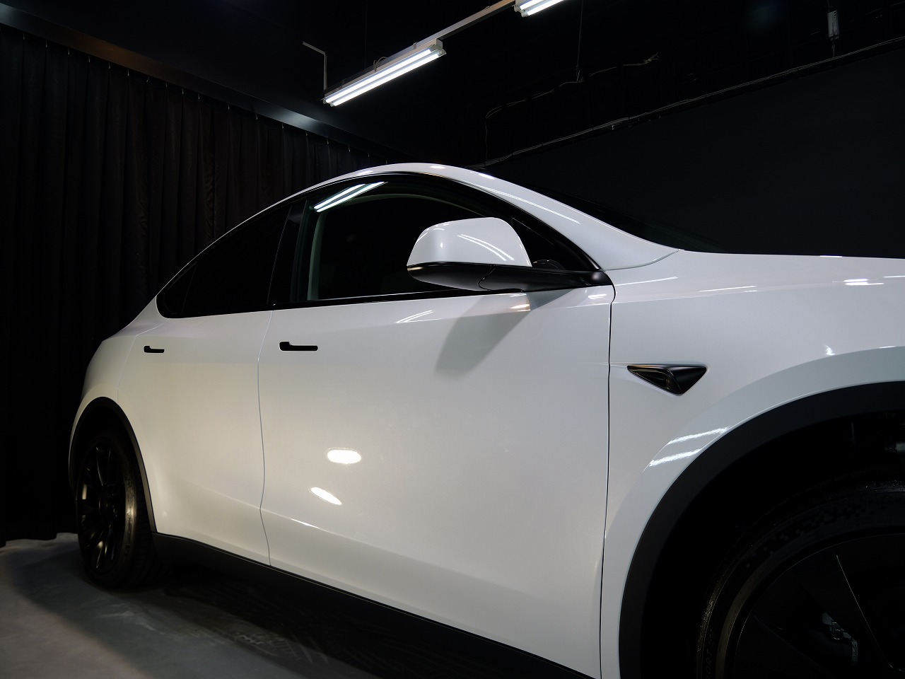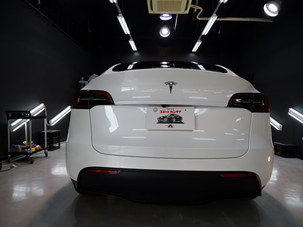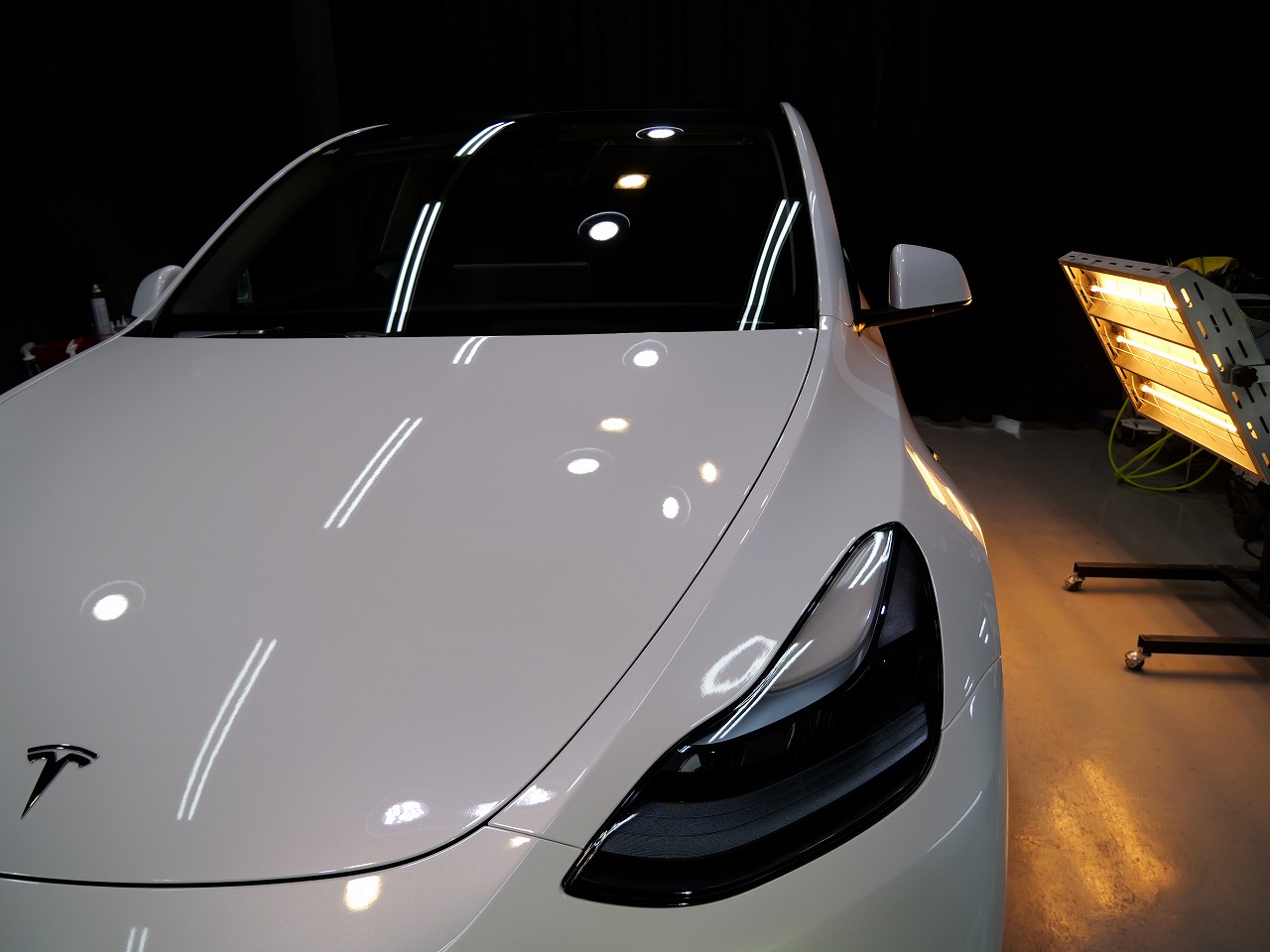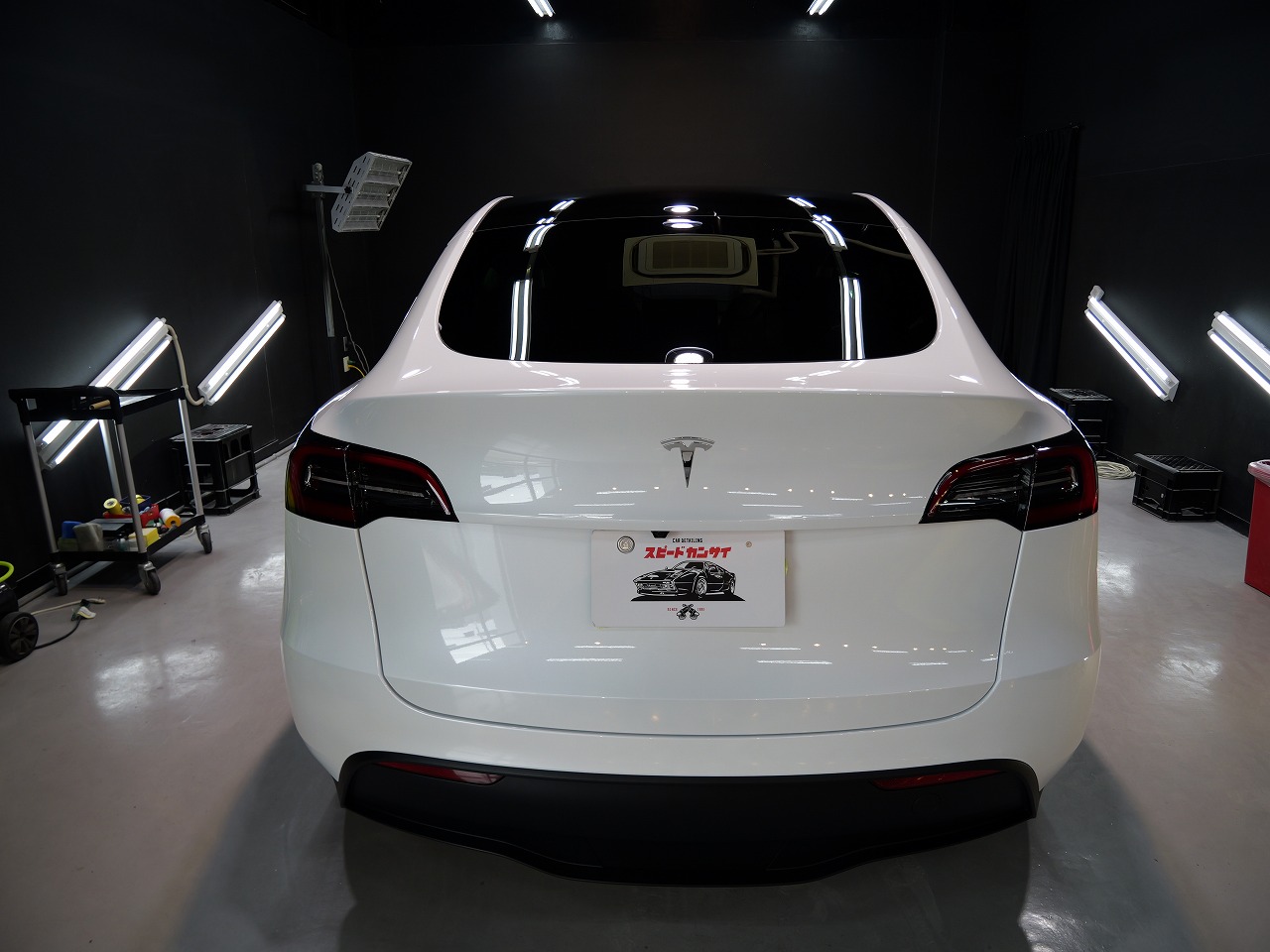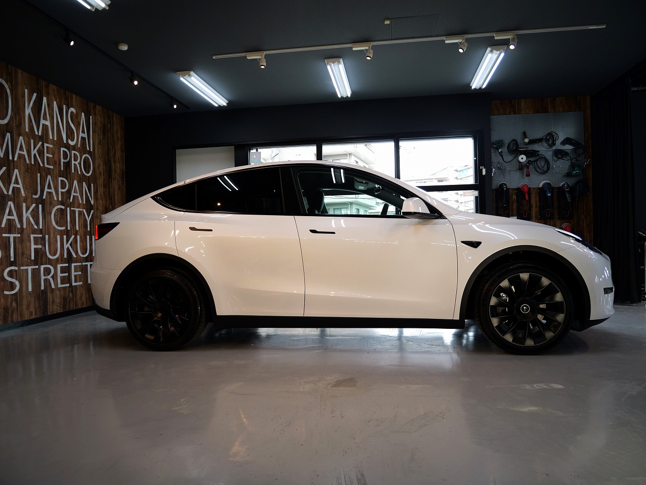 大阪府松原市よりテスラ モデルYのご入庫です!ボディカラーはパールホワイトマルチコート。施工は