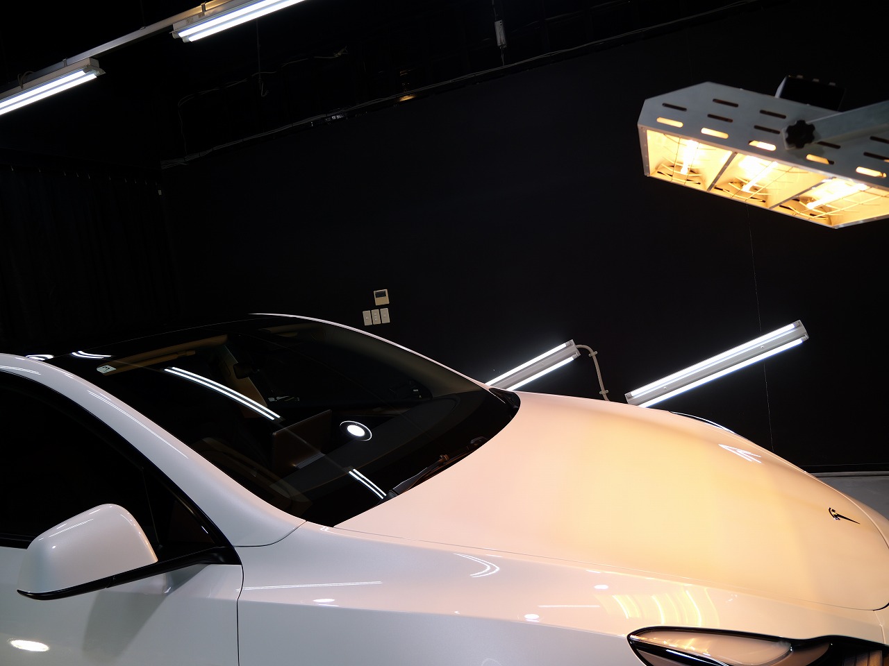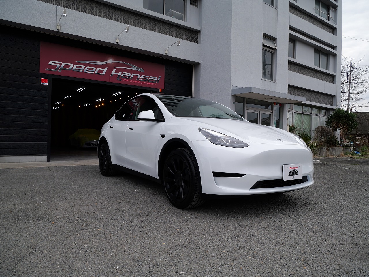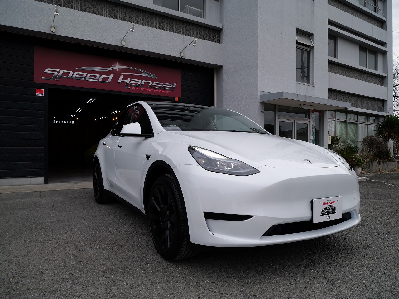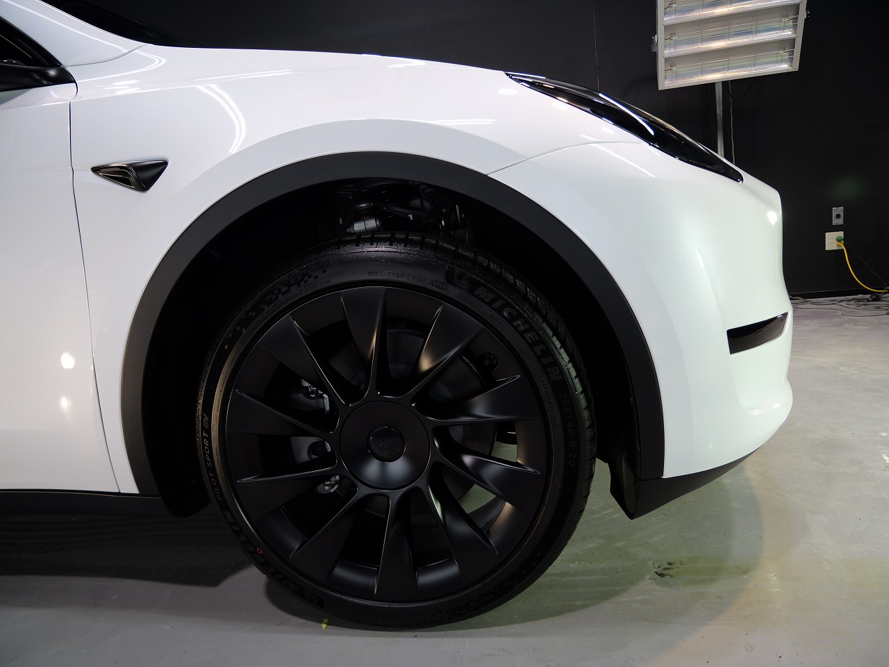 大阪府松原市よりテスラ モデルYのご入庫です!ボディカラーはパールホワイトマルチコート。施工は