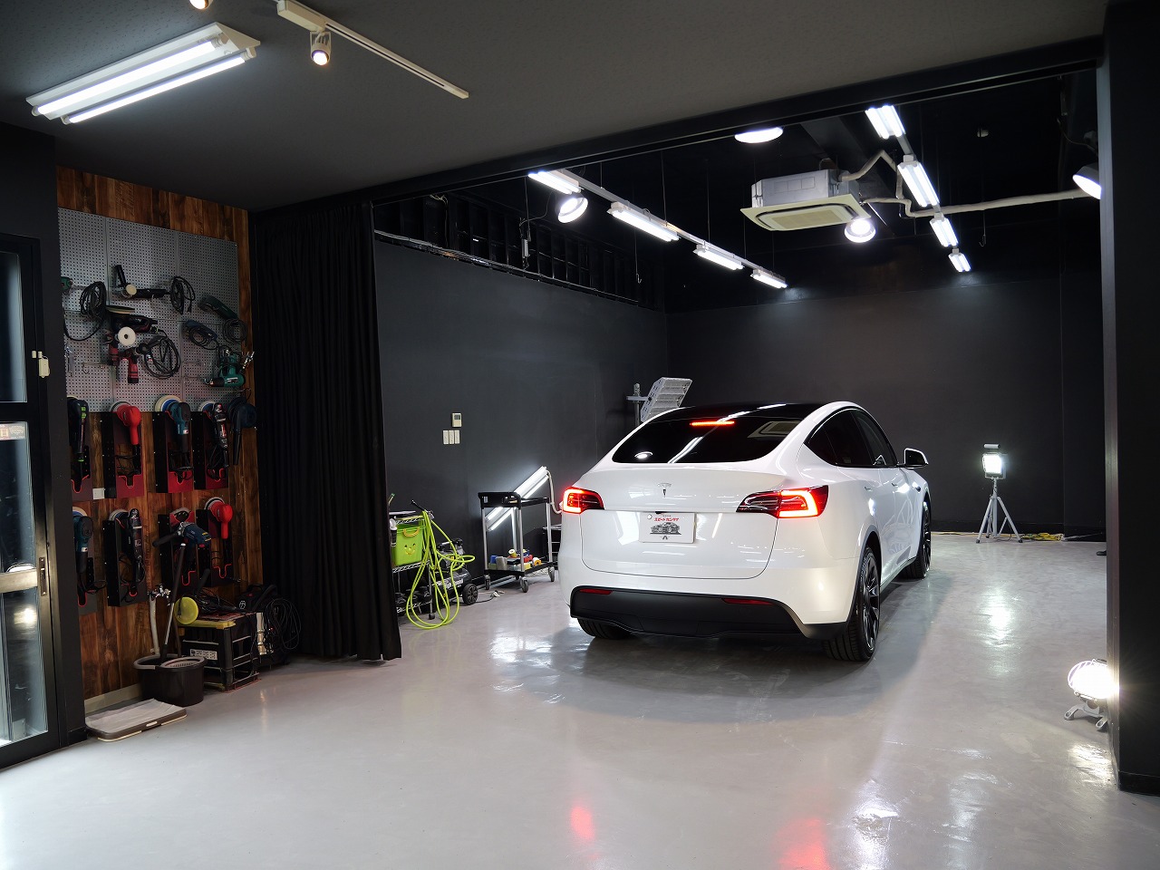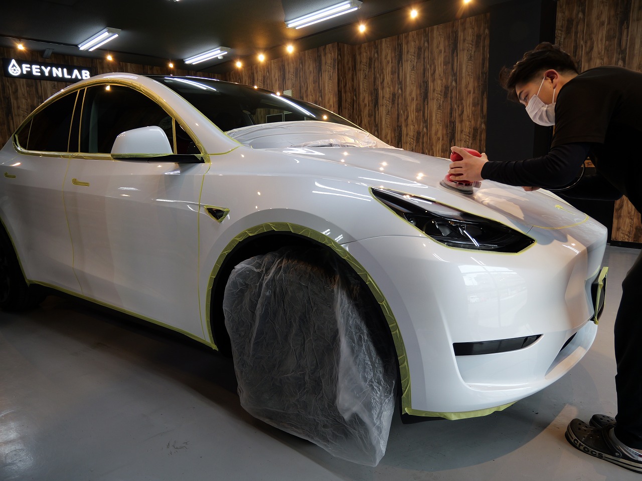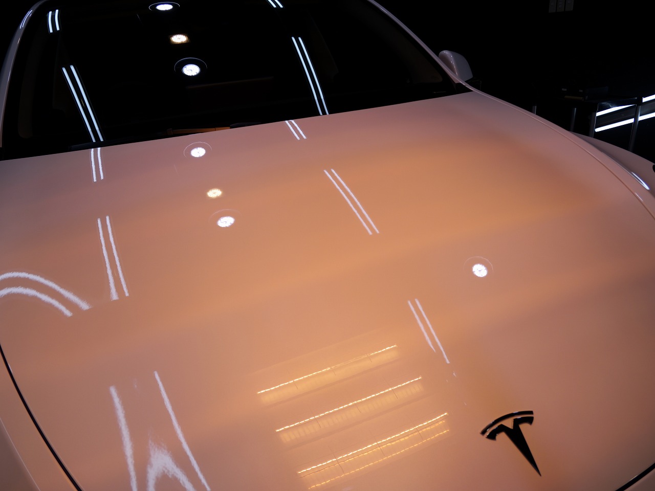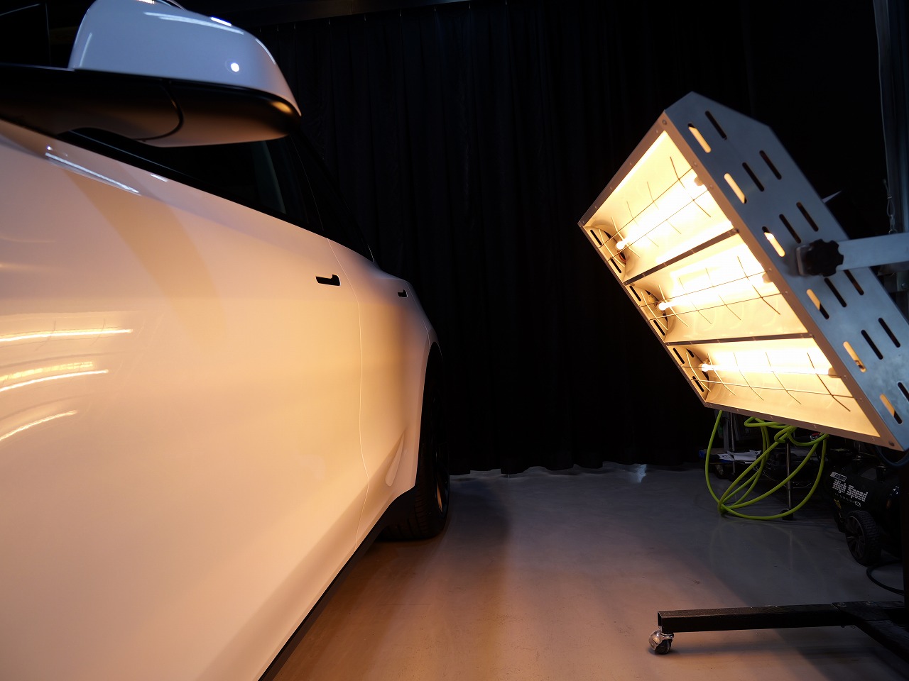 大阪府松原市よりテスラ モデルYのご入庫です!ボディカラーはパールホワイトマルチコート。施工は