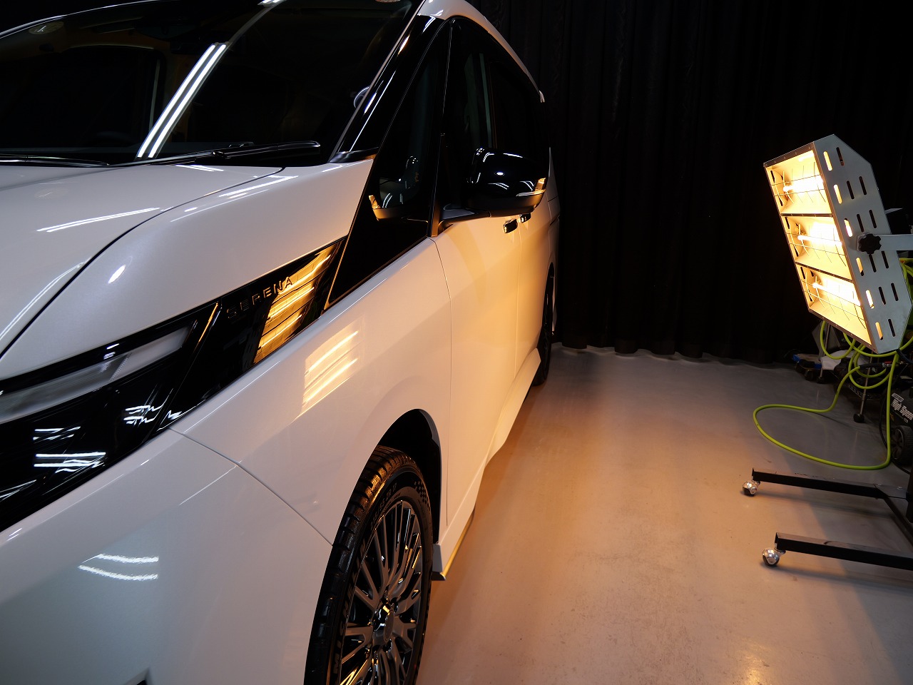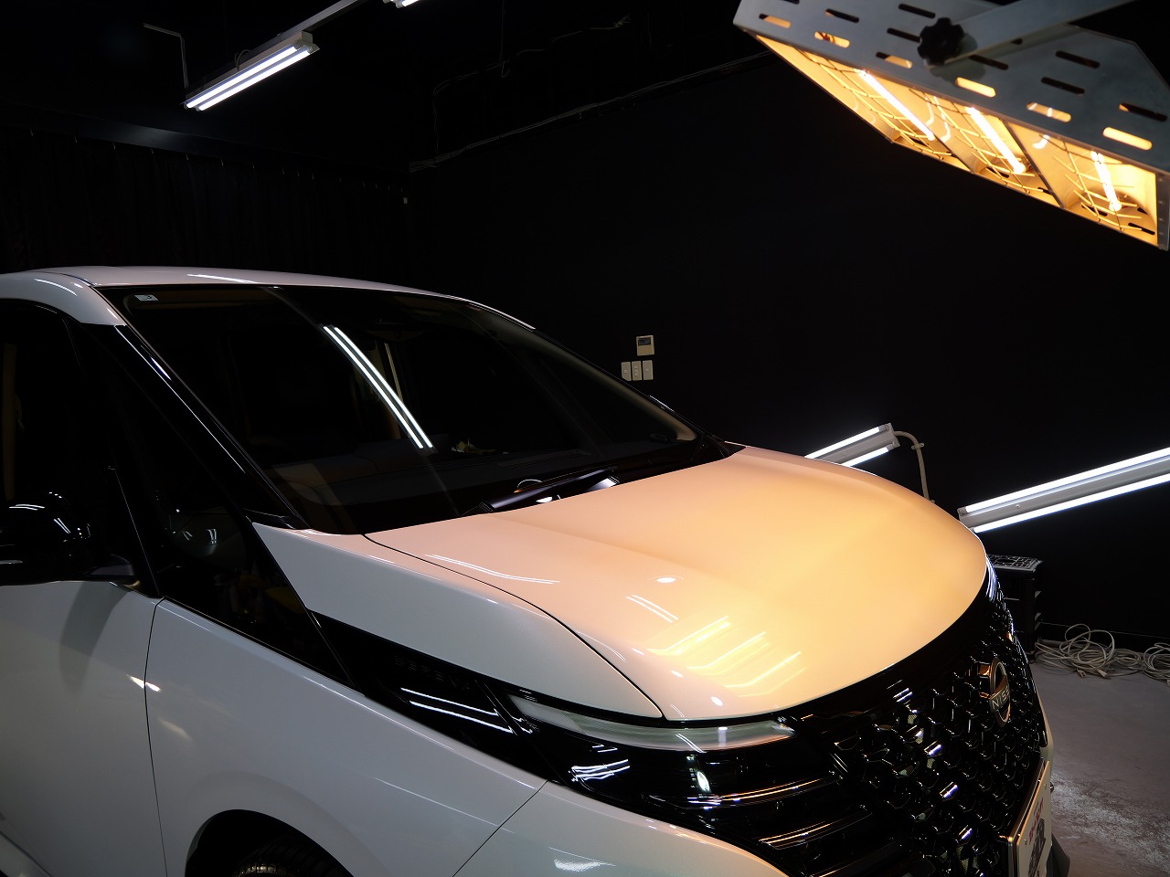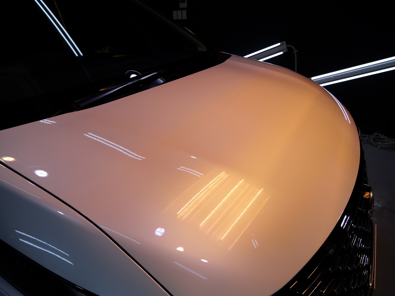 カラーはプリズムホワイト。施工はボディにはファインラボセラミックコーティングウルトラ2層/