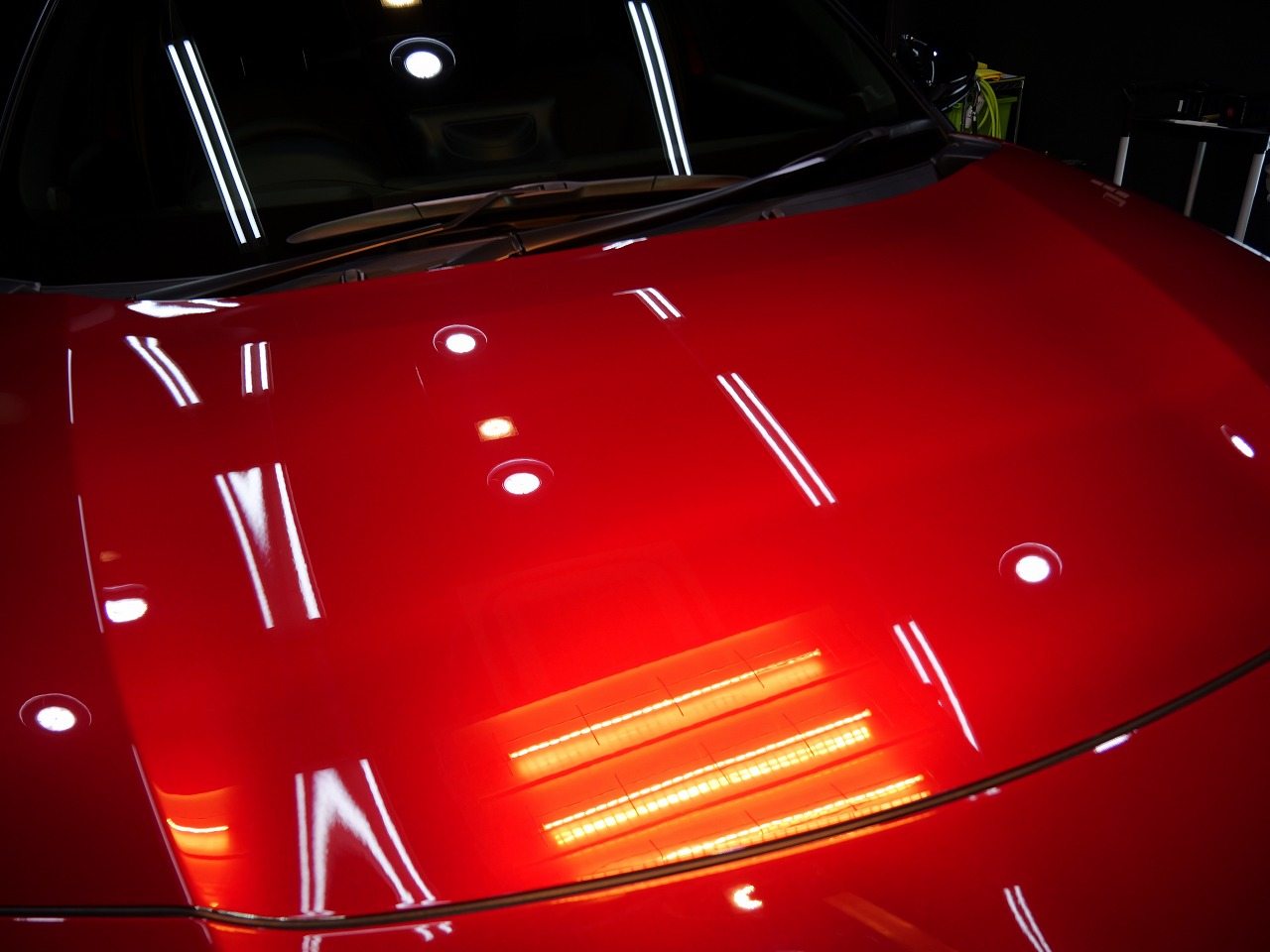 センシュアルレッド&ブラックマイカ。施工はボディにはファインラボセラミックコーティングウルト