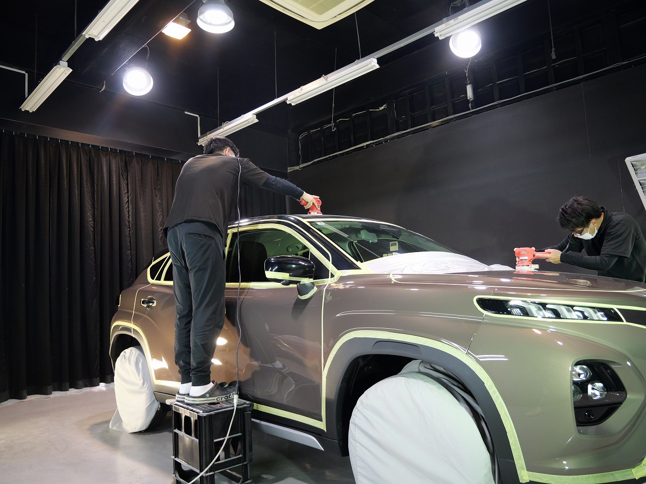 カラーはアースンブラウンメタリック/ブラック2トーン!施工はボディにはファインラボセラミ