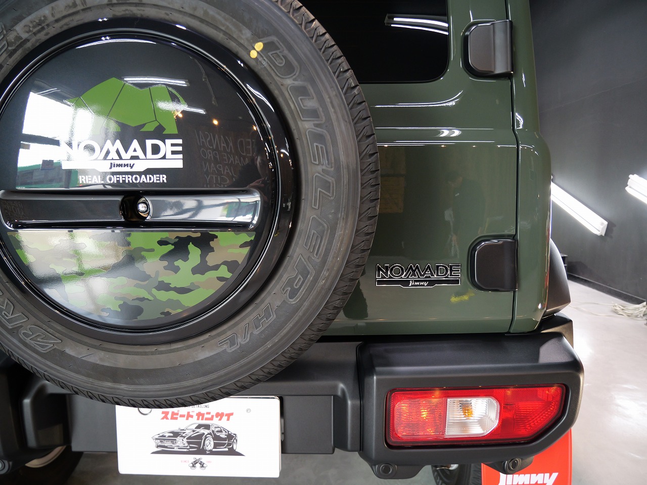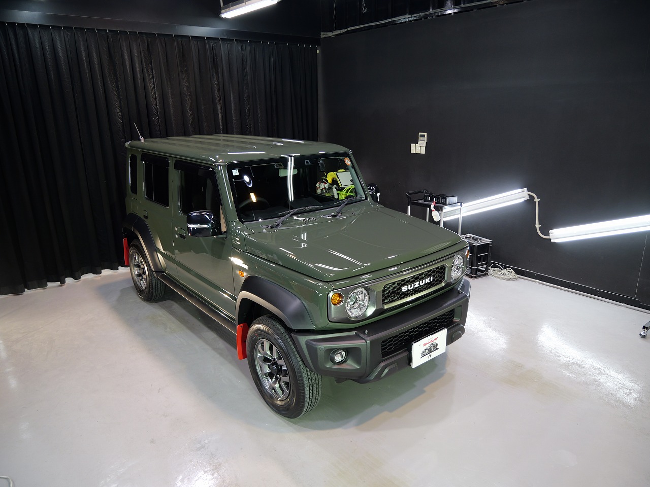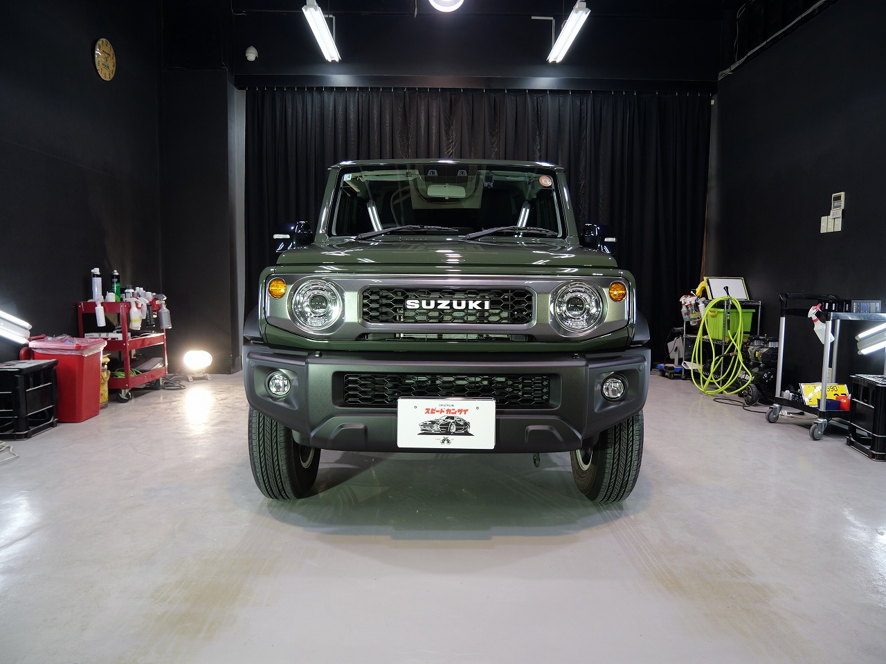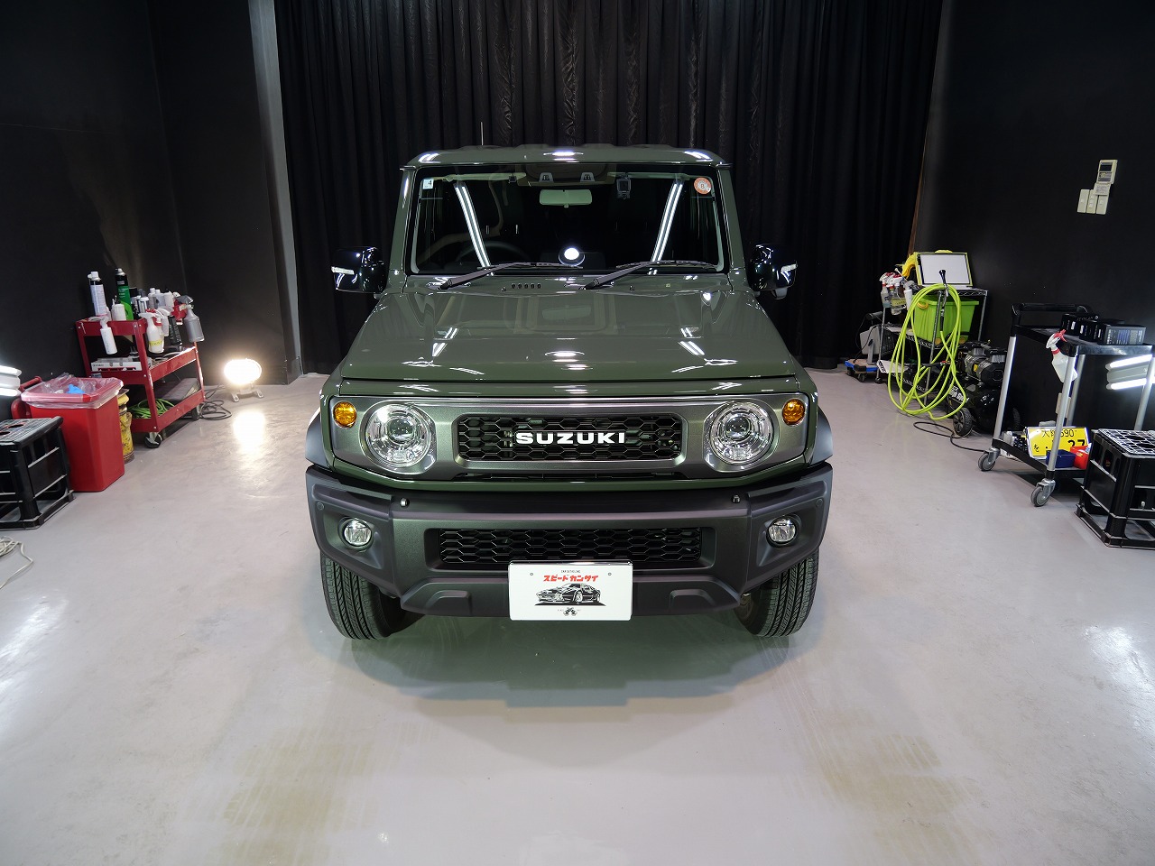 大阪府高槻市よりスズキジムニーノマドのご入庫です!ボディカラーはジャングルグリーン。施工は