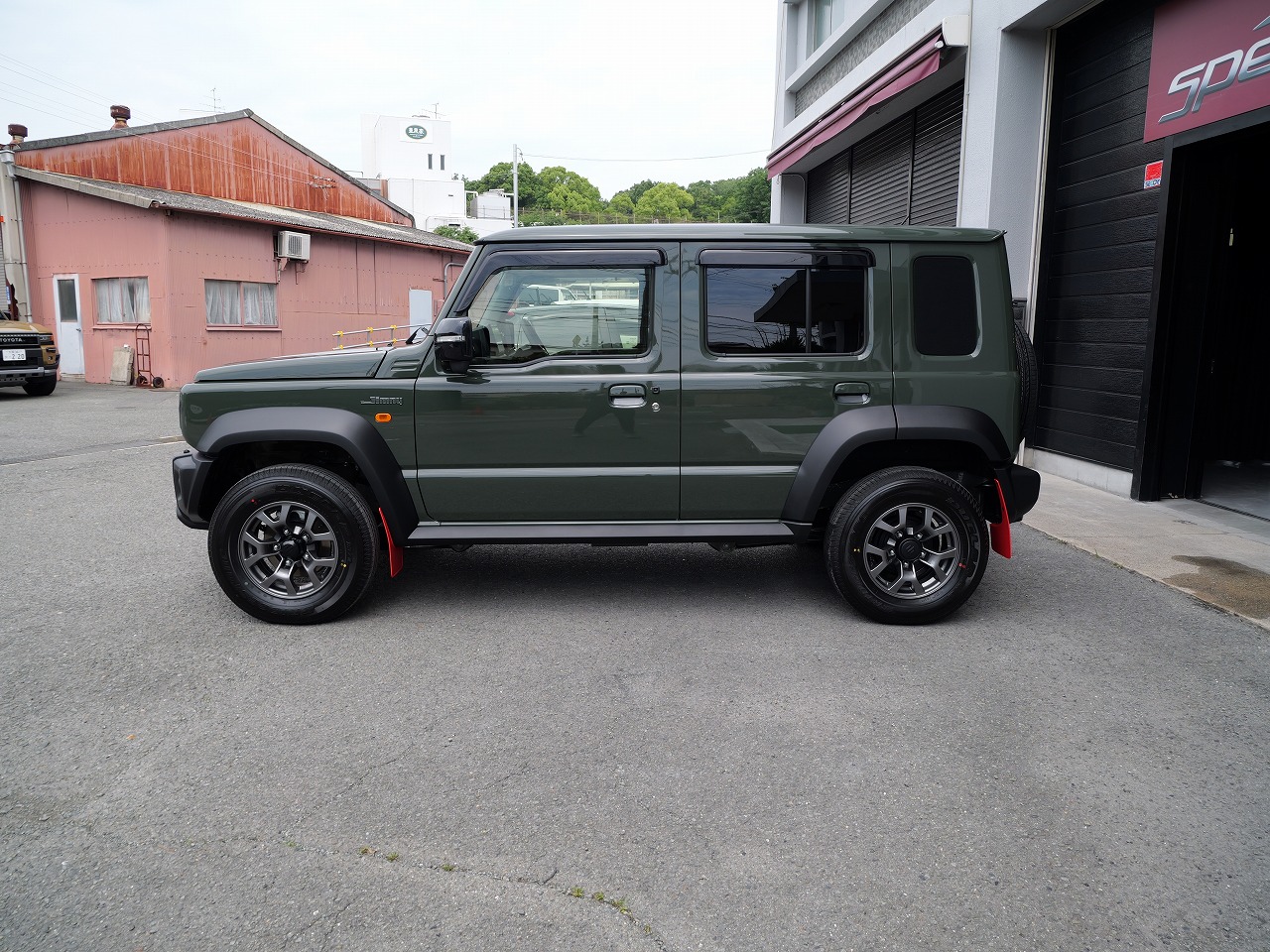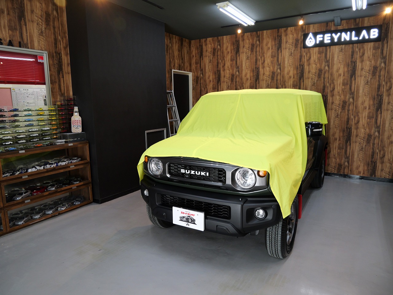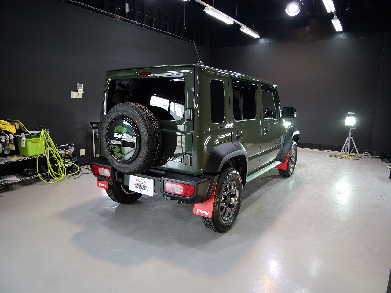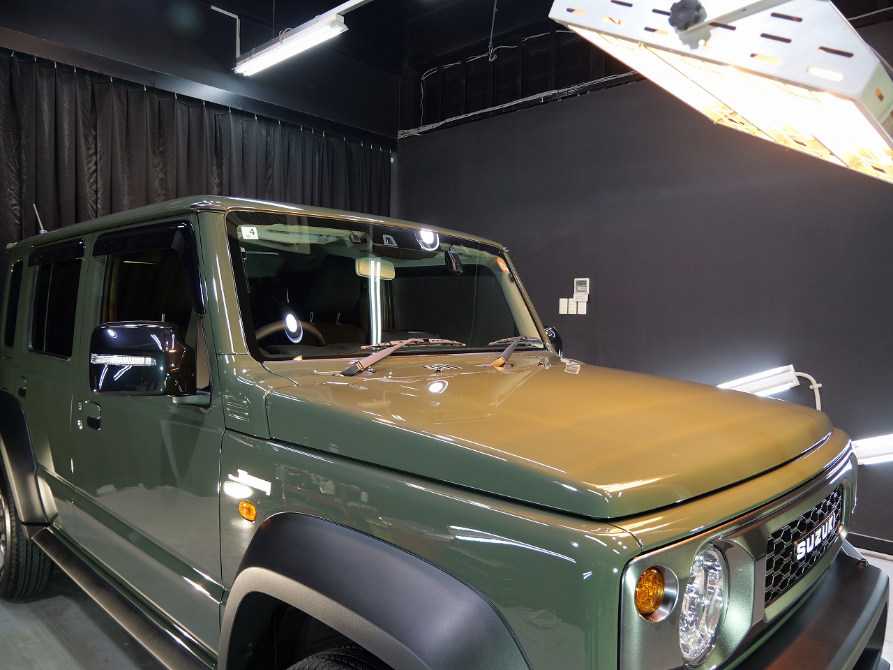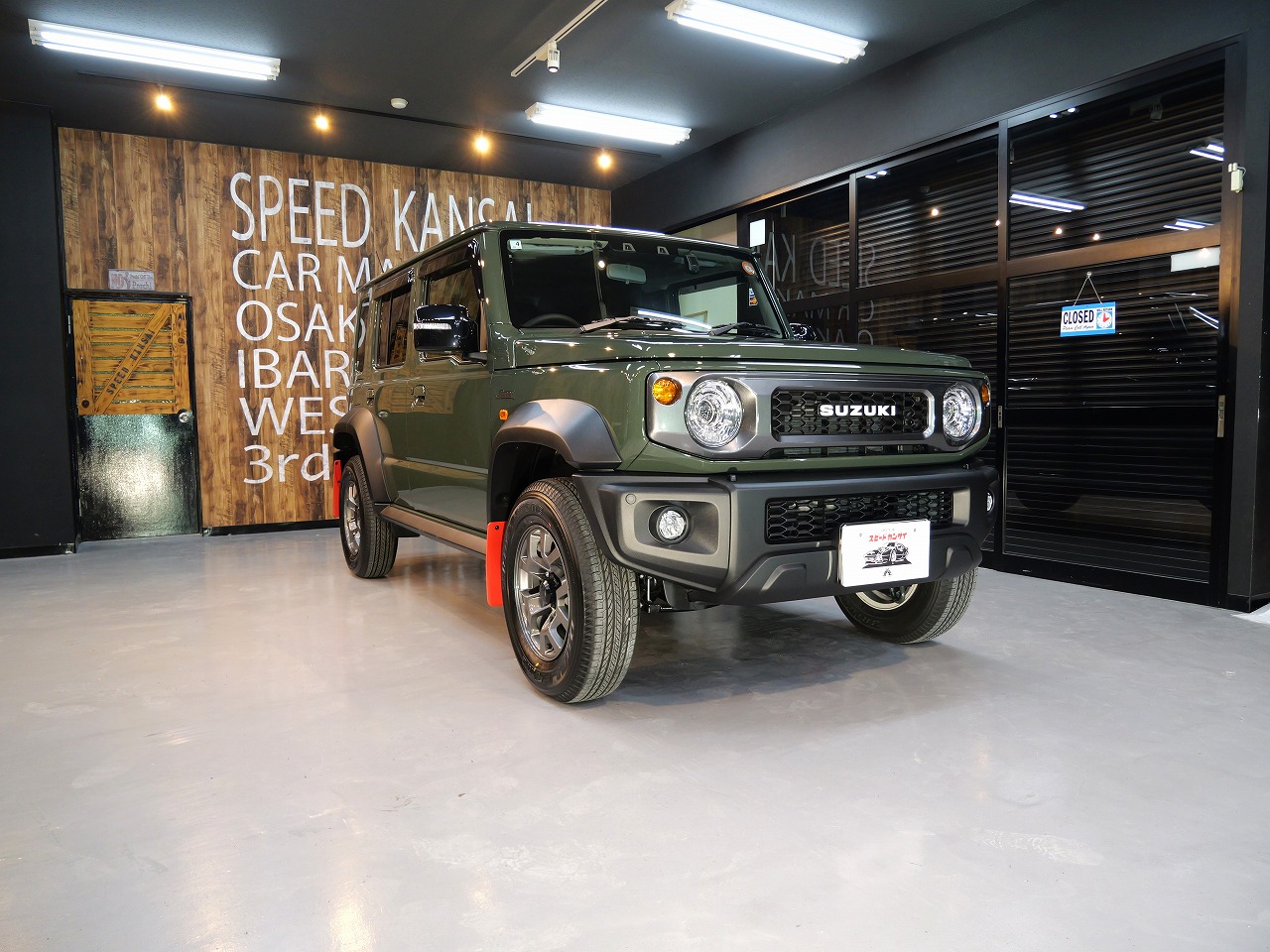 大阪府高槻市よりスズキジムニーノマドのご入庫です!ボディカラーはジャングルグリーン。施工は
