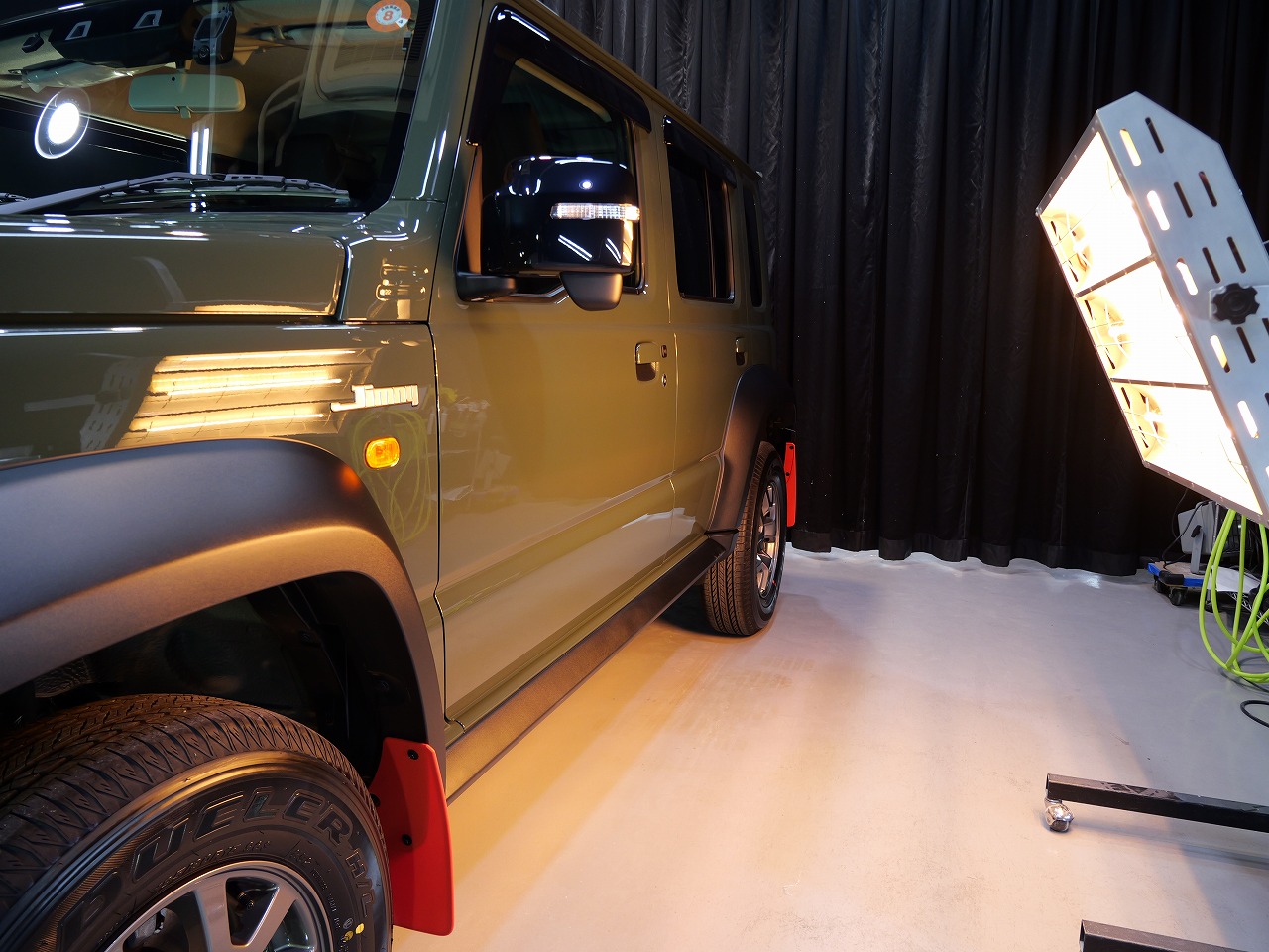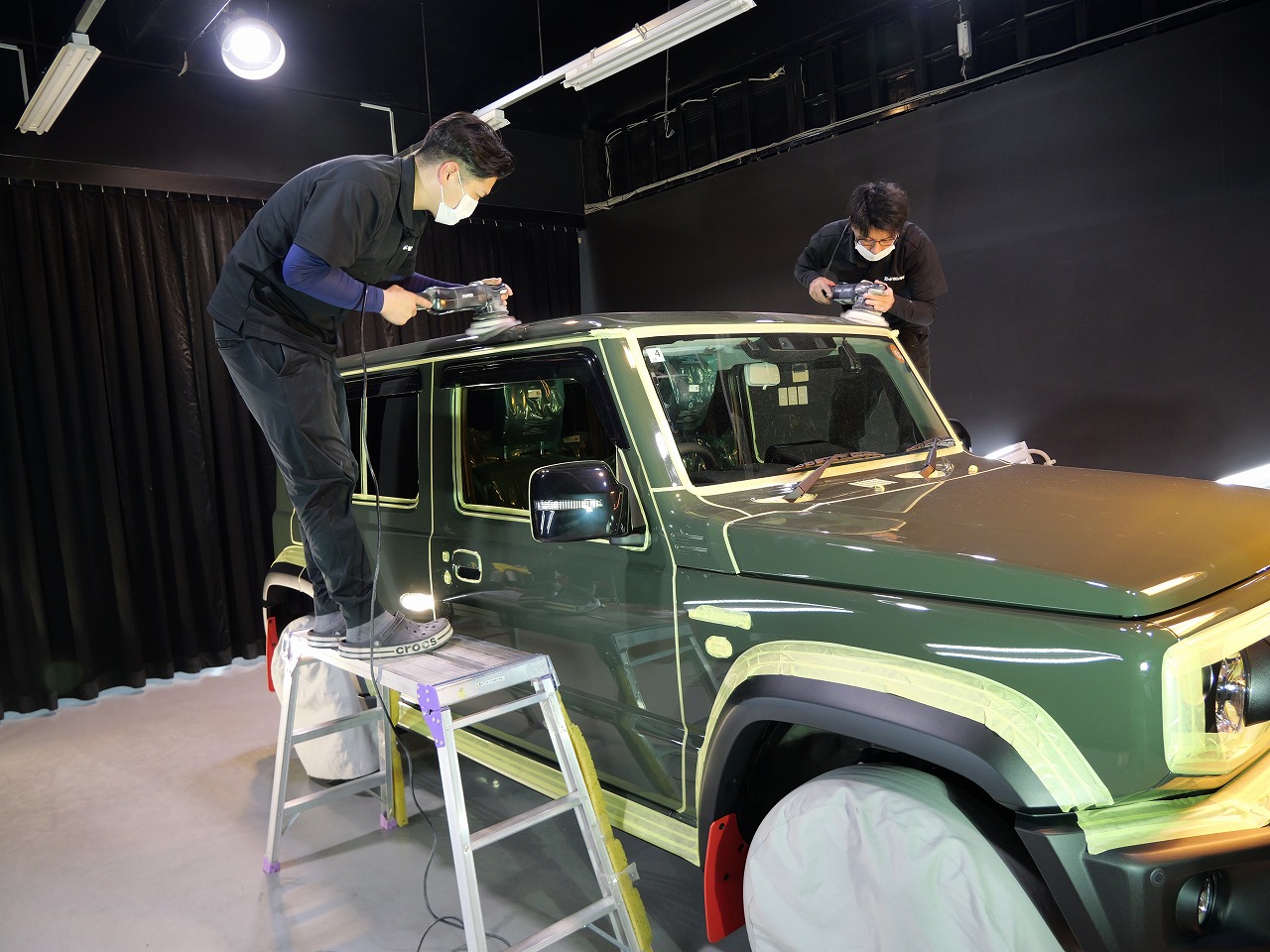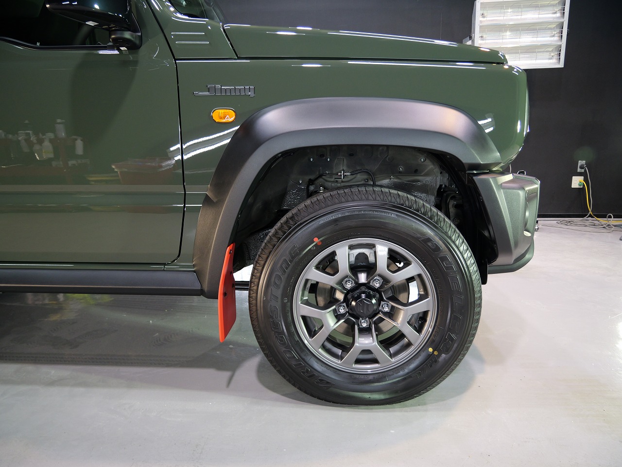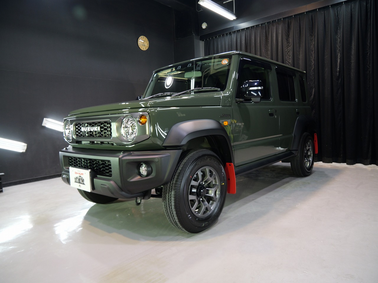 大阪府高槻市よりスズキジムニーノマドのご入庫です!ボディカラーはジャングルグリーン。施工は