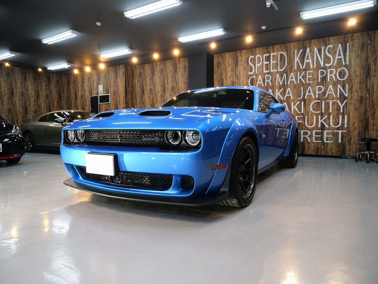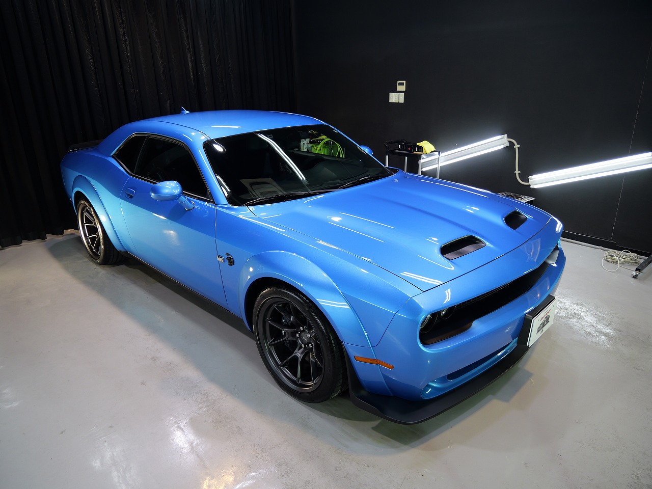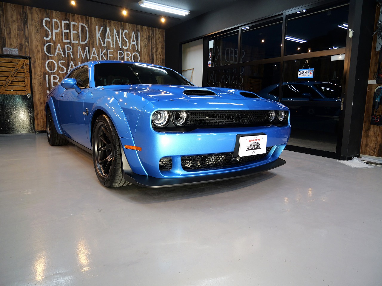 大阪府大阪市よりダッジチャレンジャーのご入庫です!ボディカラーはB5ブルー。施工はボディには