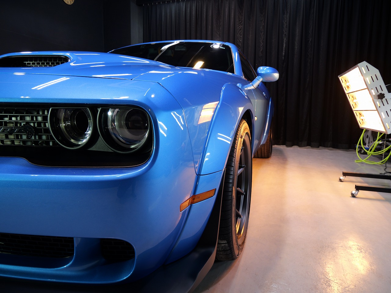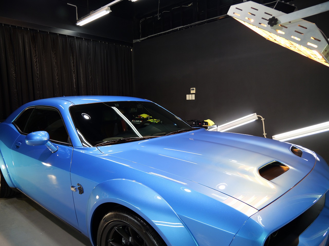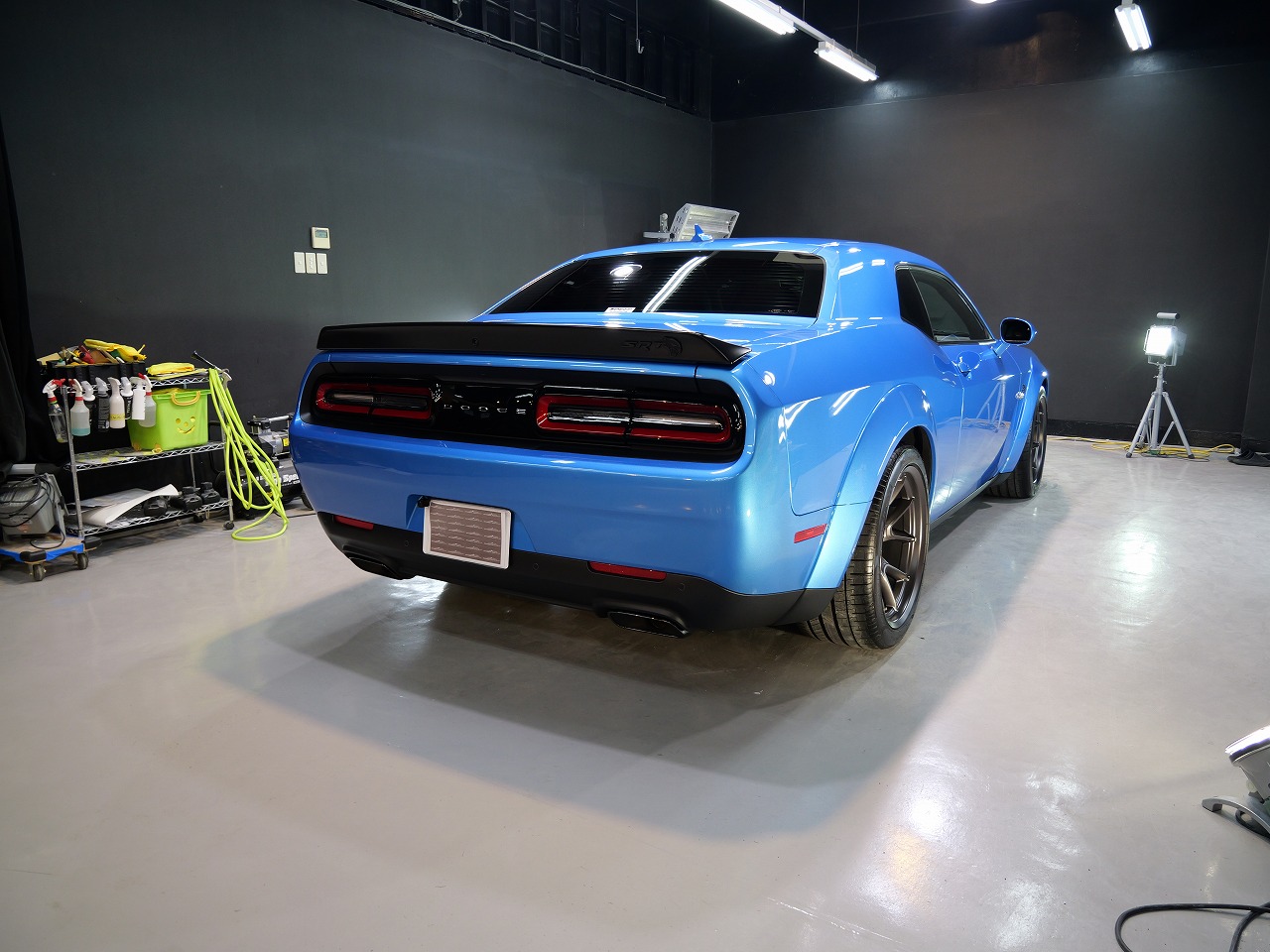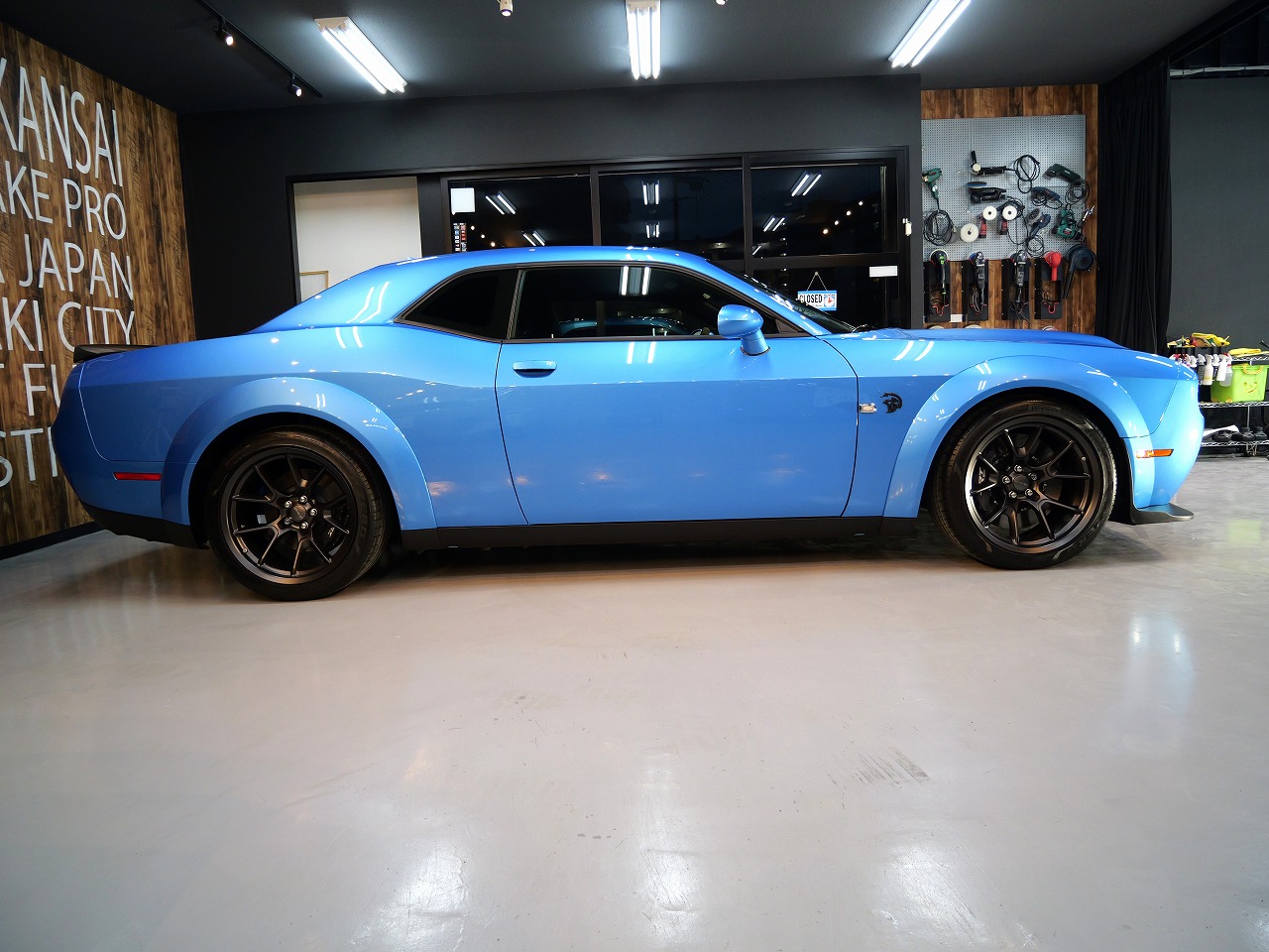 大阪府大阪市よりダッジチャレンジャーのご入庫です!ボディカラーはB5ブルー。施工はボディには