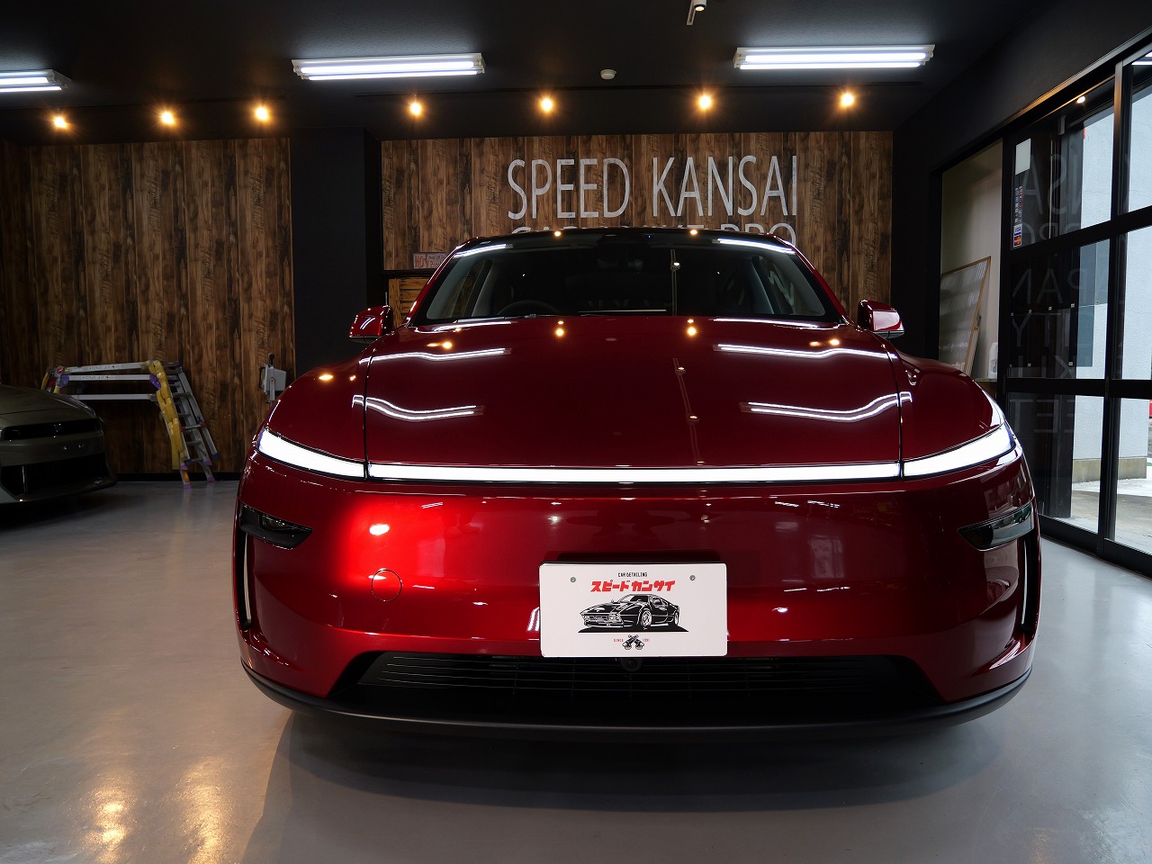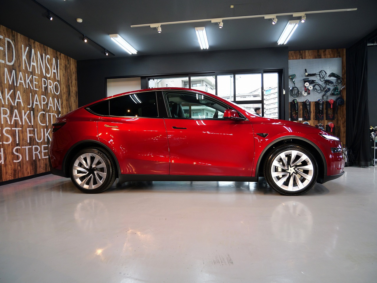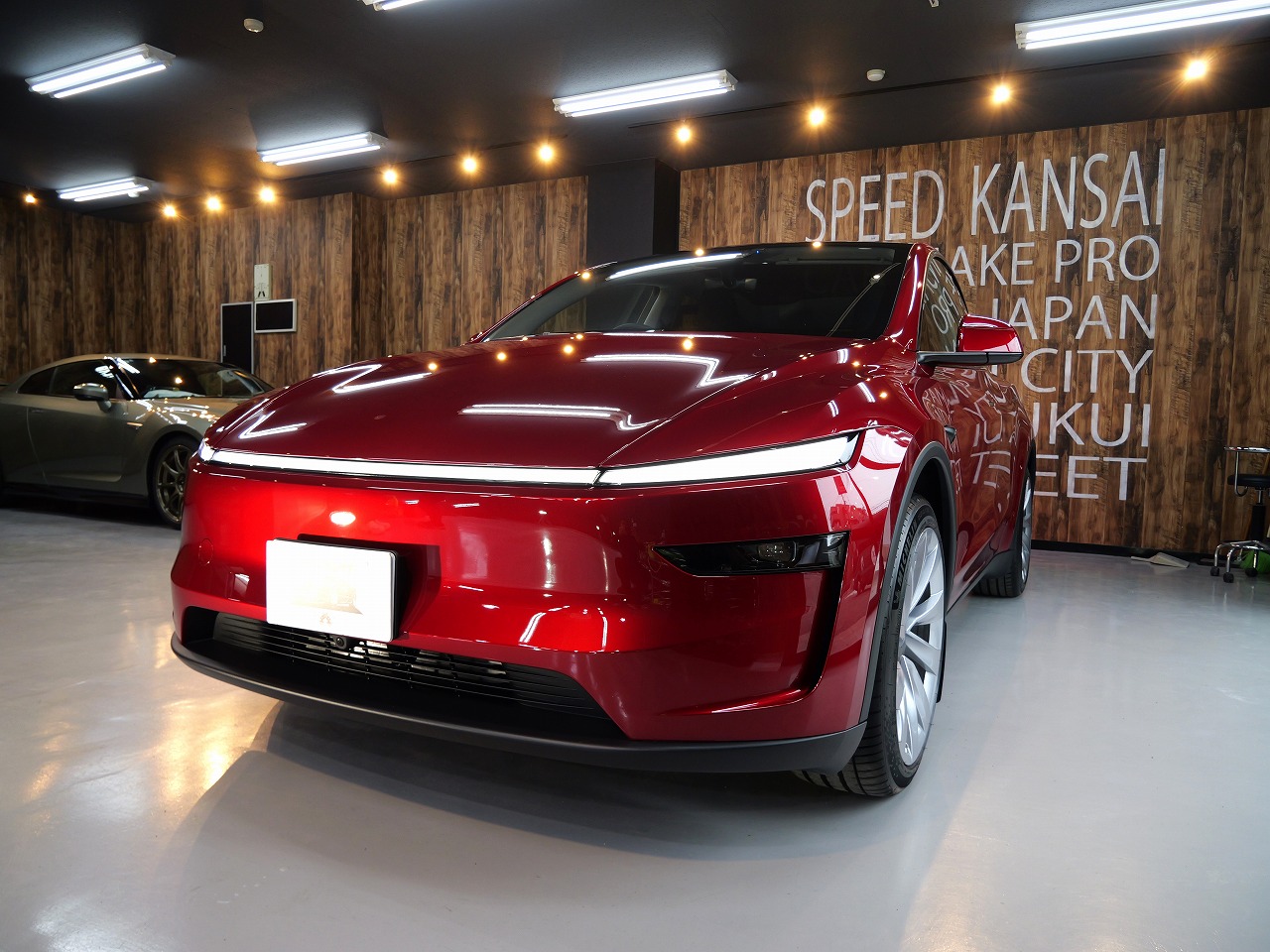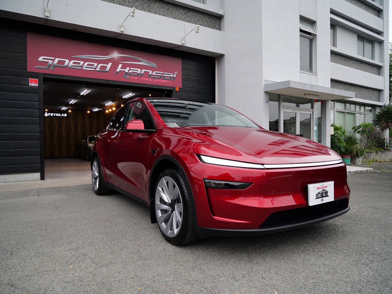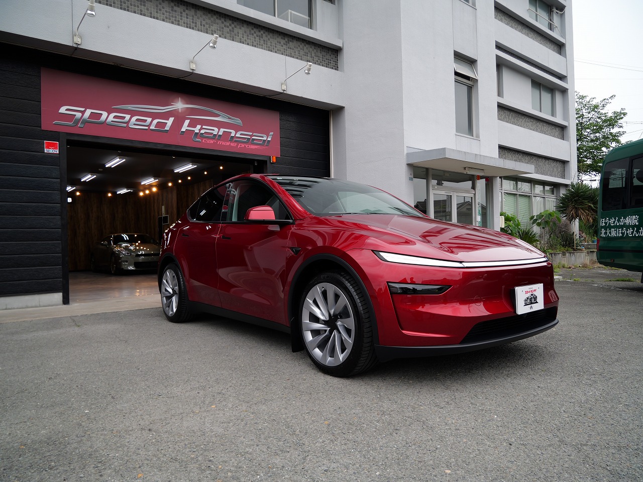 大阪府摂津市より新型のテスラ モデルYをお持ち下さいました!ボディカラーはウルトラレッド。施工は