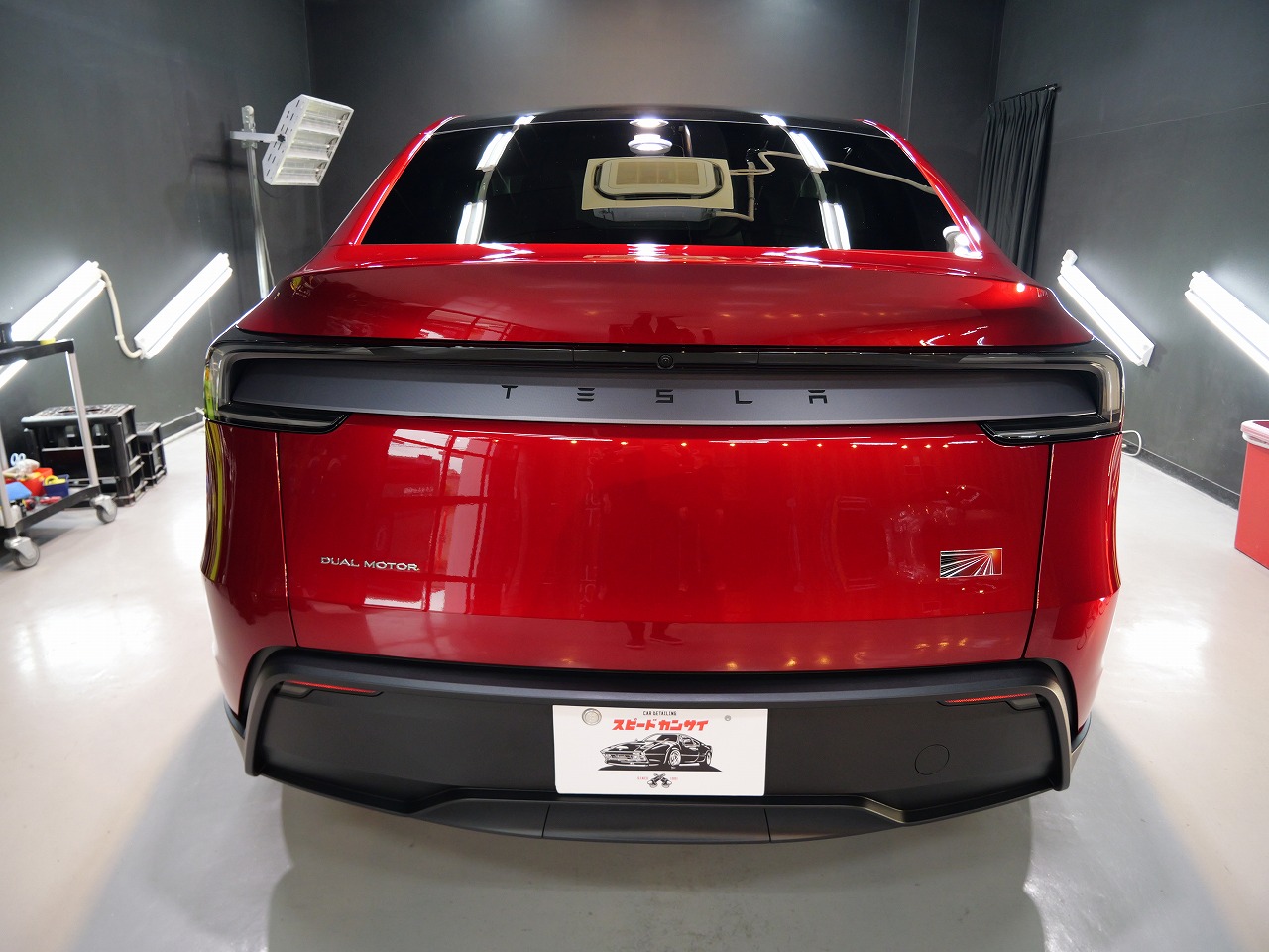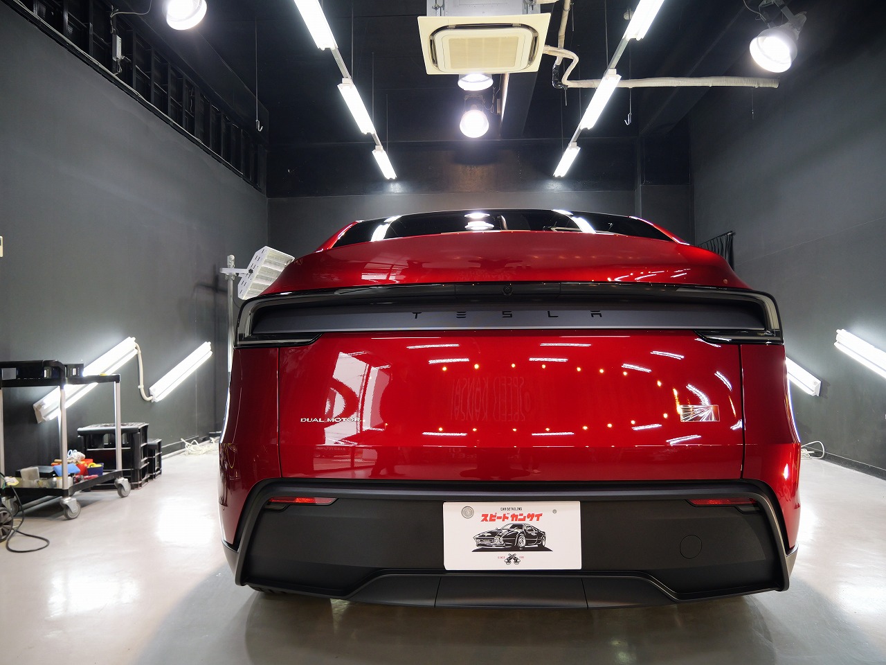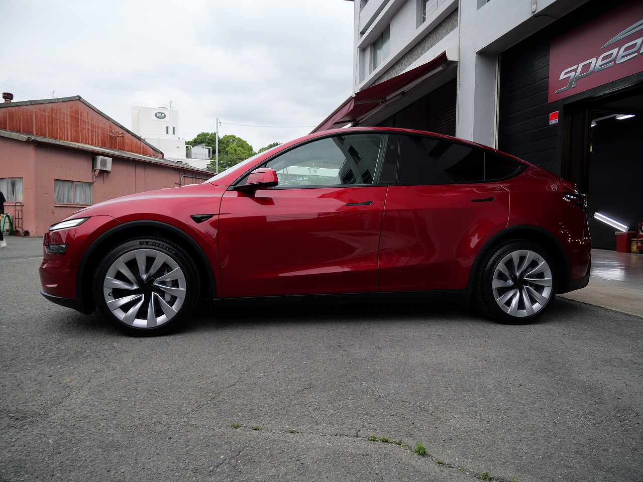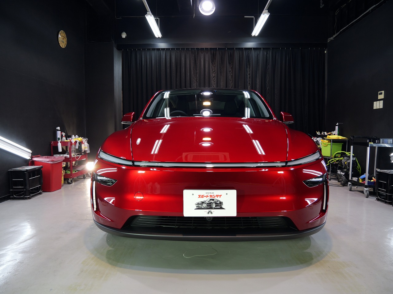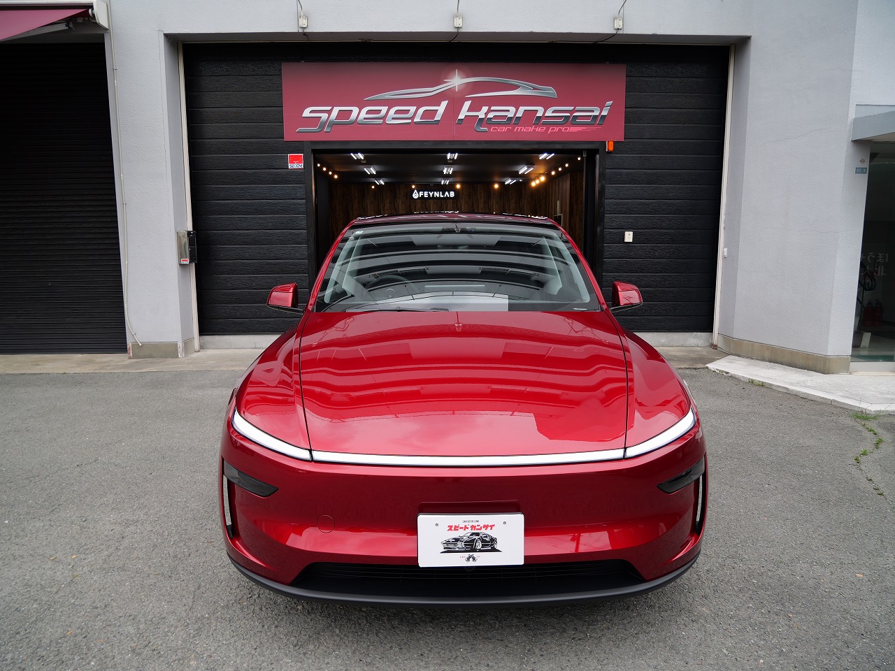 大阪府摂津市より新型のテスラ モデルYをお持ち下さいました!ボディカラーはウルトラレッド。施工は