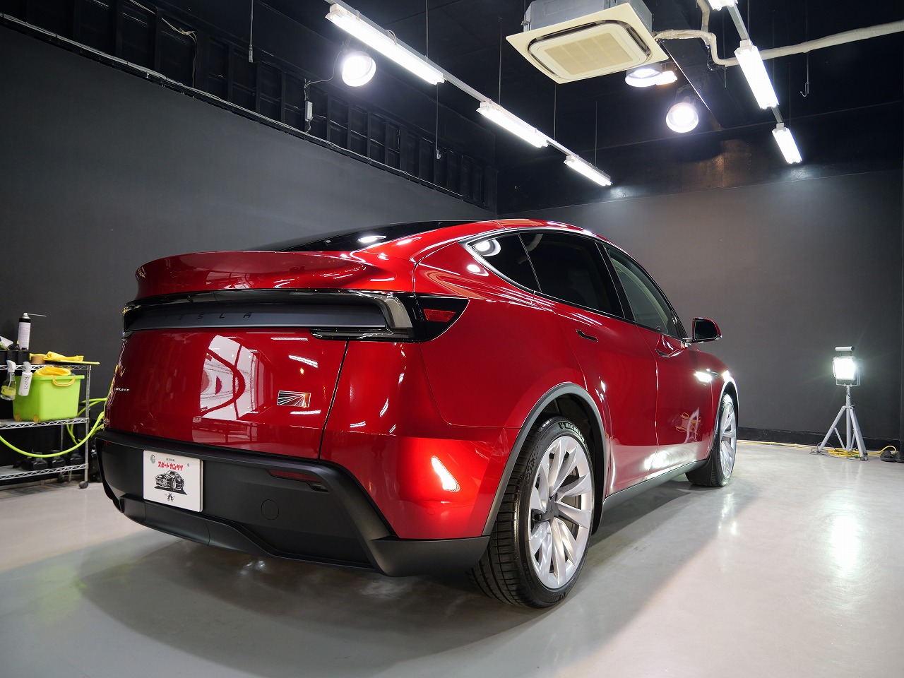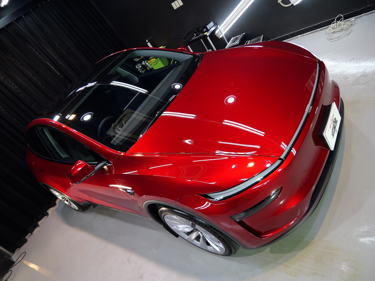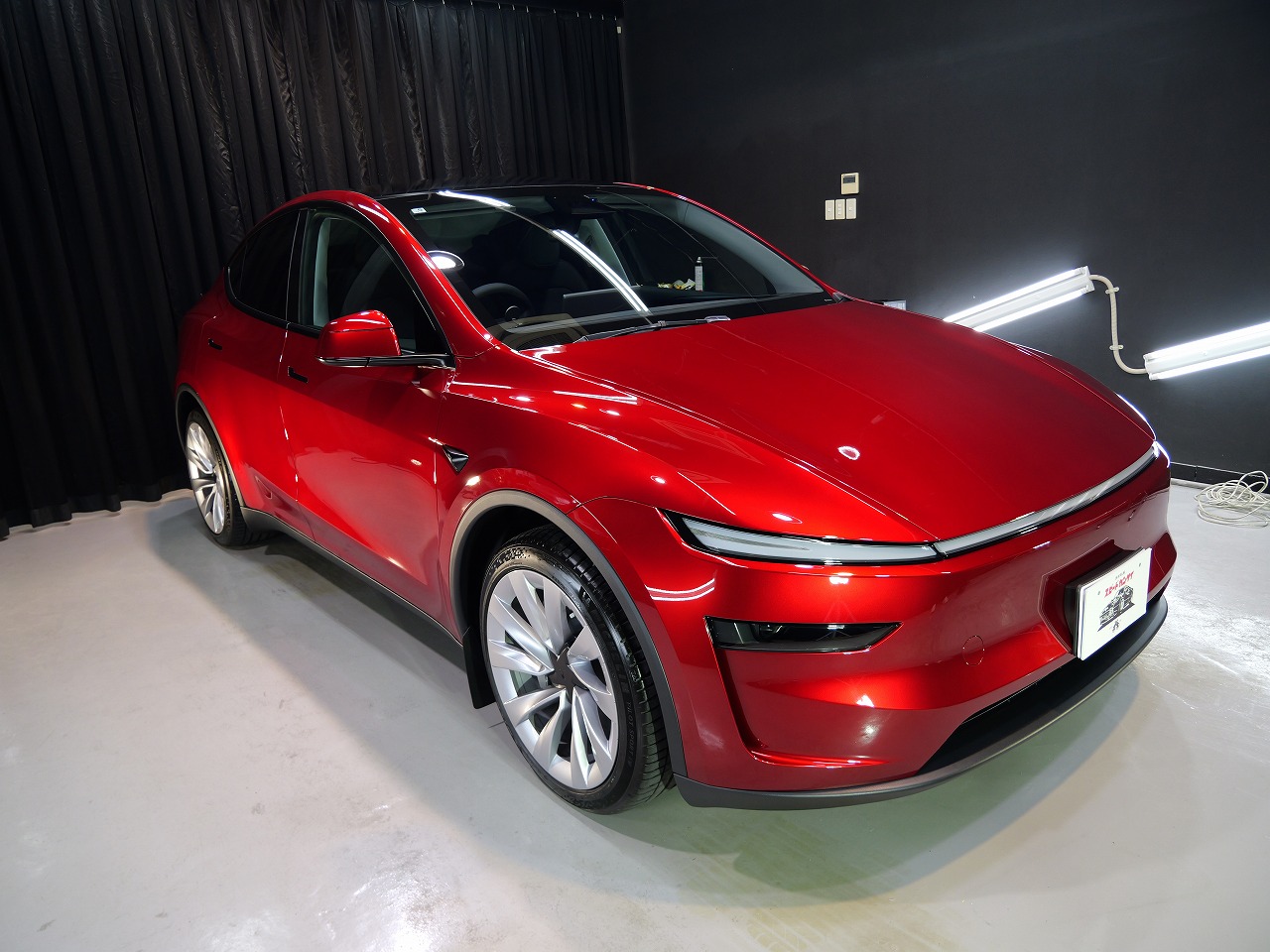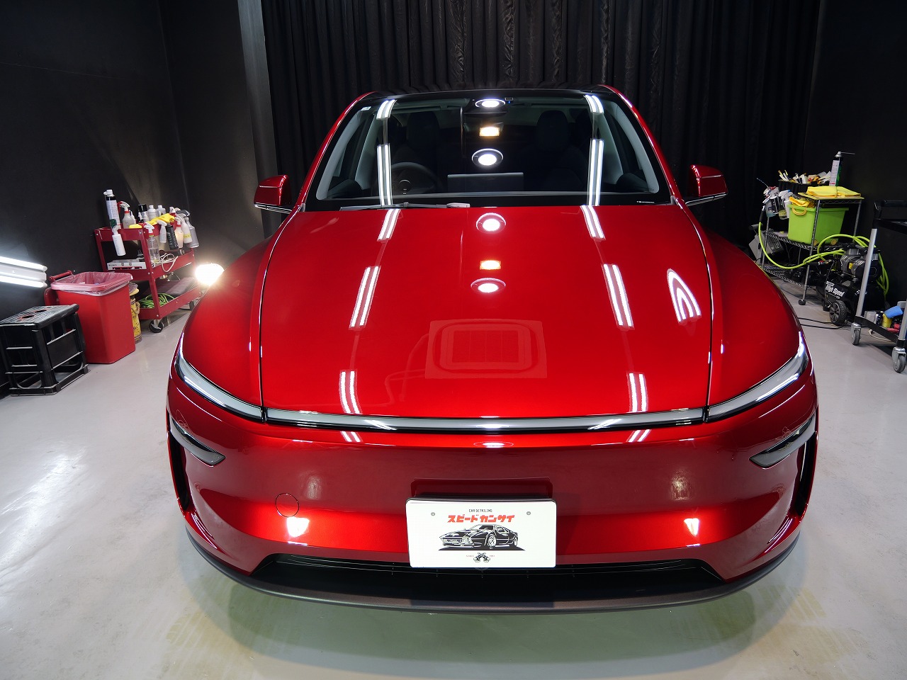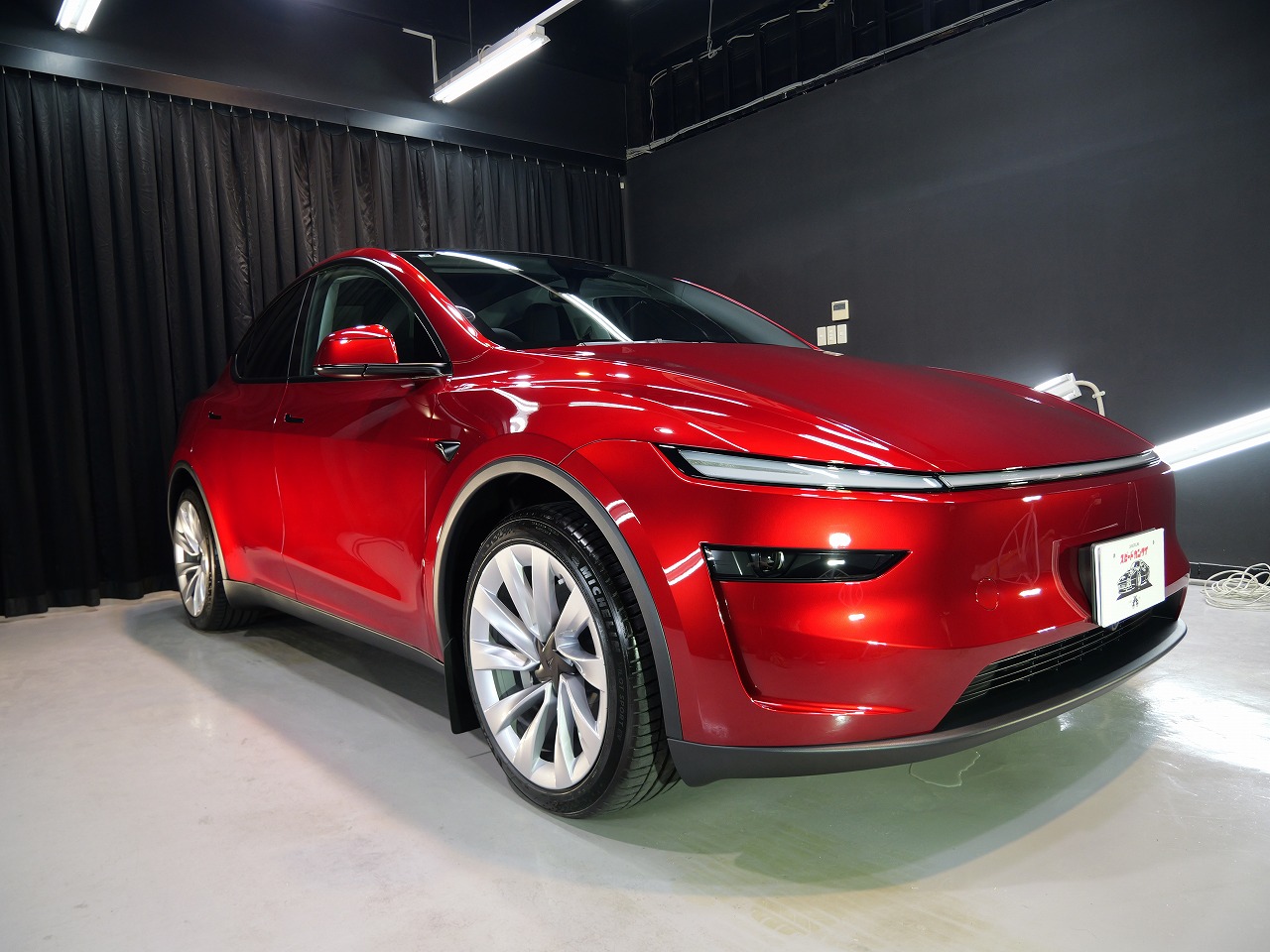 大阪府摂津市より新型のテスラ モデルYをお持ち下さいました!ボディカラーはウルトラレッド。施工は