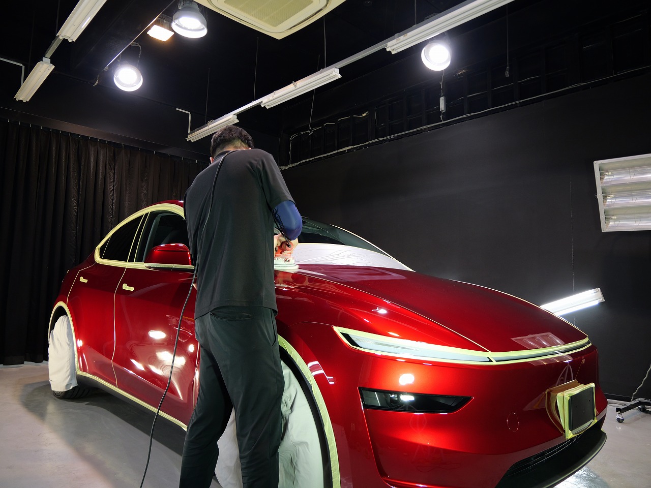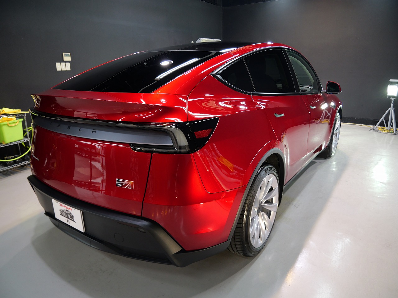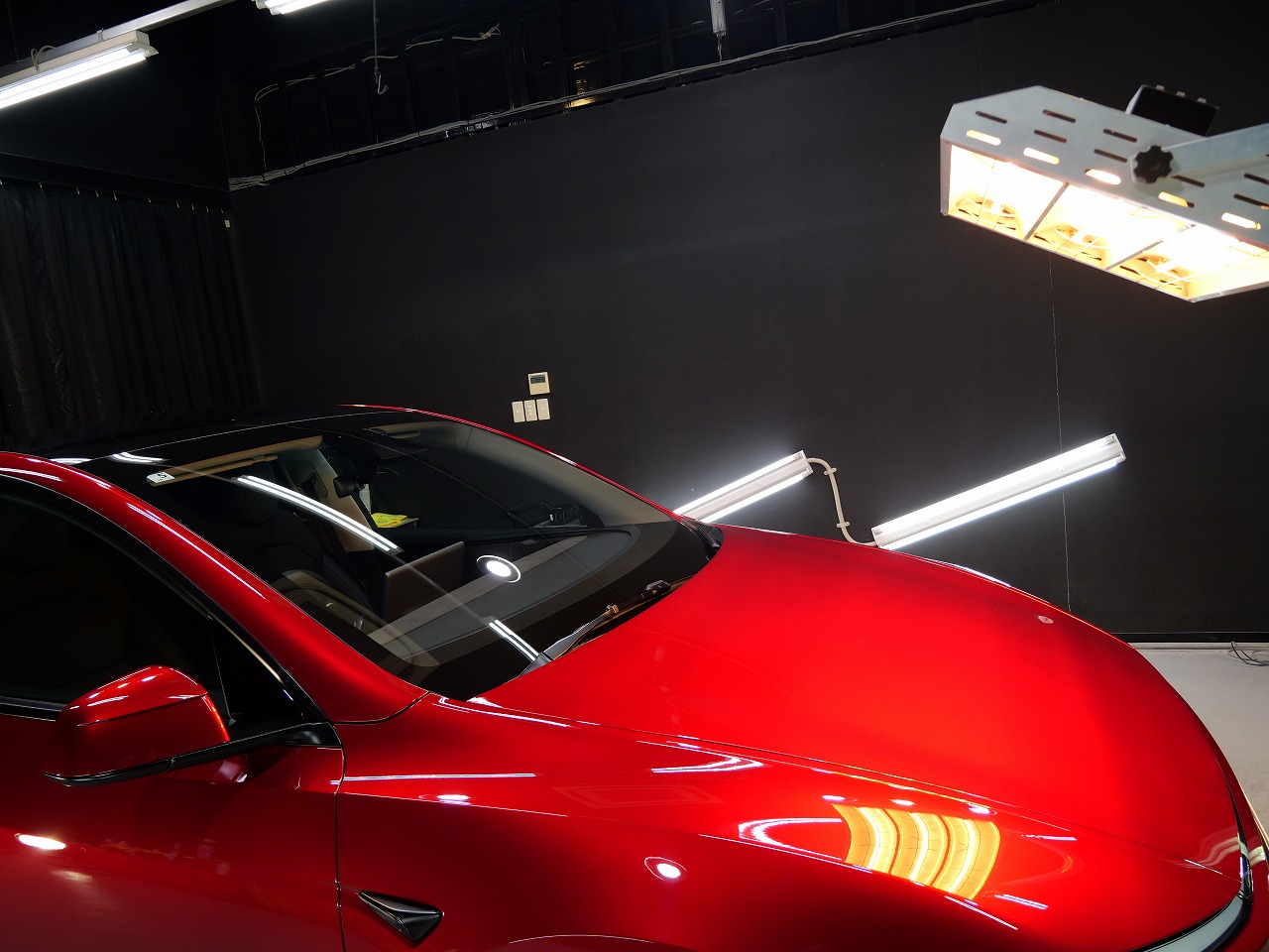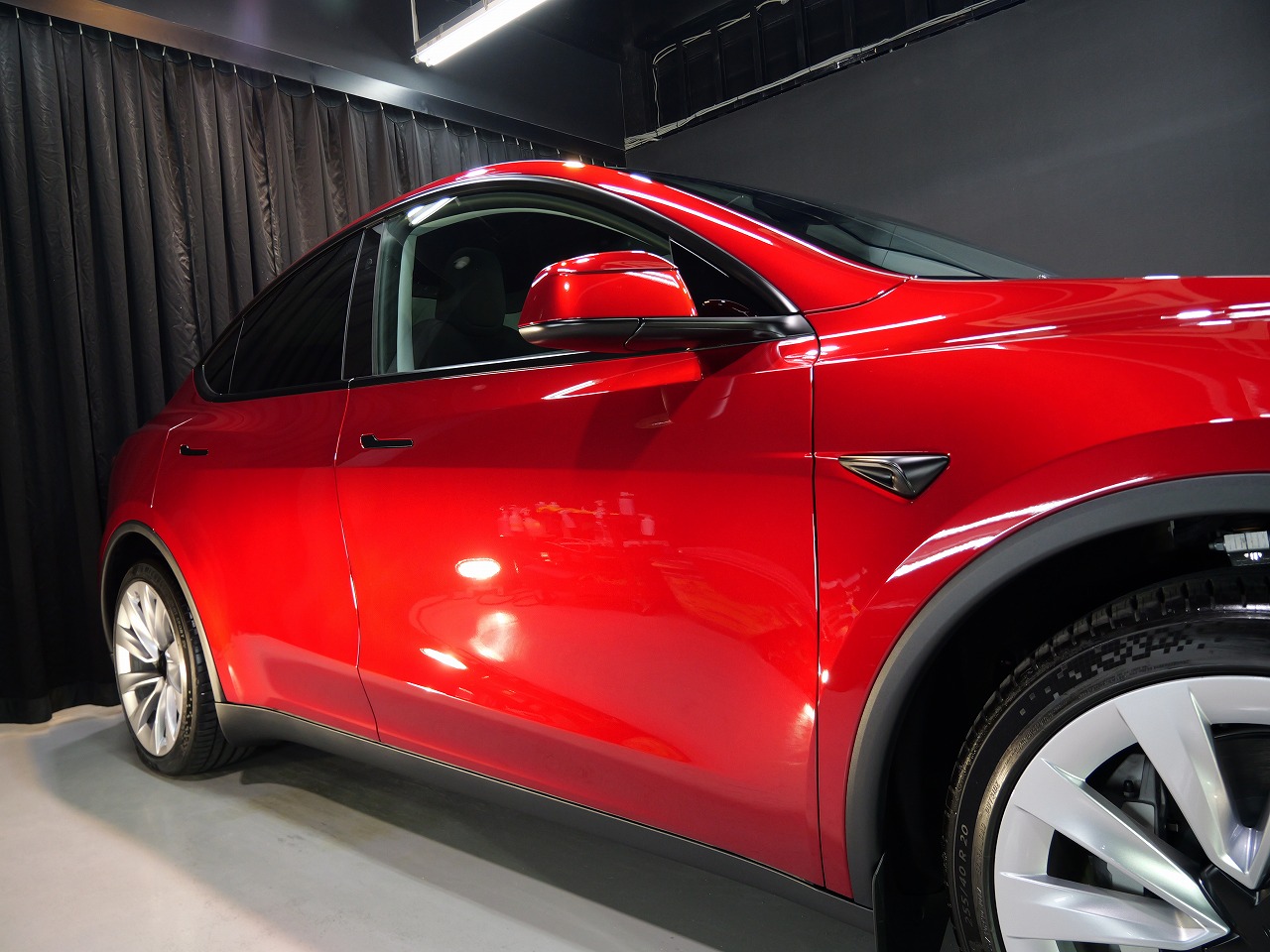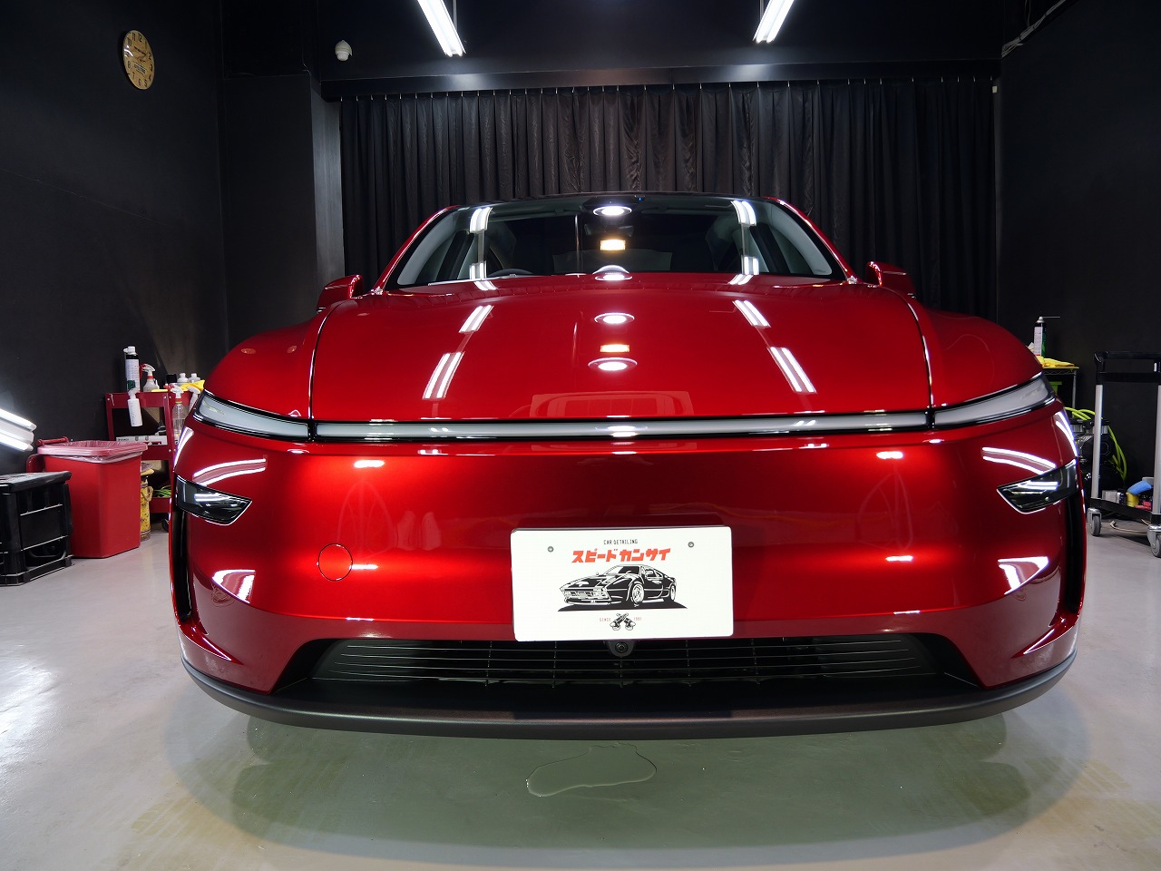大阪府摂津市より新型のテスラ モデルYをお持ち下さいました!ボディカラーはウルトラレッド。施工は