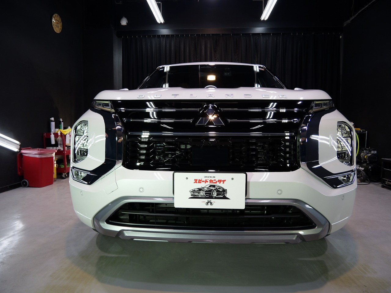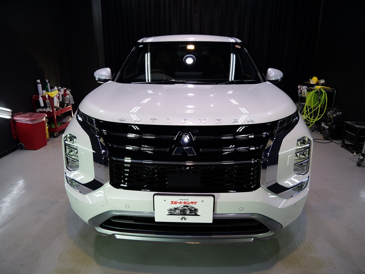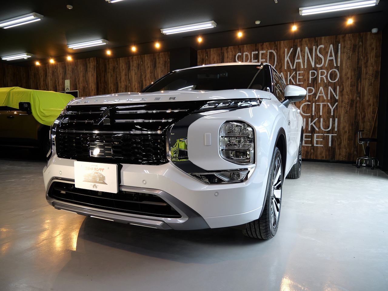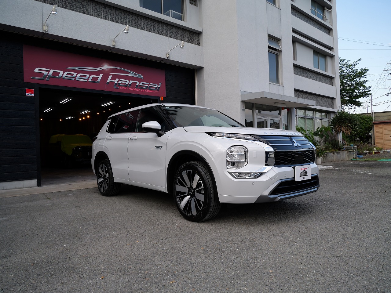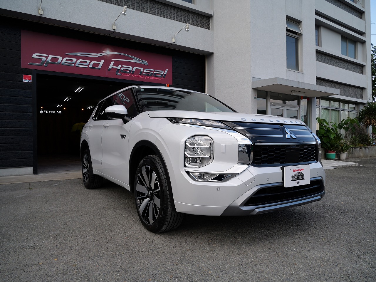 大阪府吹田市より三菱アウトランダーPHEVのご入庫です!ボディカラーはダイヤモンドホワイト。