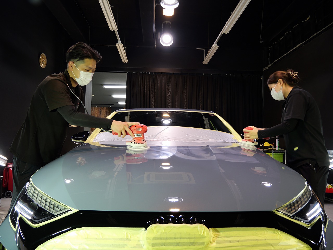 カラーはケモラグレーメタリック。施工はボディにはファインラボセラミックコーティングウルトラ