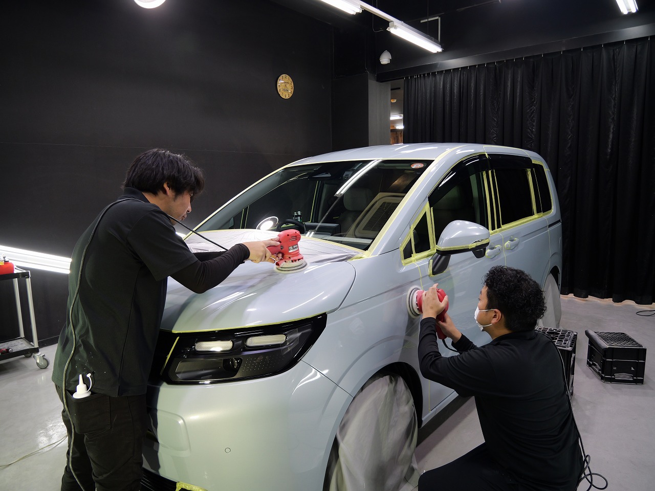 施工はボディにはファインラボセラミックコーティングウルトラ/ホイールコーティング/フロント