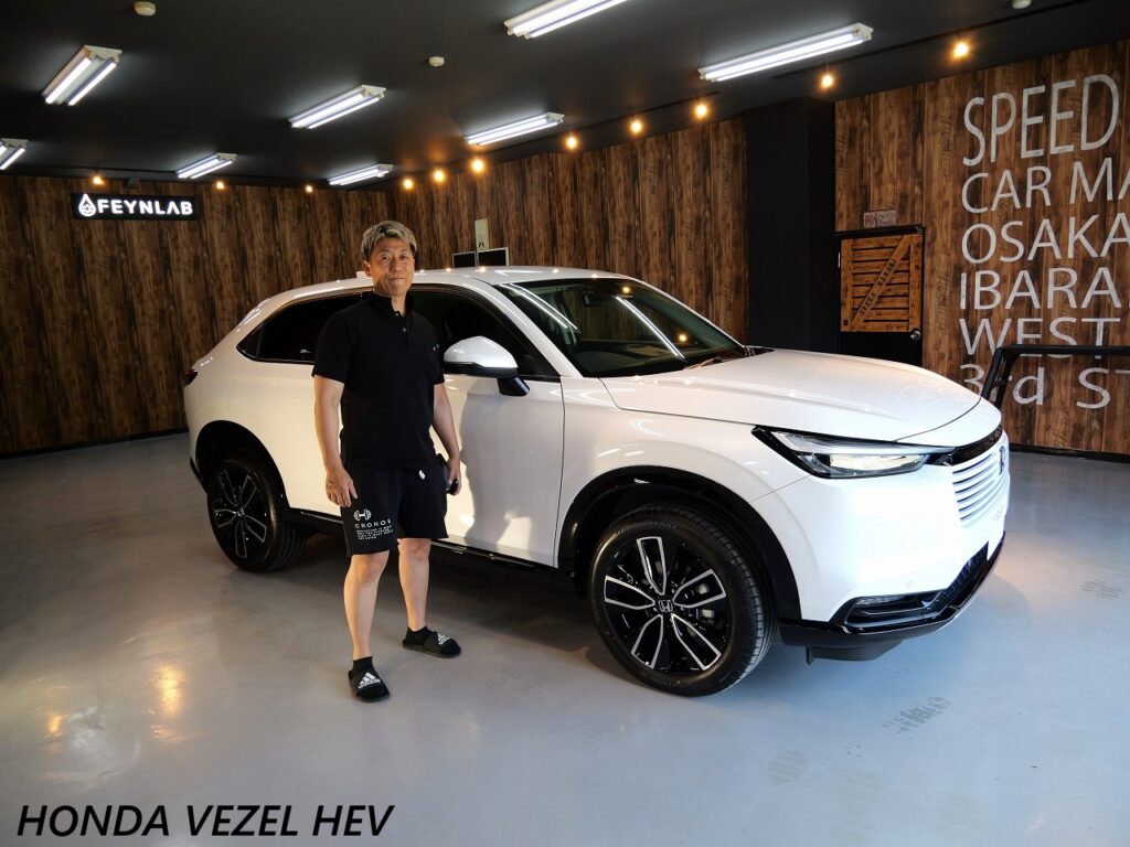 大阪府枚方市よりホンダ ヴェゼルeHEVのご入庫です!ボディカラーはプラチナホワイトパール。