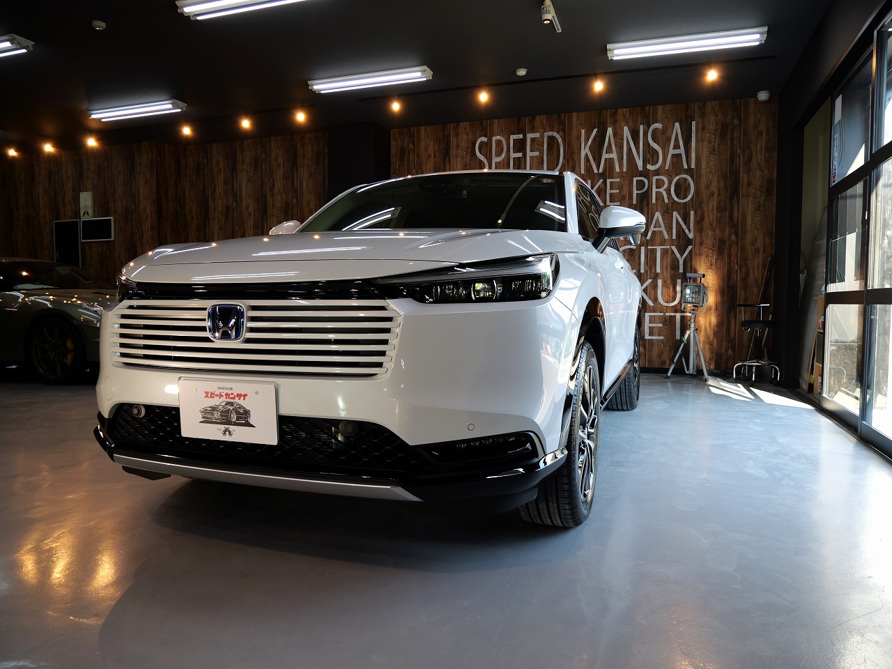 大阪府枚方市よりホンダ ヴェゼルeHEVのご入庫です!ボディカラーはプラチナホワイトパール。
