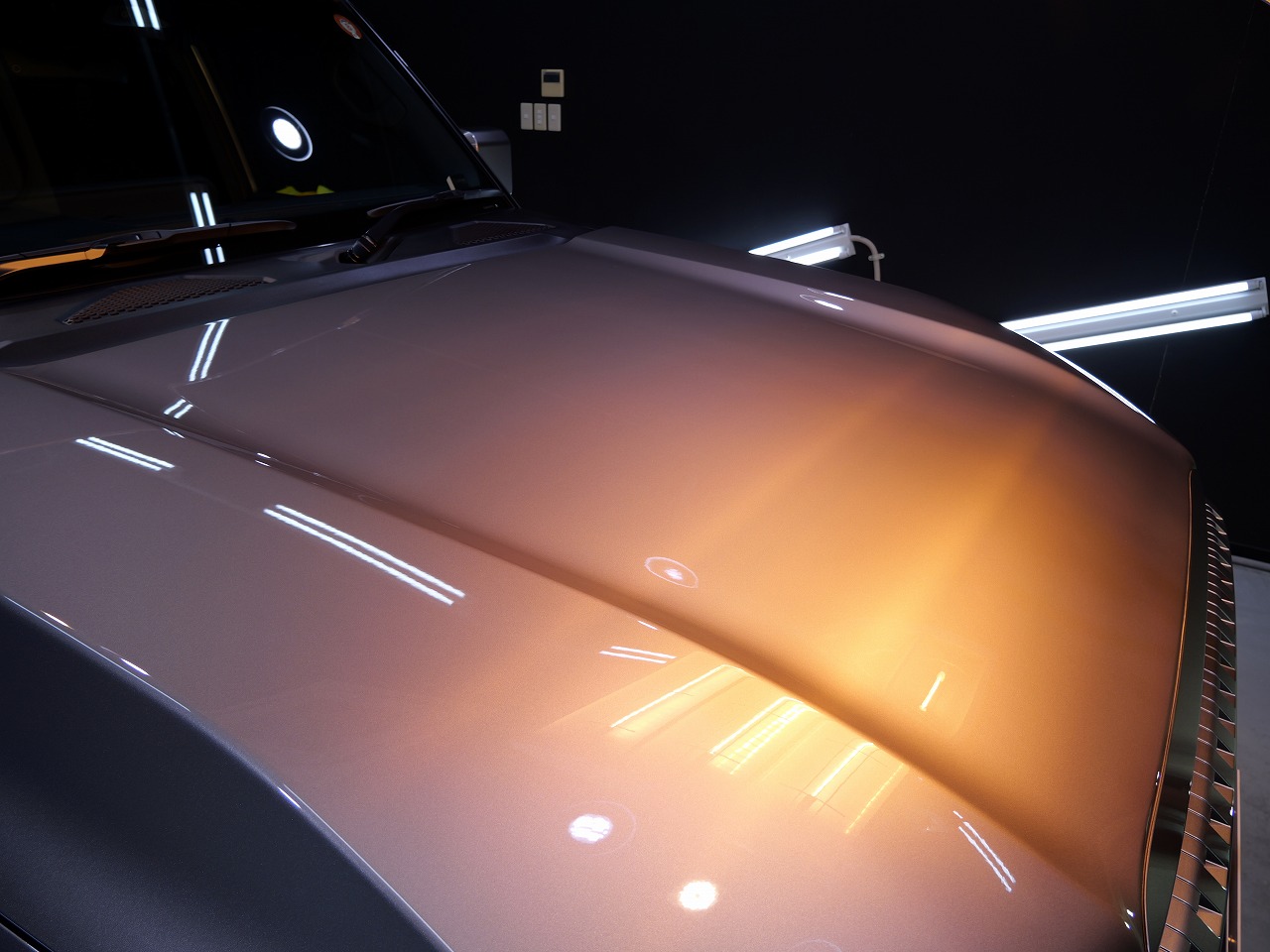 ブロンズメタリック。施工はボディにはファインラボセラミックコーティングウルトラ2層/ホイールセラ